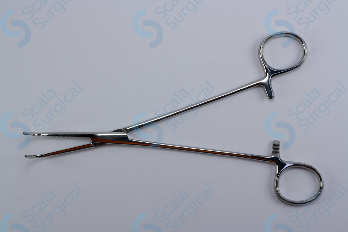 Mixter Artery Forceps are used in surgical procedures to grasp or clamp delicate tissue or blood vessels. The horizontal serrated jaws provide a secure grip, while the curved box joint allows for precise control and manipulation of the tissue or vessel. The 210mm (8? inch) size is suitable for a variety of procedures.