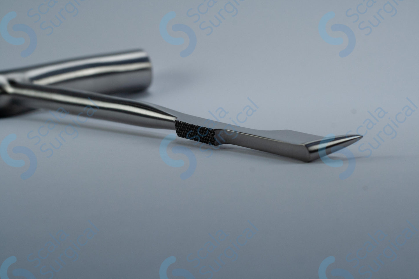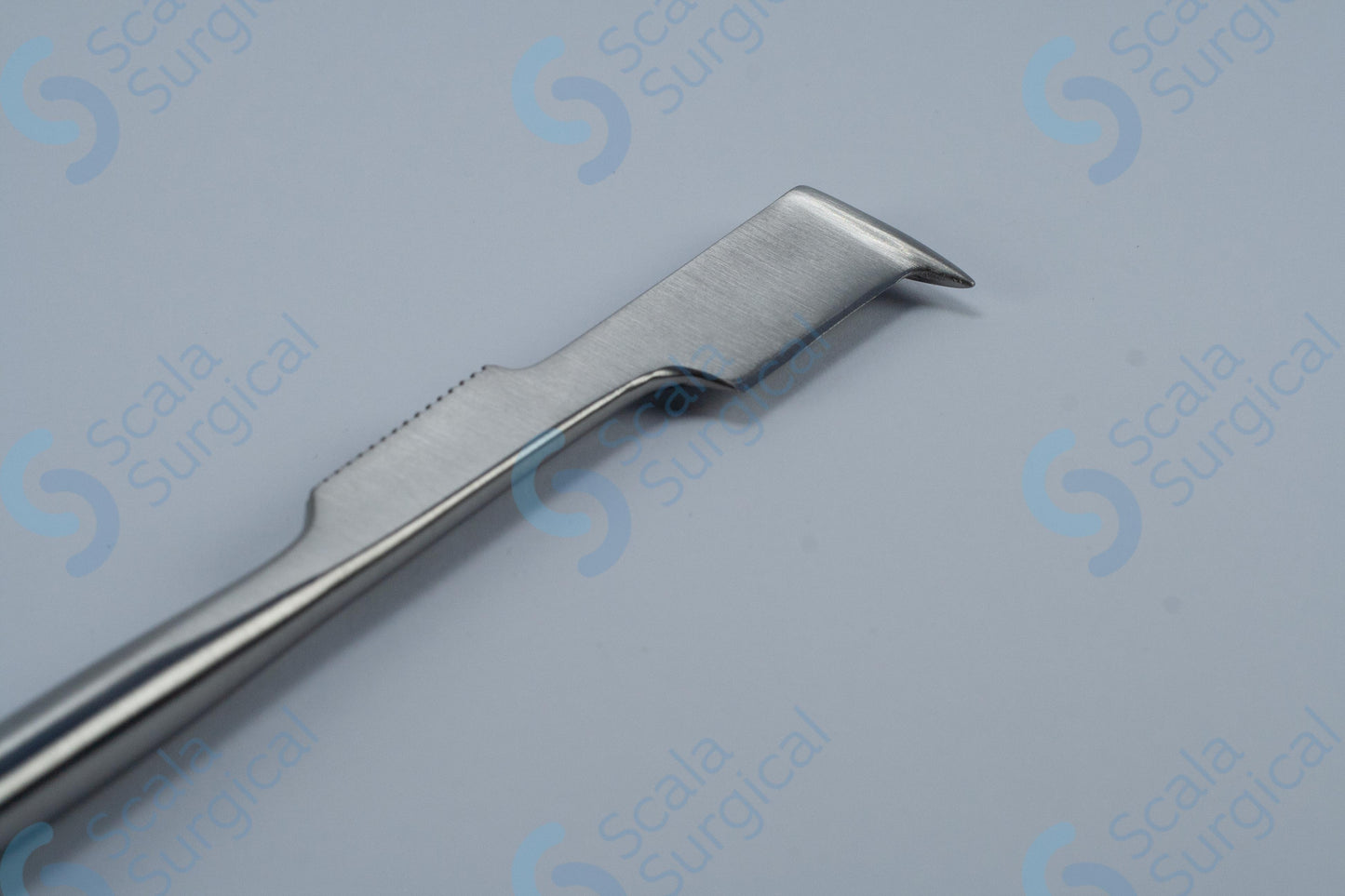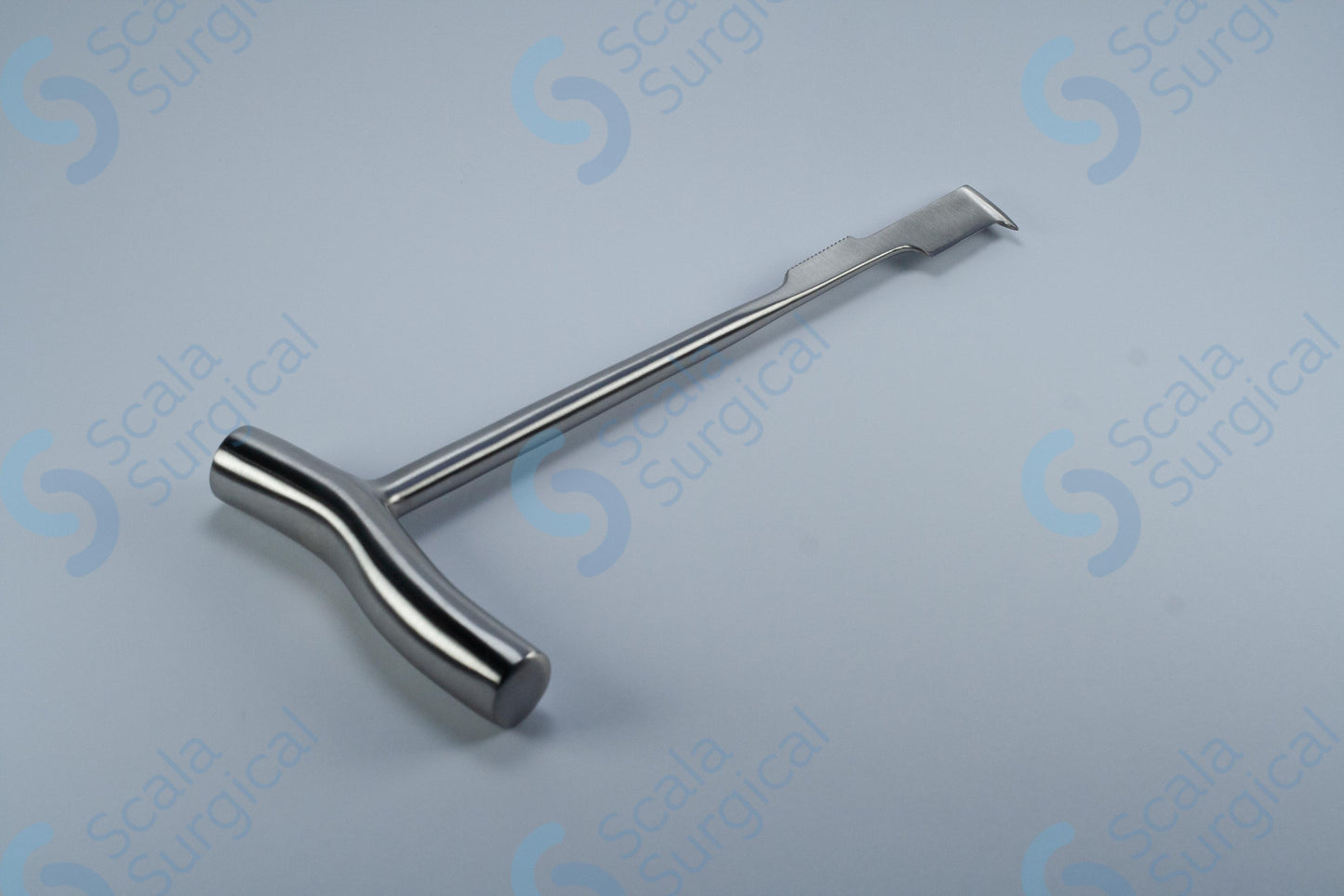 Lebsche bone chisels are used in the surgical field to cut and shape bone during surgical procedures. The chisel is designed to be used with a mallet to allow for precise and controlled cutting and shaping of the bone. The 241.3mm (9? inch) size is a common size for use during orthopedic and neurosurgical procedures.