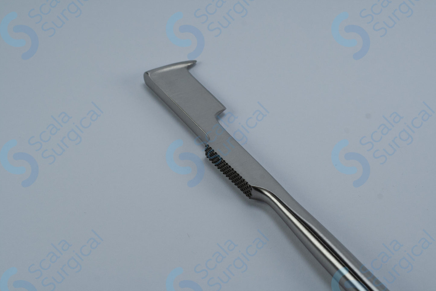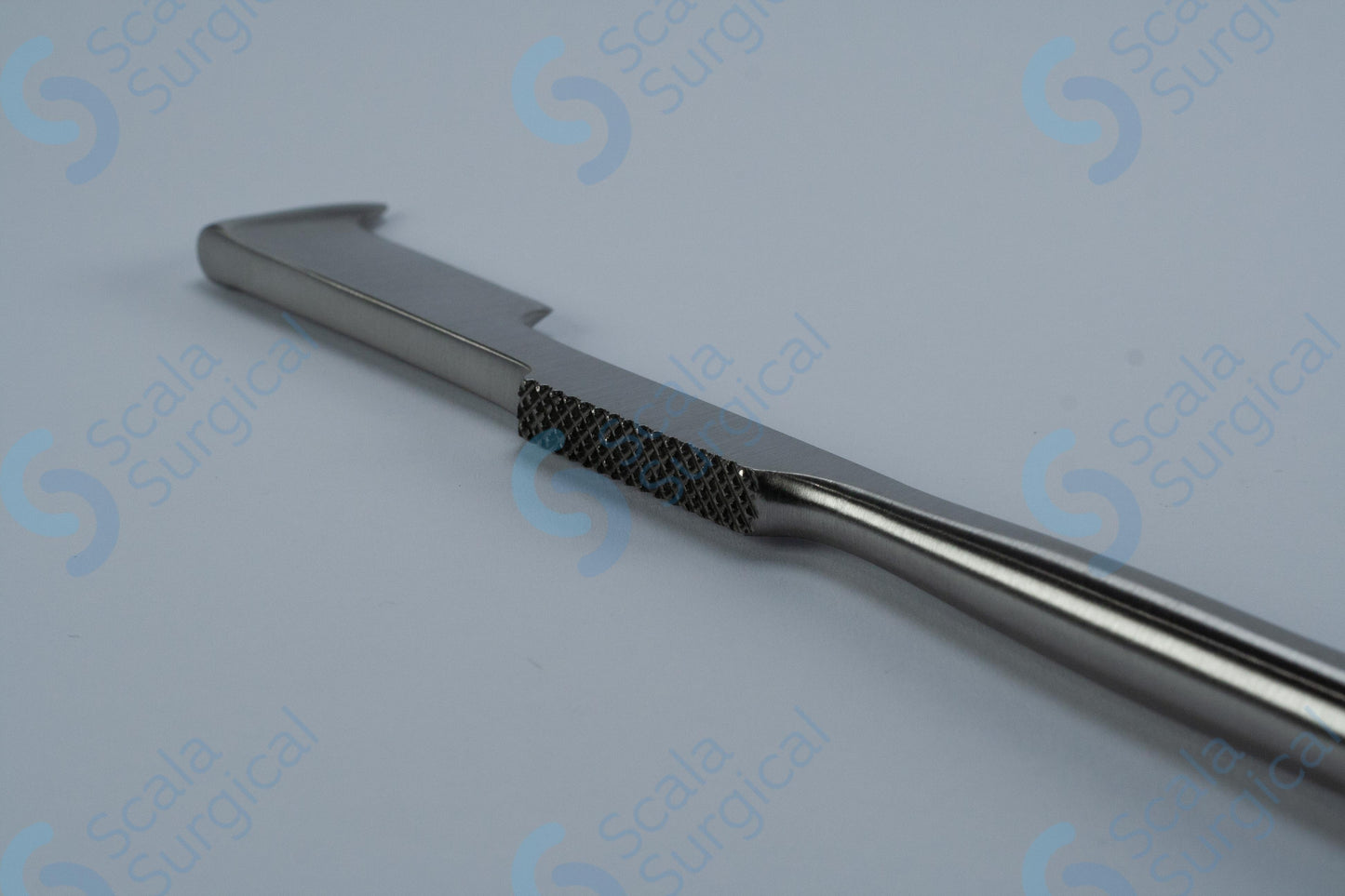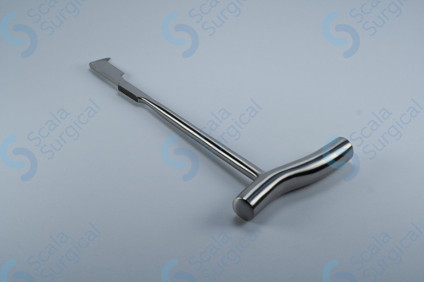 Lebsche bone chisels are used in the surgical field to cut and shape bone during surgical procedures. The chisel is designed to be used with a mallet to allow for precise and controlled cutting and shaping of the bone. The 241.3mm (9? inch) size is a common size for use during orthopedic and neurosurgical procedures.