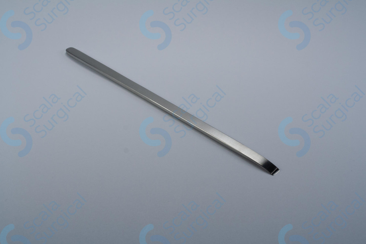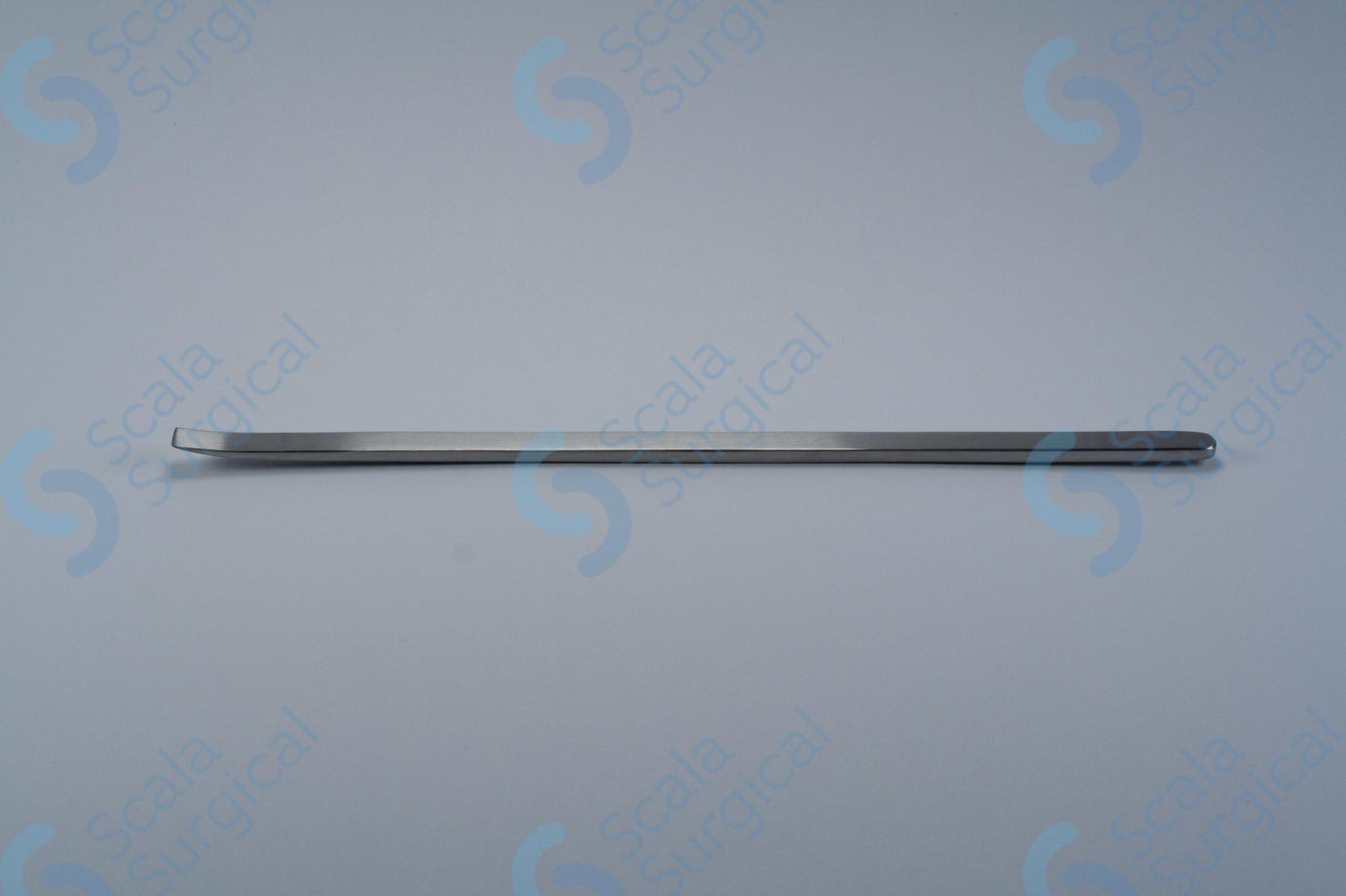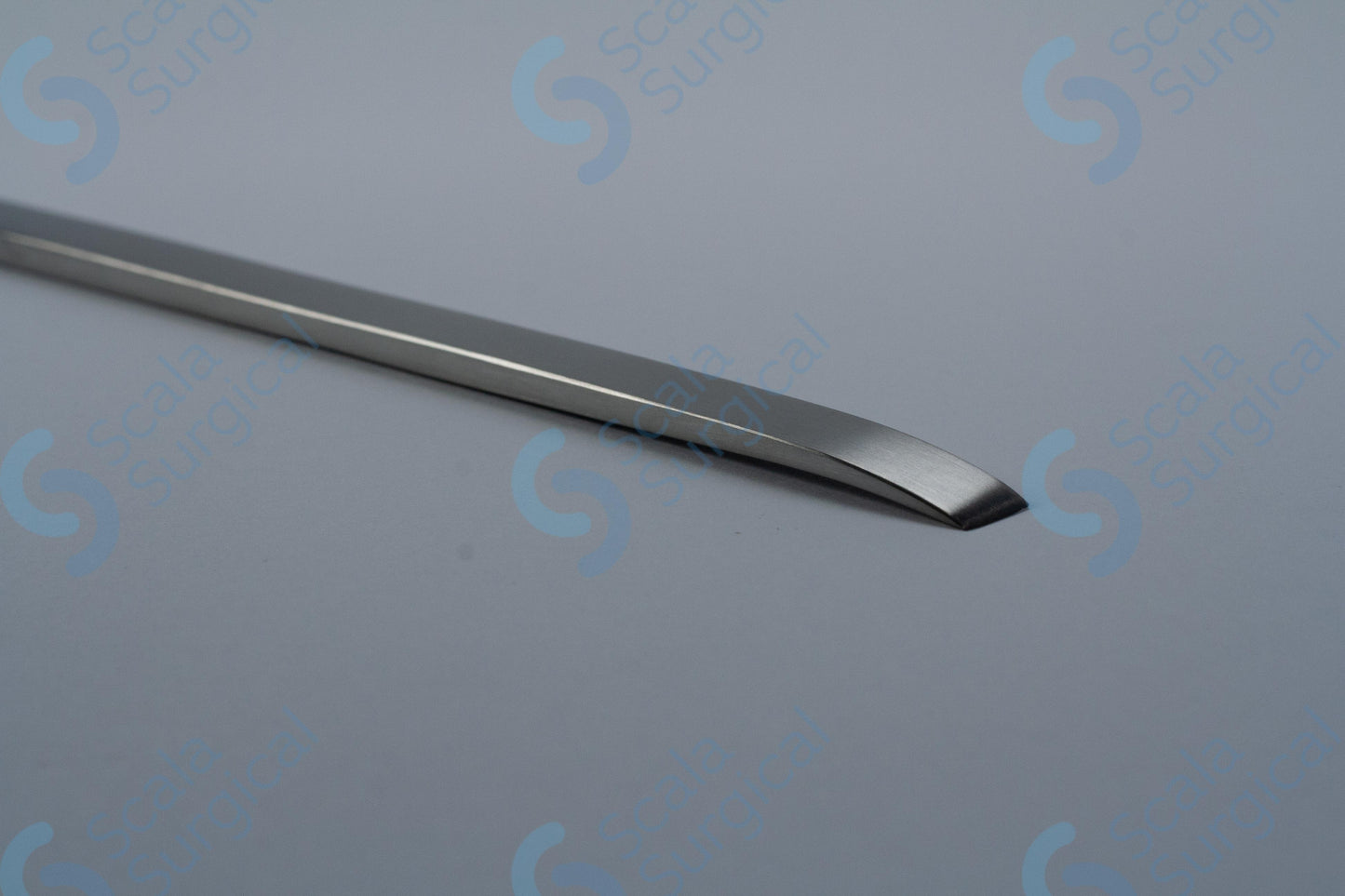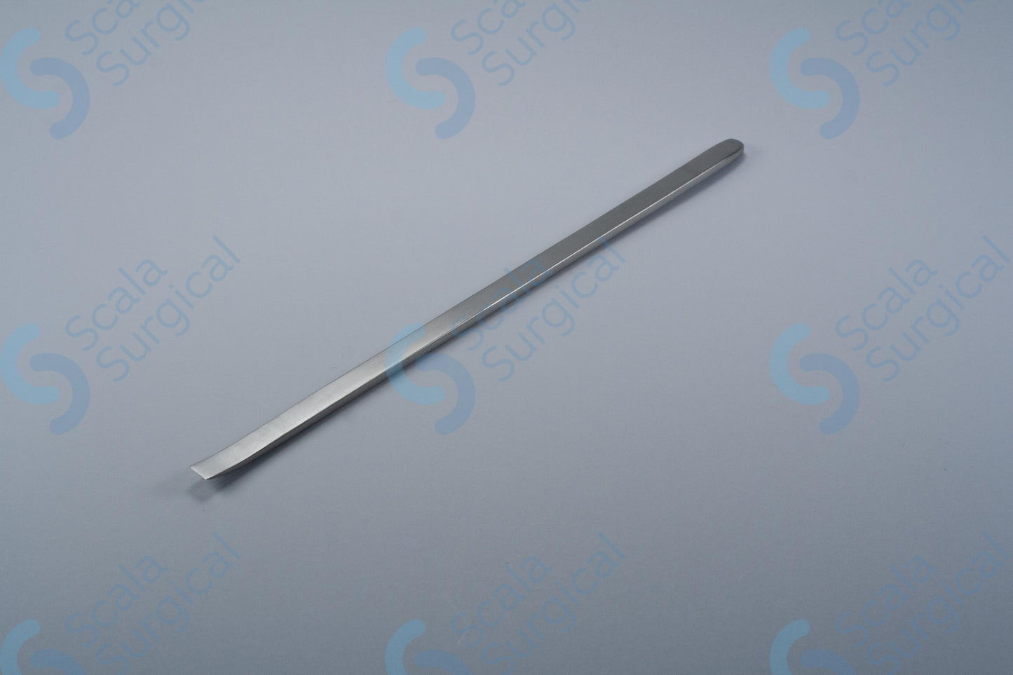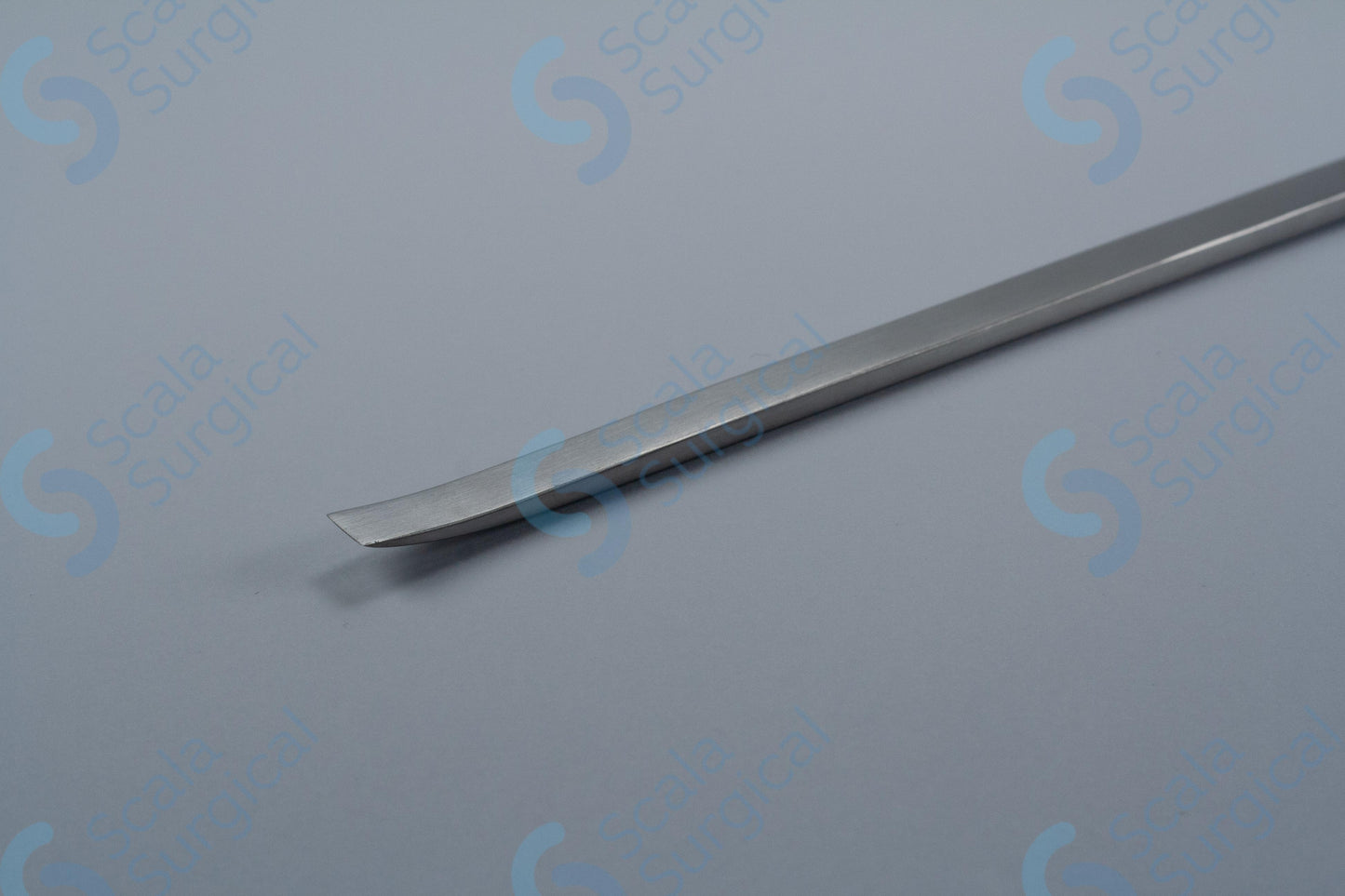 A Lambotte Bone Osteotome Curved is a surgical instrument used to cut and shape bone during orthopedic and spinal surgeries. It is designed with a curved blade that is 8mm in width, 247.65mm in length, and 9? inch in size. The osteotome is used to cut and shape bone during orthopedic and spinal surgeries.