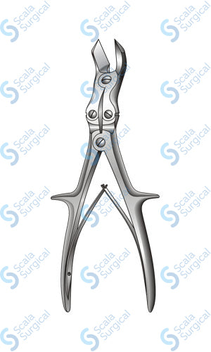 Liston key bone cutting forceps compound action handle (266.7mm) (10? inch) are surgical instruments used to cut through bone during orthopedic, trauma, and reconstructive surgeries. The compound action handle allows for a greater range of motion and increased leverage, allowing the surgeon to make precise cuts.