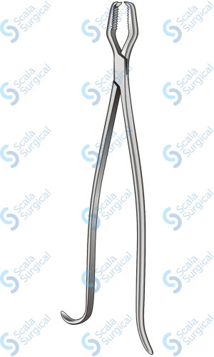 This type of forceps is used to hold bones in place during orthopedic surgery. The serrated jaws provide a secure grip, while the ratchet-free design allows for precise positioning. The long length (381mm or 15 inches) allows for greater access and maneuverability during the procedure.