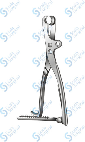 The Lambotte Bone Holding Forceps Straight Adjustable Joint (266.7mm) (10? inch) is a surgical instrument used to hold, grasp, and manipulate bones during orthopedic and spine procedures. It is typically used to hold bones in place while a surgeon drills, saws, or removes them.