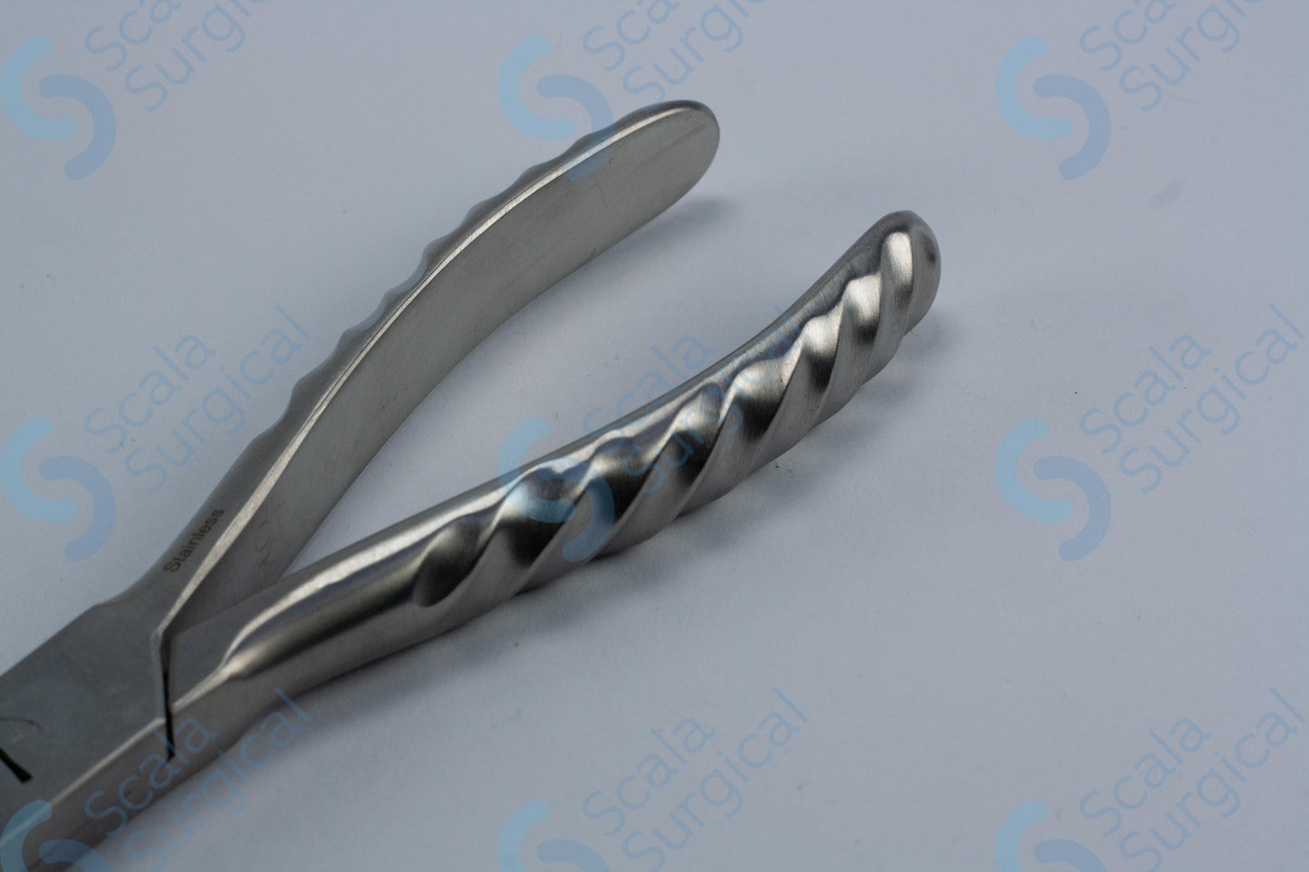 Fergusson Bone Holding Forceps Screw Joint German Pattern (152.4mm) (6 inch) is a surgical instrument used to hold and manipulate bones during surgery. It has a screw joint that allows it to be adjusted to the desired angle and length, making it ideal for use in orthopedic and trauma surgery.