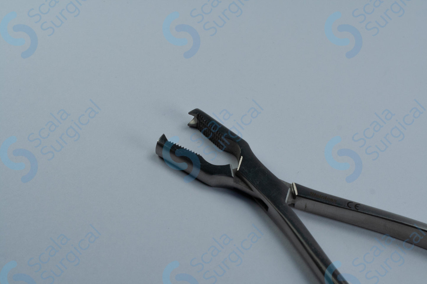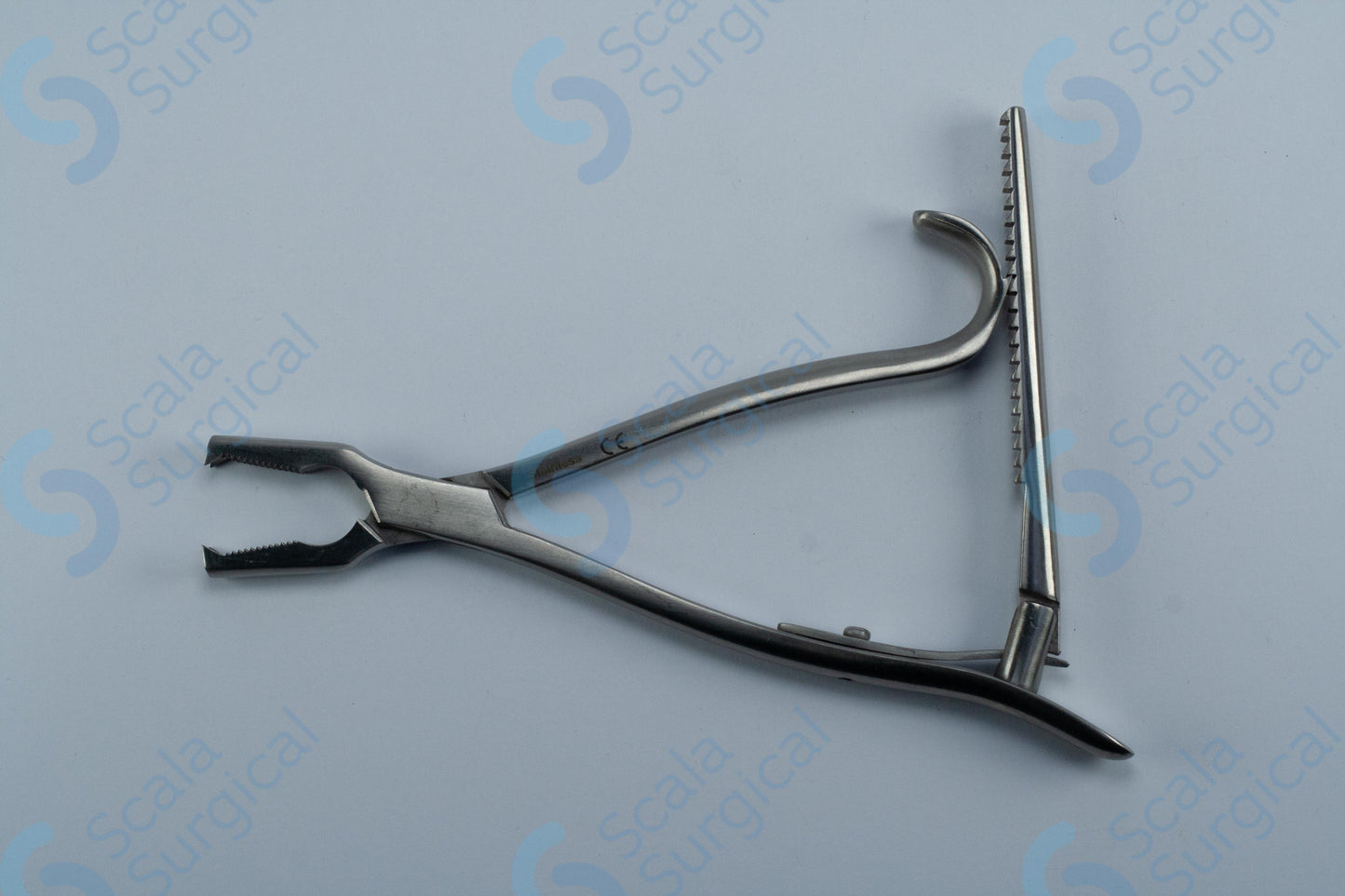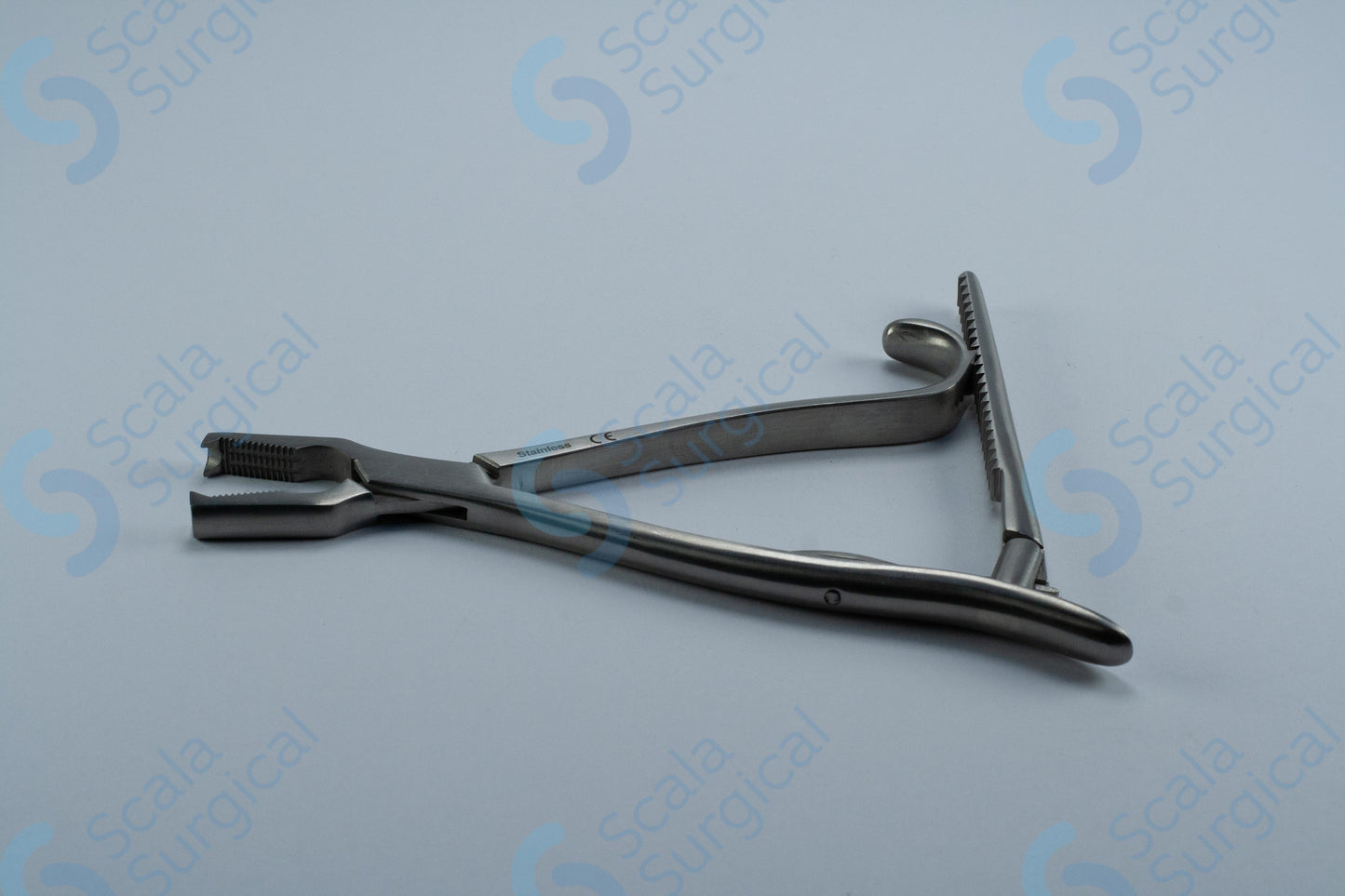Kern bone holding forceps with ratchet (160mm) (6?inch) are used in surgical procedures to grasp and hold bone fragments during orthopedic and trauma surgeries. The forceps feature a ratchet mechanism that allows for precise control of the amount of pressure applied to the bone fragment while providing a secure grip. They are commonly used in procedures such as bone grafting, fracture repair, and joint replacement.