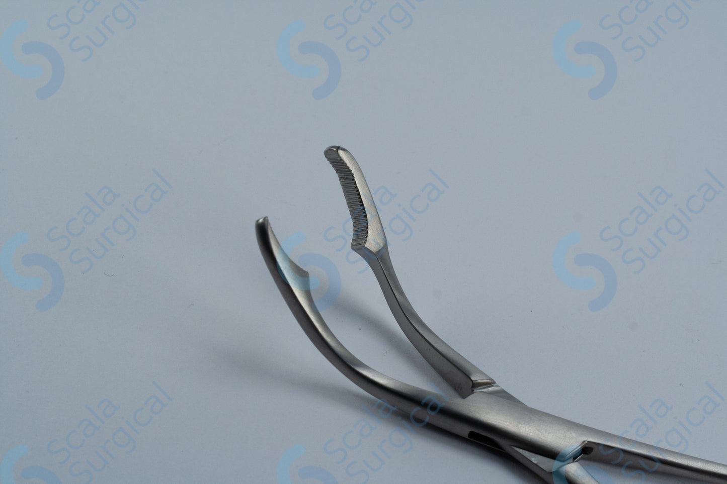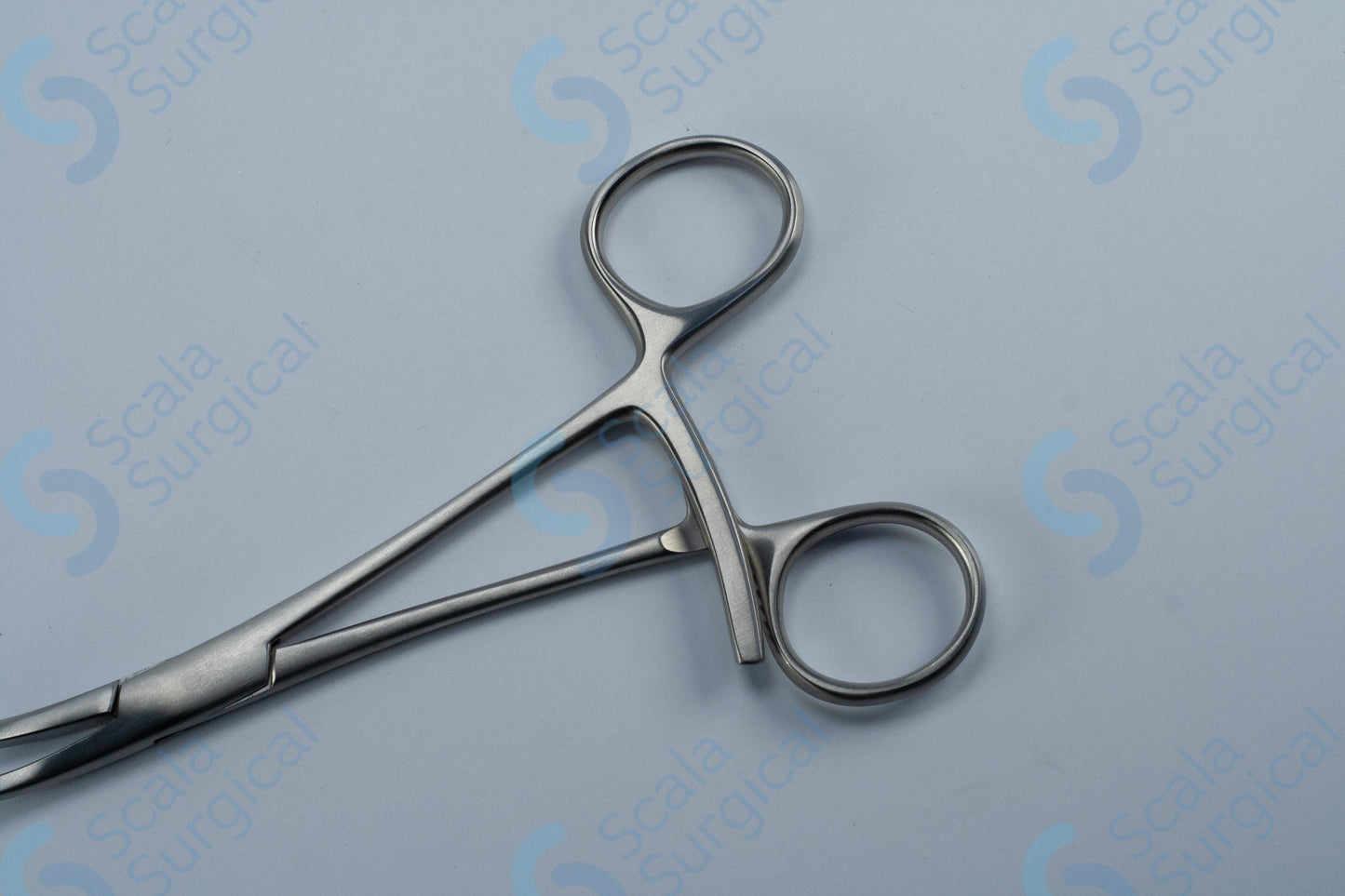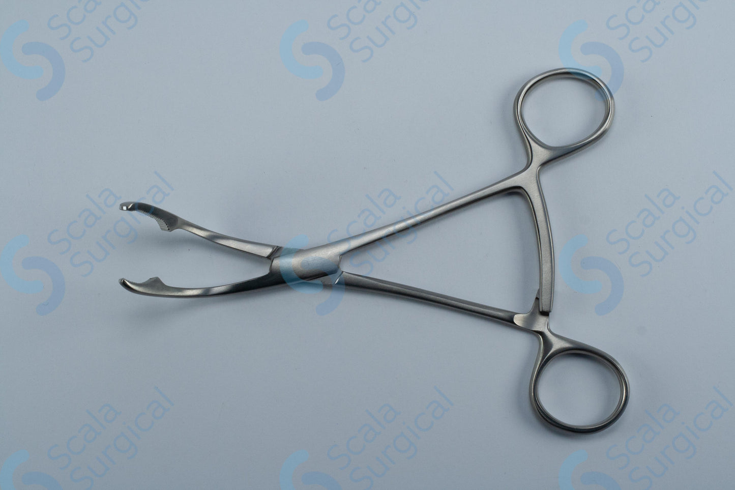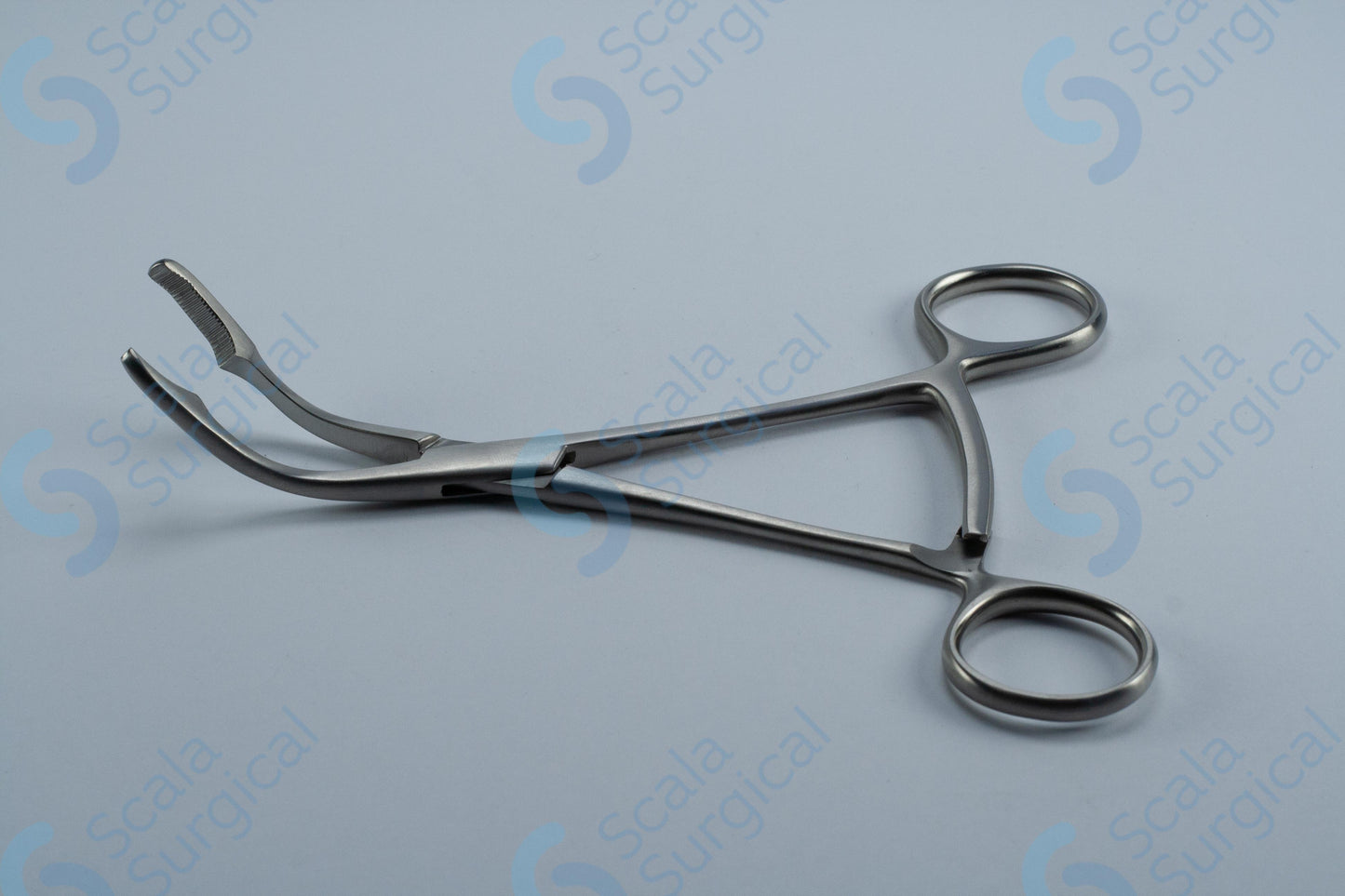 Verbrugge Bone Holding Forceps are surgical instruments used to hold and manipulate small bones during orthopedic and other surgical procedures. They are designed with long, angled tips and serrated jaws that securely grip and hold bones in place during surgery.