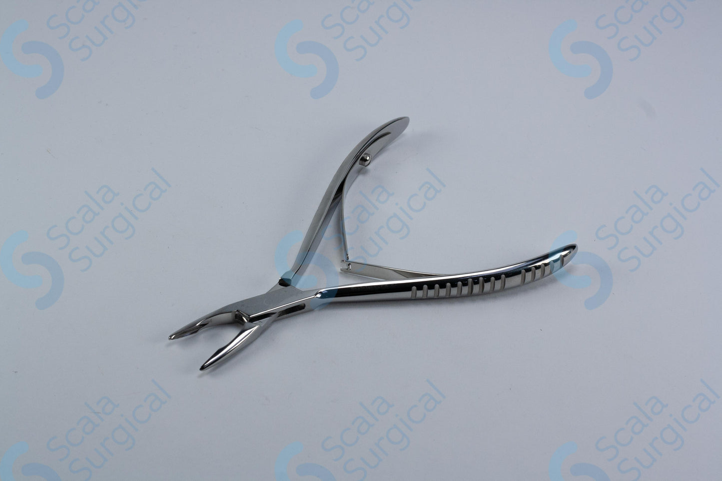 A bone rongeur is a surgical instrument used to remove bone. The Friedman Bone Rongeur Cvd (140mm) (5? inch) is a curved version of the instrument, which is used for reaching into curved areas of the body, such as the spine. It is commonly used in orthopedic and neurosurgical procedures.