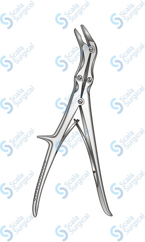 A bone rongeur is a surgical instrument used to remove bone. It typically consists of a long handle with a pair of sharp jaws at the end. The Echlin Bone Rongeur Compound Action Handle (228.6mm) (9 inch) is designed to provide extra leverage, allowing for greater precision and control when removing bone.