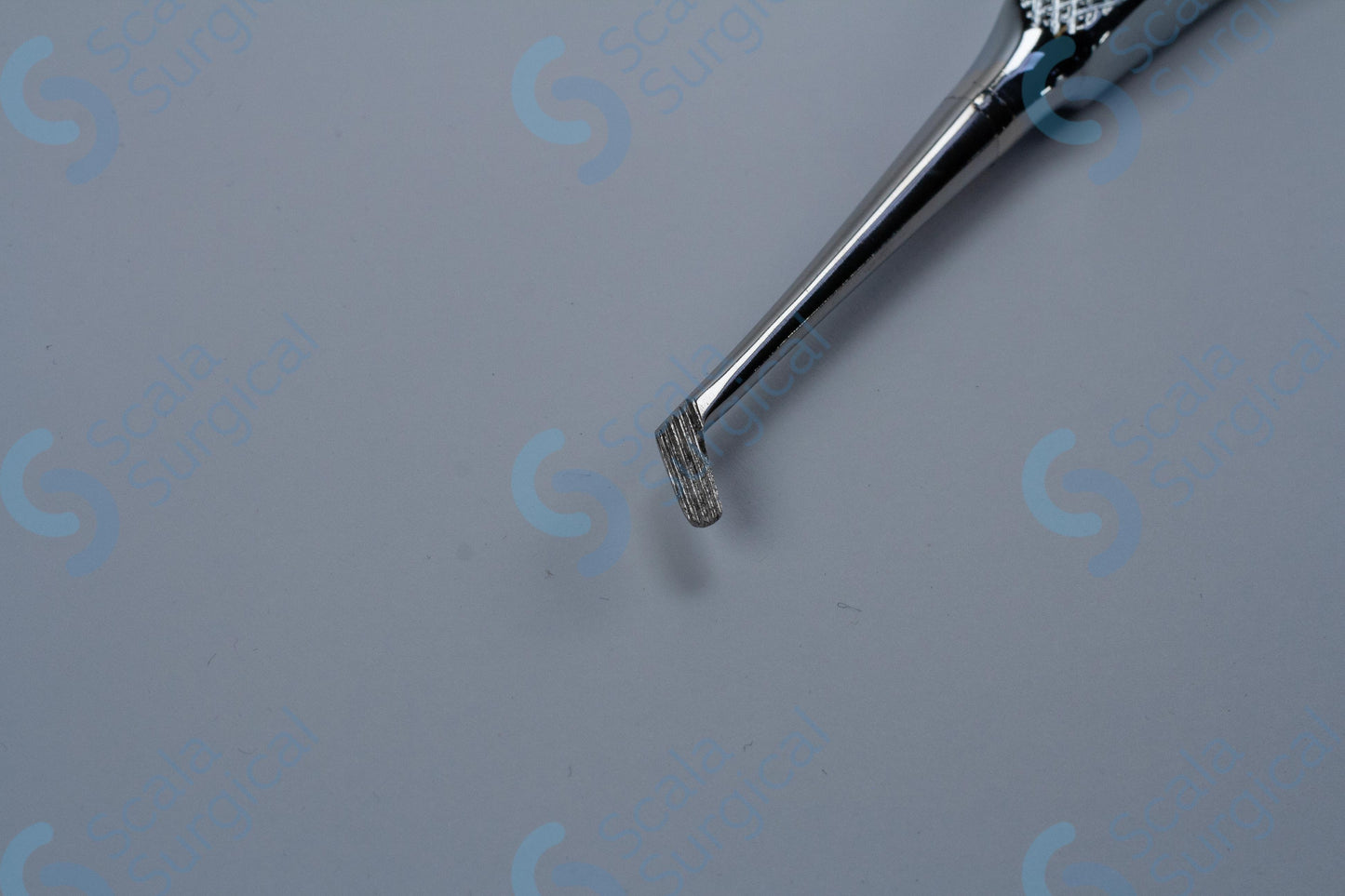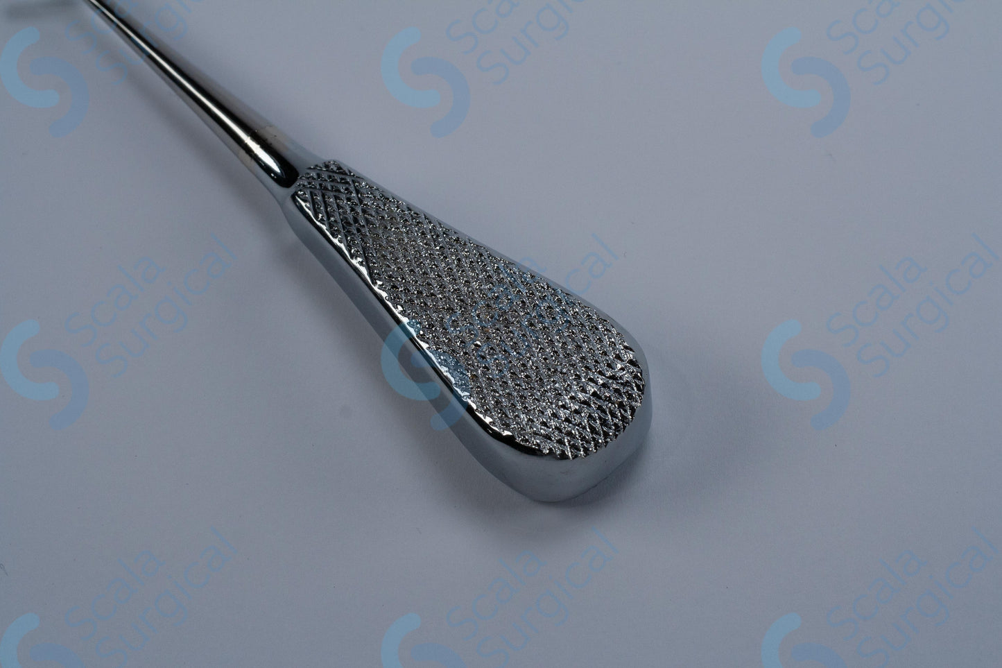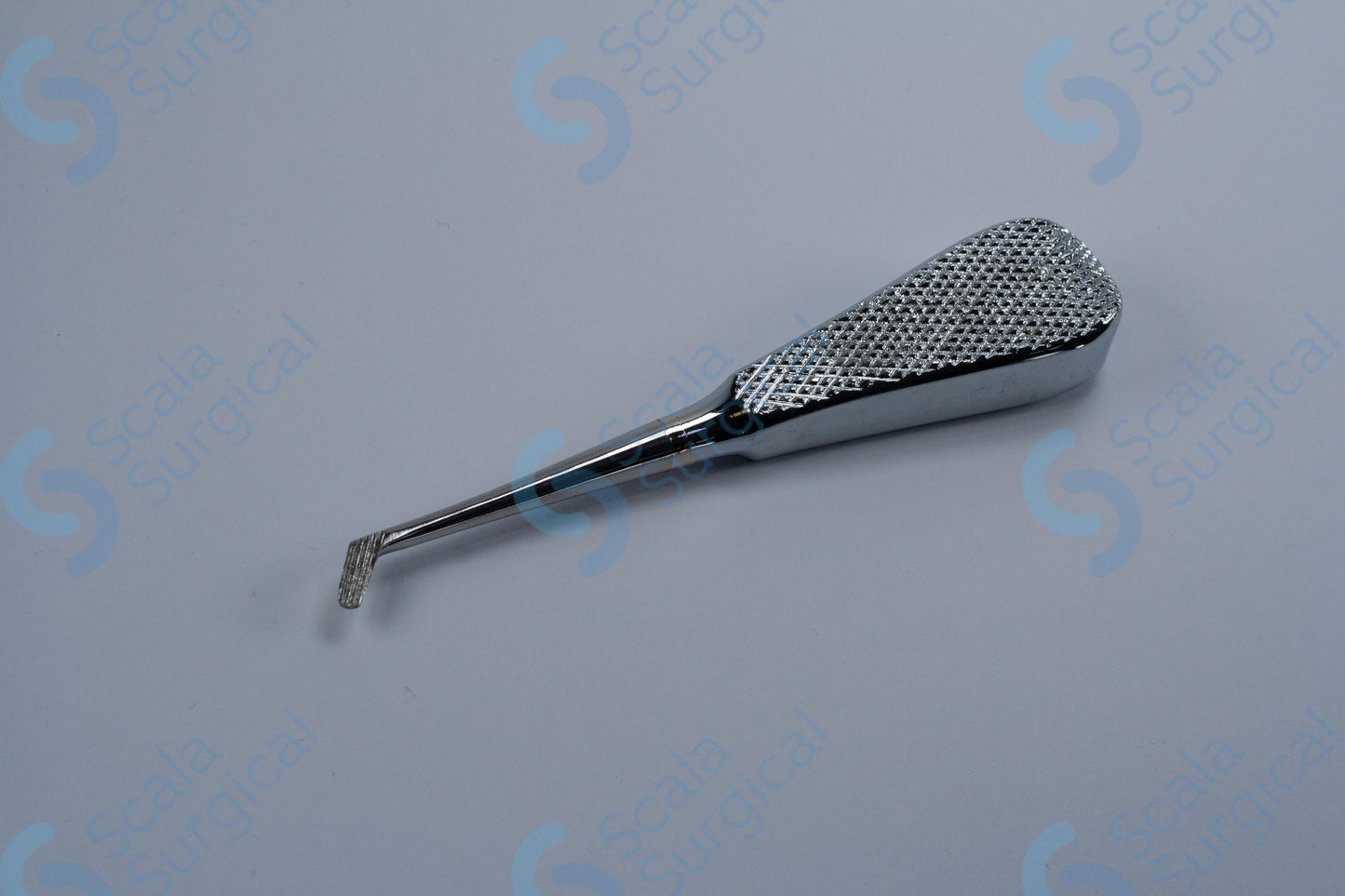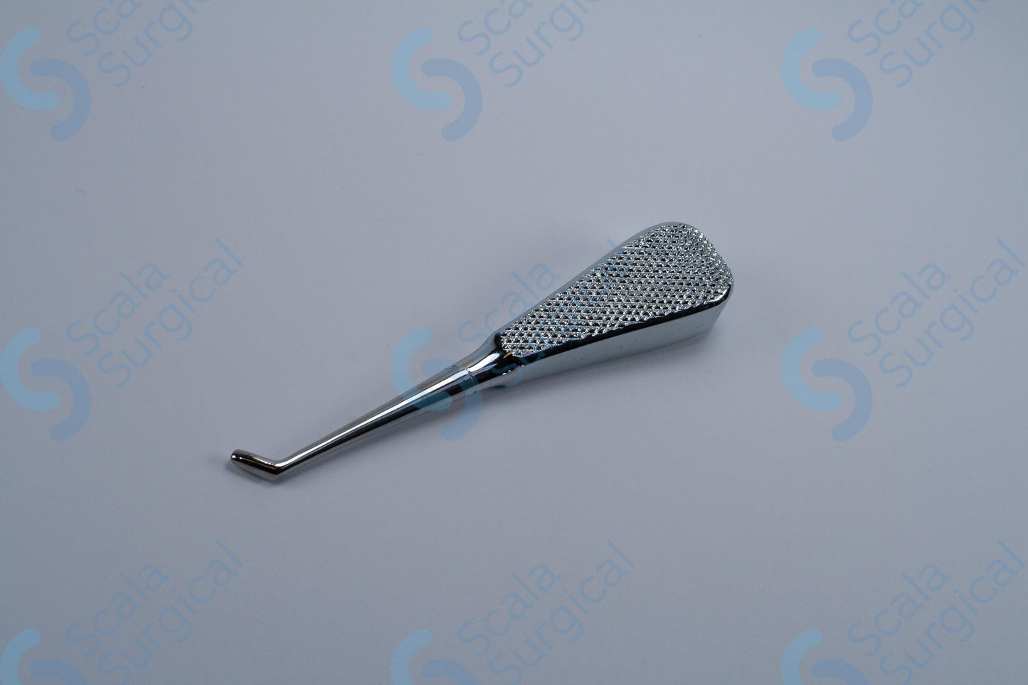 This item is a curved hospital elevator designed to be used in the surgical field. It is 139.7mm (5? inch) in size and is used to move patients, equipment, and supplies between floors of the hospital.