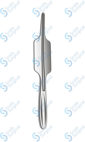 A Childe Hernia Dissector is a surgical instrument used to dissect, separate, and mobilize tissue and perform hernia repairs. It is a long, curved blade with a blunt tip that is designed to gently separate tissue layers, allowing access to the hernia sac. The size of the instrument is usually given in millimeters or inches, and this particular instrument is 139.7mm (5? inches) long.
