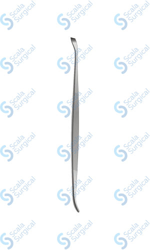 This tool is used to dissect tissue in the surgical field. The double-ended design allows two different types of cutting edges, one serrated and one smooth, to be used depending on the type of tissue being dissected. The 6mm size is designed for precision and accuracy when dissecting delicate tissue.