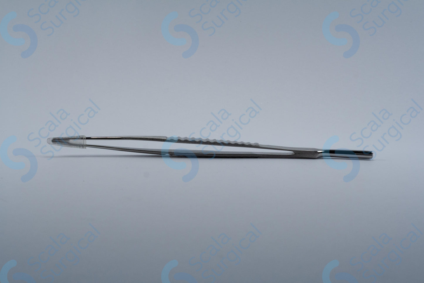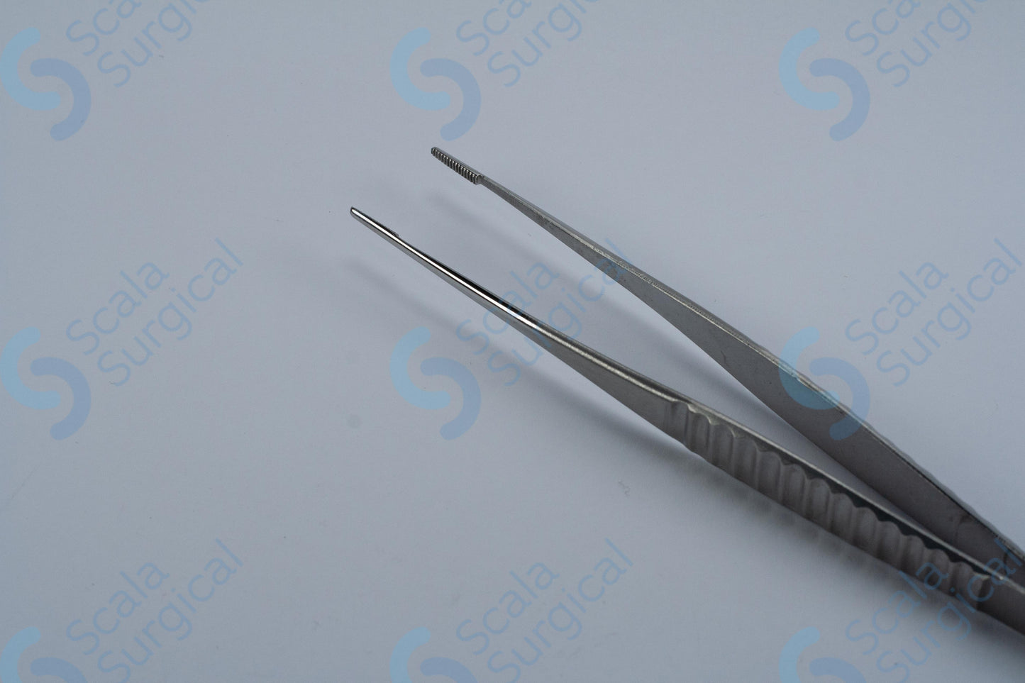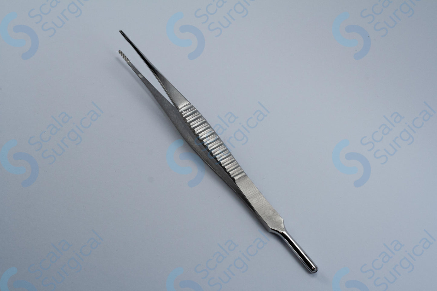Gillies Diathermy Dissecting Forceps are surgical instruments used to dissect tissue and control bleeding during surgery. They are typically used to separate tissue layers and to cut or coagulate tissue. The serrated edges of the forceps help to grip tissue, while the pin at the end of the forceps is used to cauterize tissue.