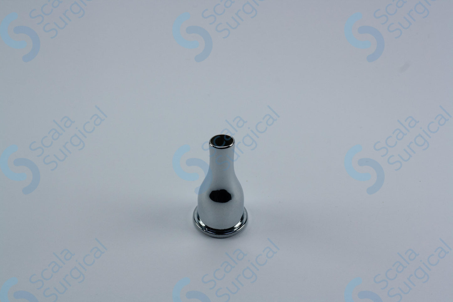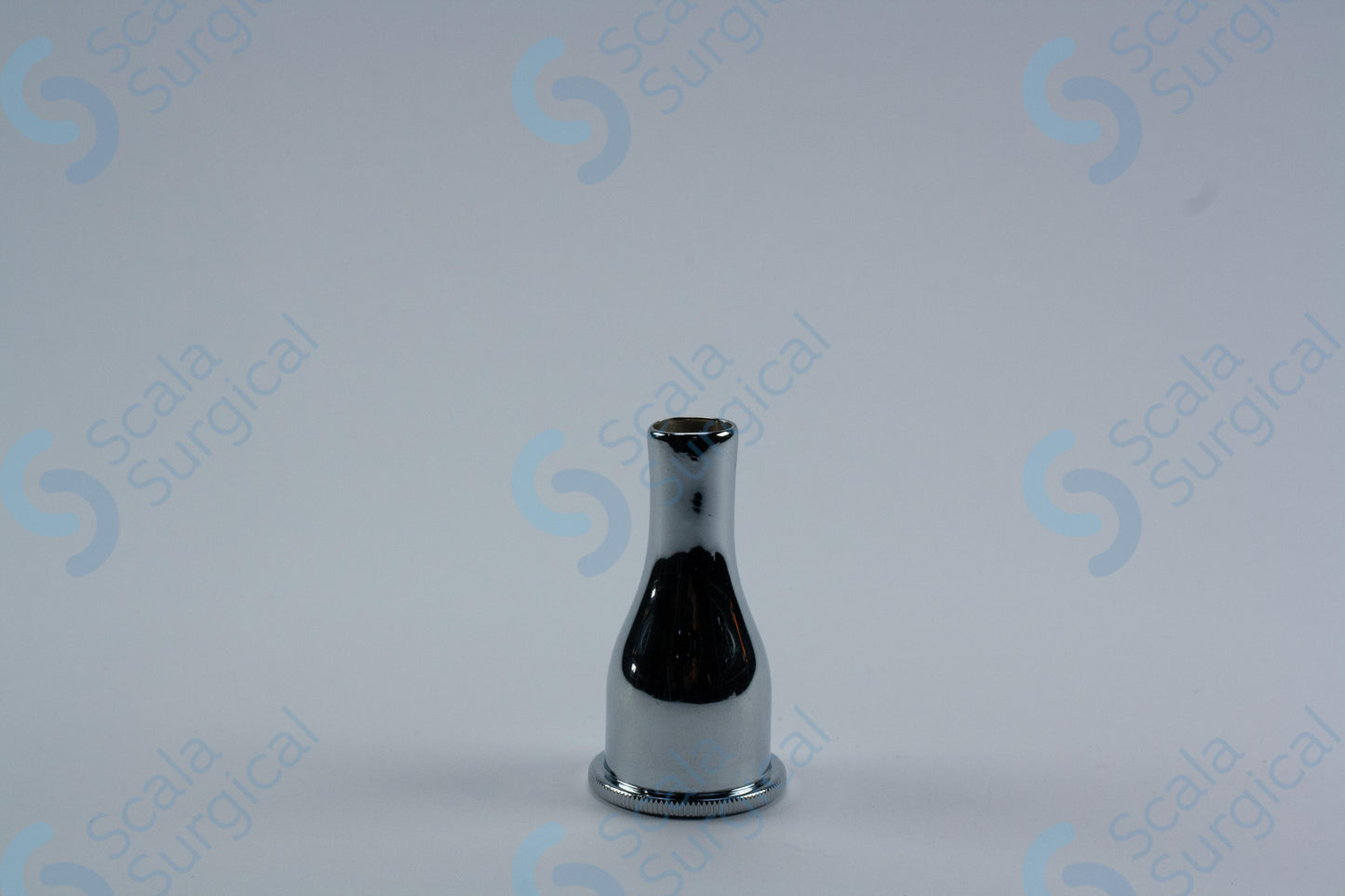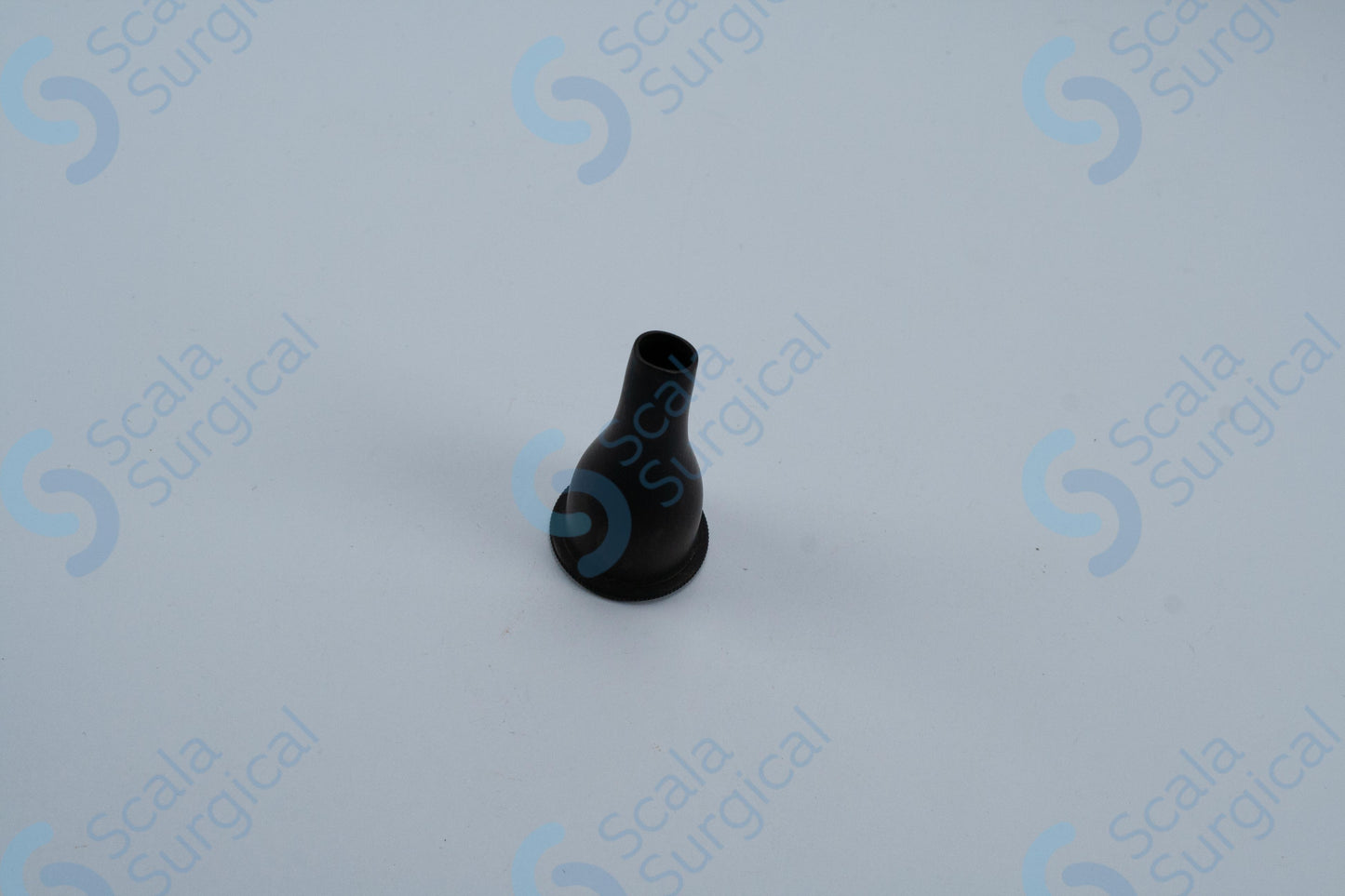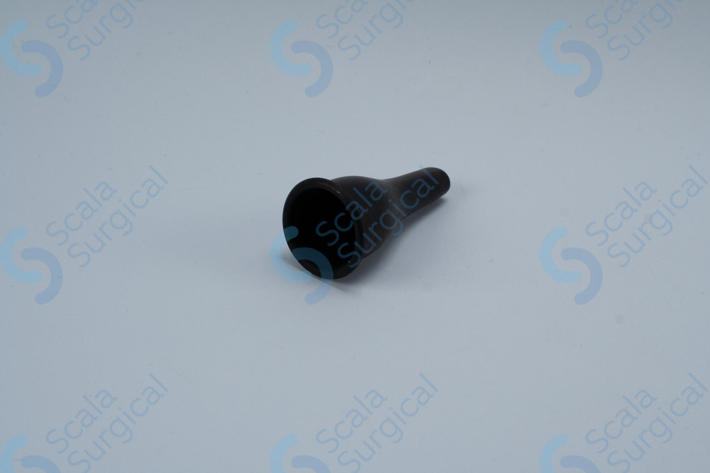 This item is used for ear surgeries. It is a Peter Siegle Aural Spec, which is an oval-shaped tool that is black plated and measures 7 x 5.5 inches (48 mm). It is used to help manipulate the eardrum during ear surgeries.