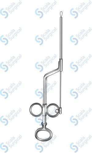 The Glegg Nasal Snare Chrome Plated (9? inch) is a surgical instrument used for the removal of foreign bodies from the nasal cavity. It consists of a looped wire that is placed around the object and then tightened to remove it. It is commonly used in the removal of nasal polyps or other small objects.