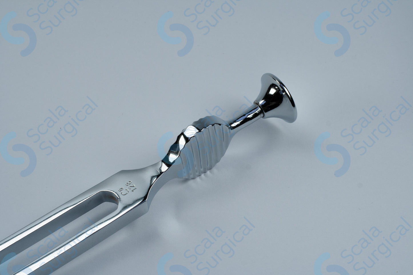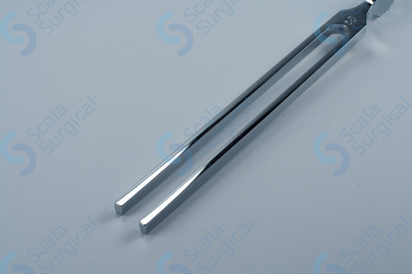 A Ragg Gardiner Brown Tuning Fork is a medical device used to test a person's hearing. It is often used in the surgical field to diagnose hearing loss or other hearing issues. The C 0 128 Hz tuning fork produces a sound at 128 Hz, which is the frequency used to test hearing acuity.