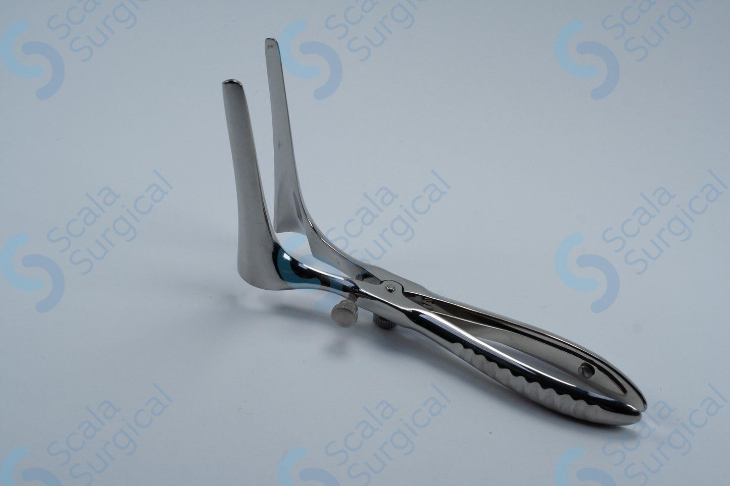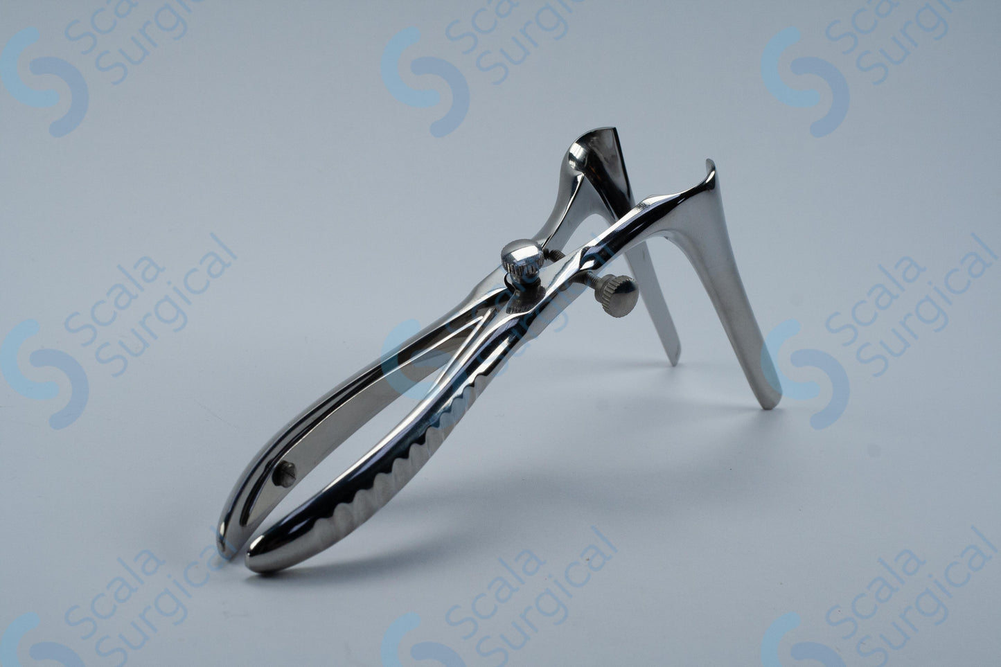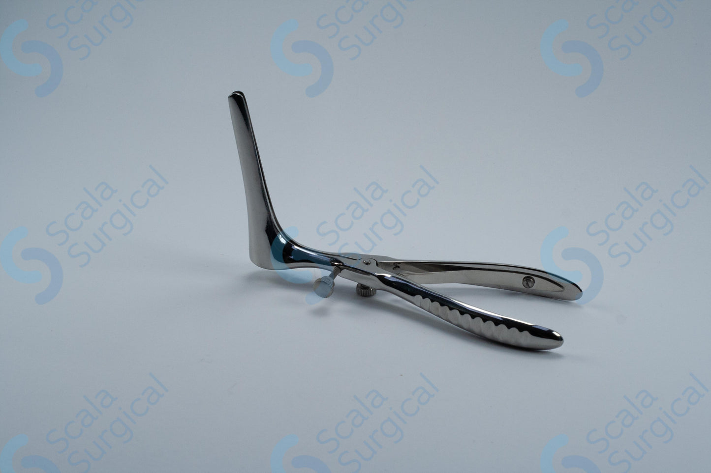 This item is used to hold the nostrils open during a nasal procedure. The screw adjustment allows the user to adjust the length of the blade to fit the patient's anatomy.