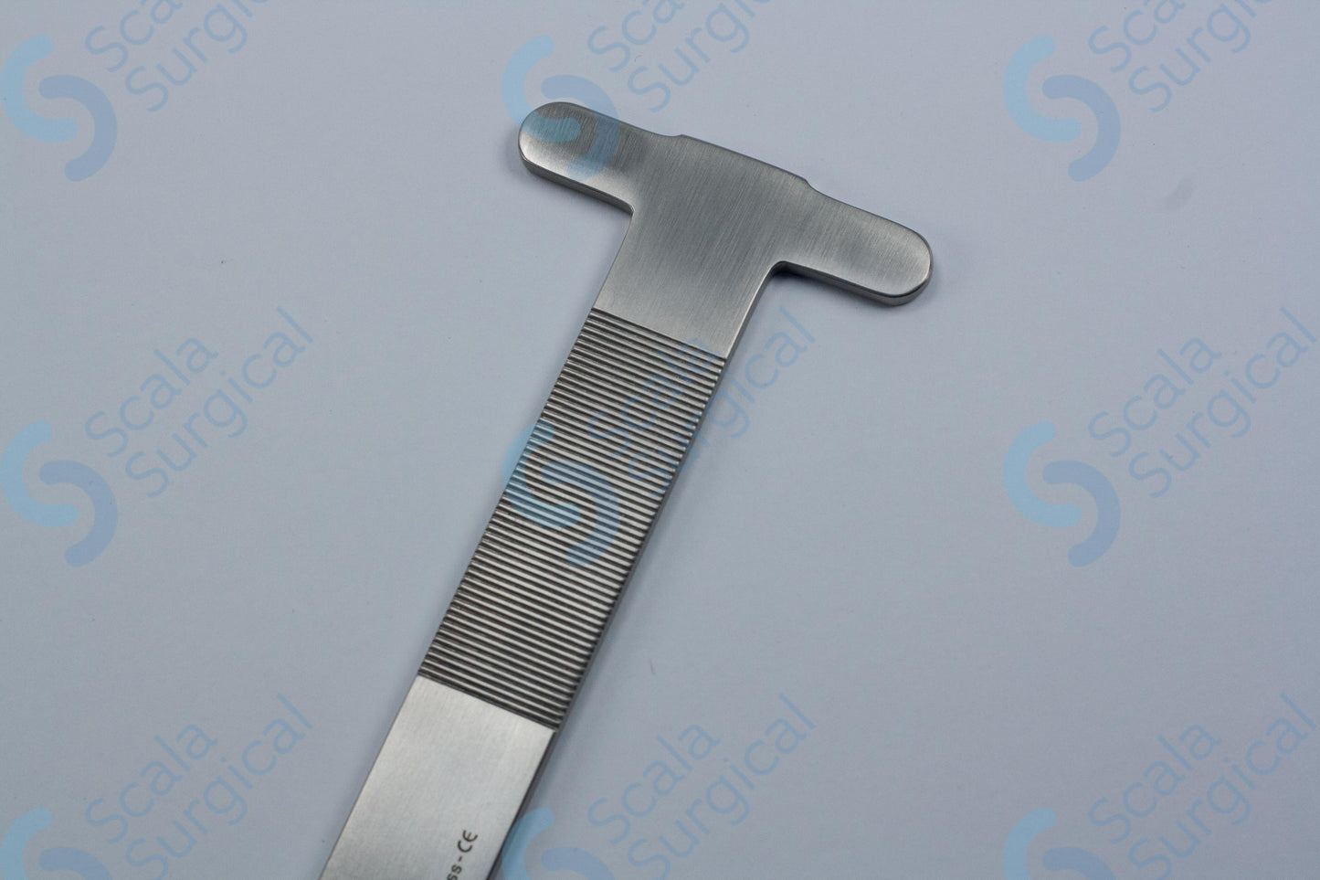 A Robin Nasal Chisel with a T-Shaped Handle and Large Chisel Width Tapering is used in the surgical field to cut and shape bone during nasal and sinus surgery. It is typically used to remove bone to open up the sinus or nasal cavities, as well as to reshape the nasal bones.