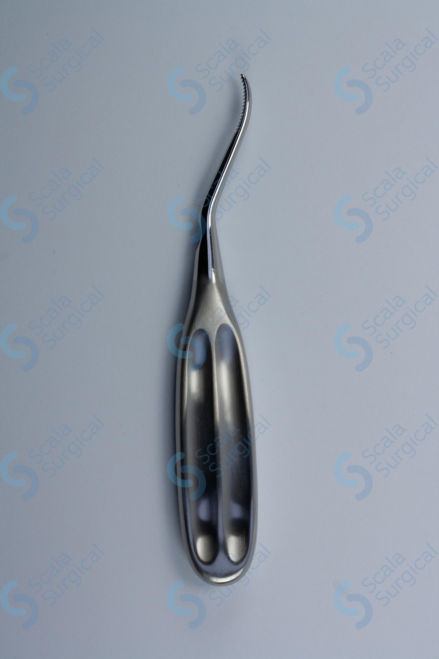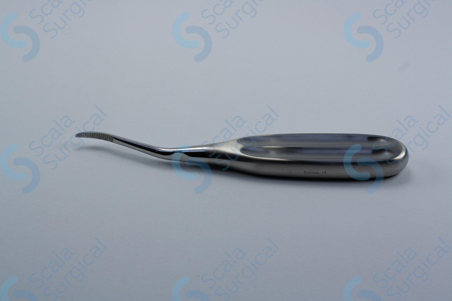 A Watson Williams Nasal Raspatory is a surgical instrument used to reduce the size of the nasal septum and remove excess bone or cartilage from the nasal cavity. It is commonly used in rhinoplasty and septoplasty procedures.
