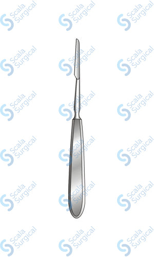 This item is a surgical saw used to cut through bone and cartilage during nasal surgery. It is a straight saw with a blade length of 177.8mm.