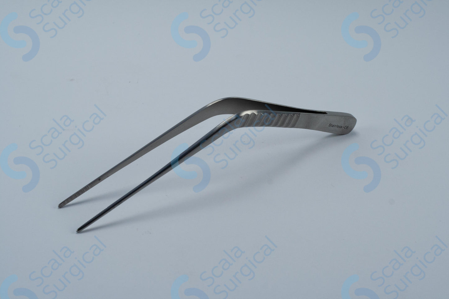 Wilde Aural Forceps Angled (139.7mm) (5? inch) are used in the surgical field to grasp and hold tissue during ear surgery. They are angled to provide better access to the ear canal. They are also used to remove foreign bodies from the ear canal.