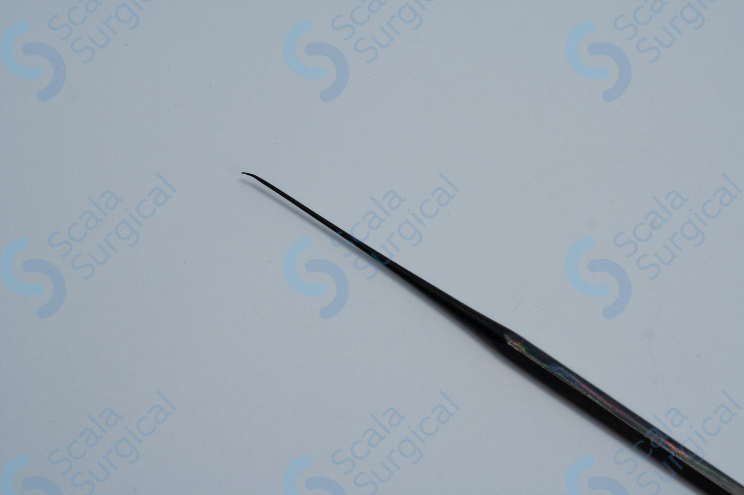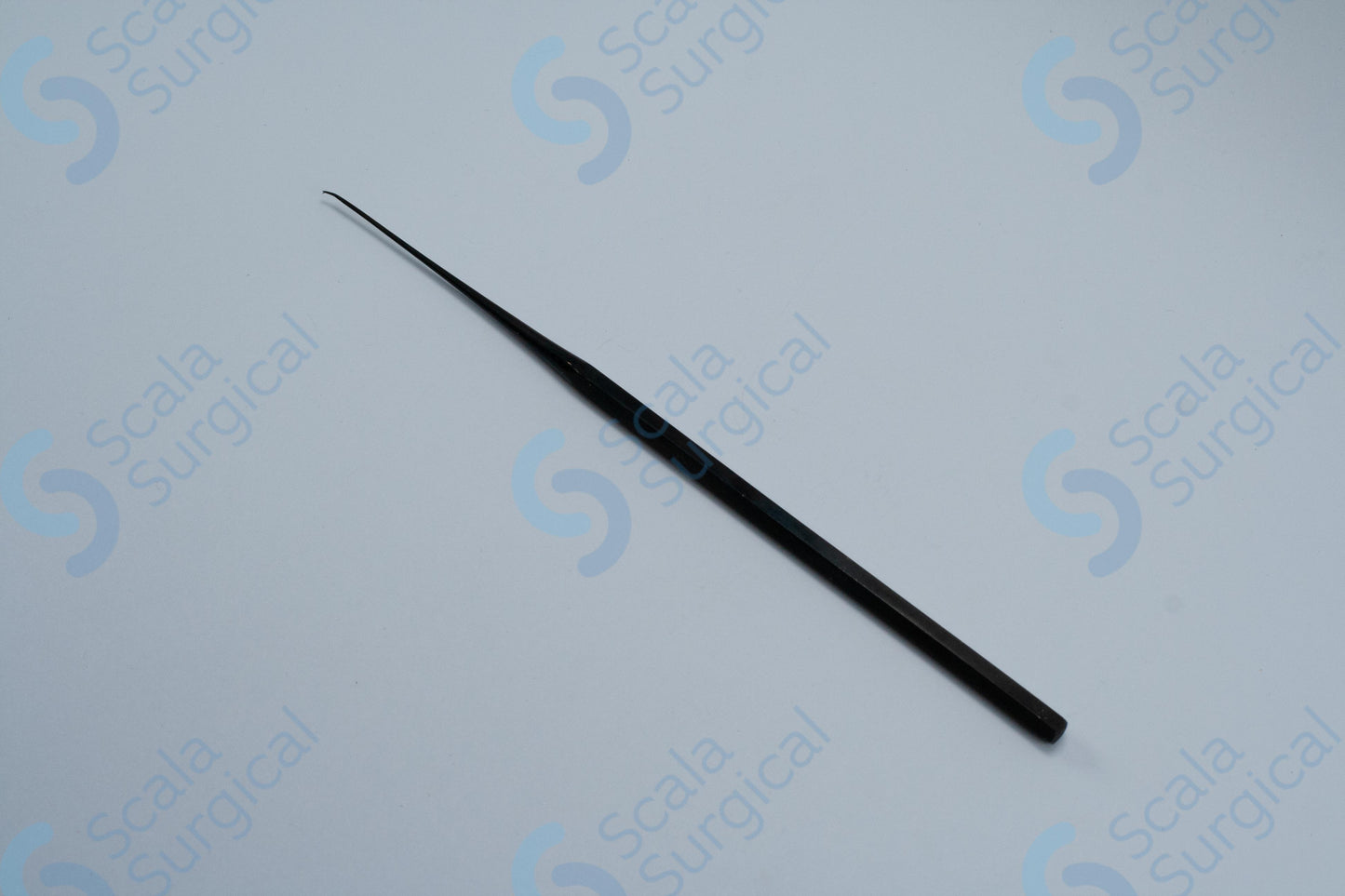 The Rosen Aural Hook Black Plated Fig.8 is a surgical instrument used to pull the ear lobe forward to aid in surgical procedures such as ear tube insertion. It is also used to hold the ear lobe in place during other procedures such as skin grafting and ear reconstruction.