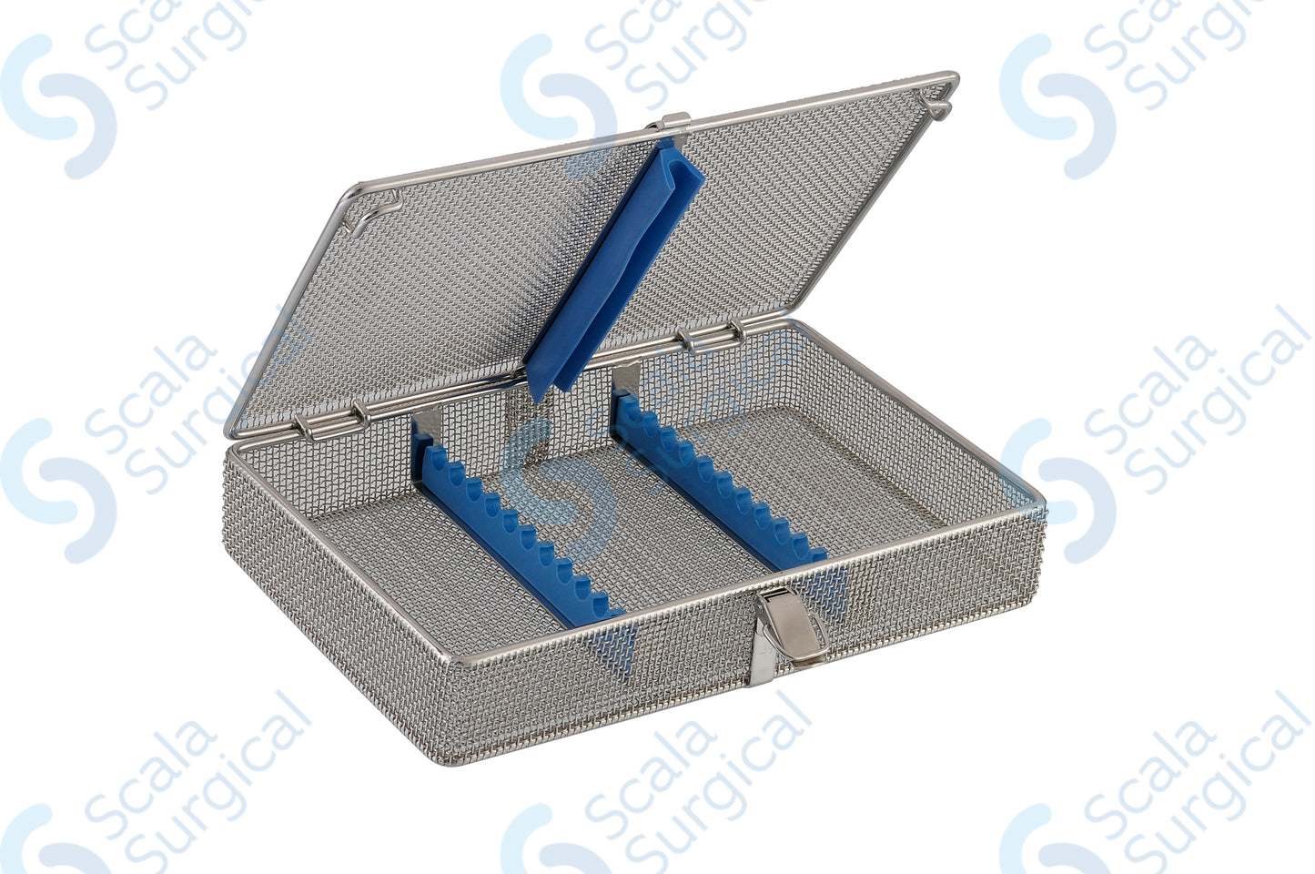 Our Fine Mesh Baskets with Silicone Strips are designed to securely hold and protect delicate instruments during sterilisation.