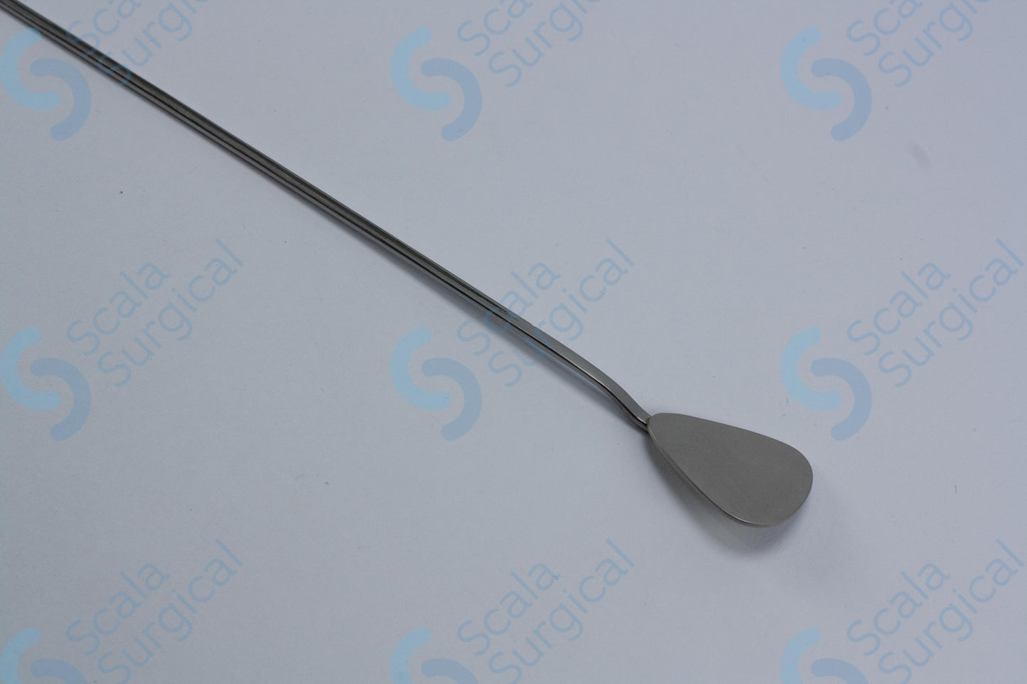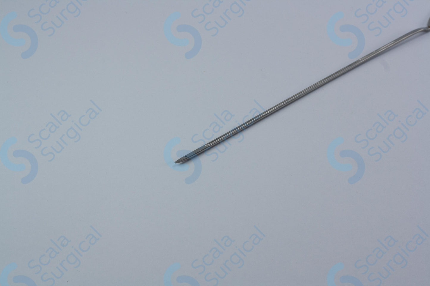 This item is a tool used to create a fistula, which is a surgically created connection between two organs or vessels. The Lockhart Mummery Fistula Director Straight With Hole is a straight tube with a hole in the center that is used to guide a needle or trocar through the tissue to create the fistula.