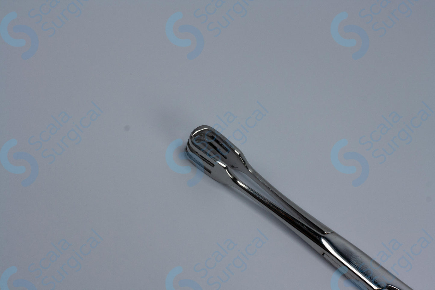 The Lahey Vulsellum Forceps with 3 x 3 teeth is a surgical instrument used to grasp and hold tissue during a surgical procedure. The box joint design allows for a secure grip, while the 9mm jaw width and 6-inch length provide a comfortable reach for the surgeon. The 152.4mm length also allows for a greater range of motion.
