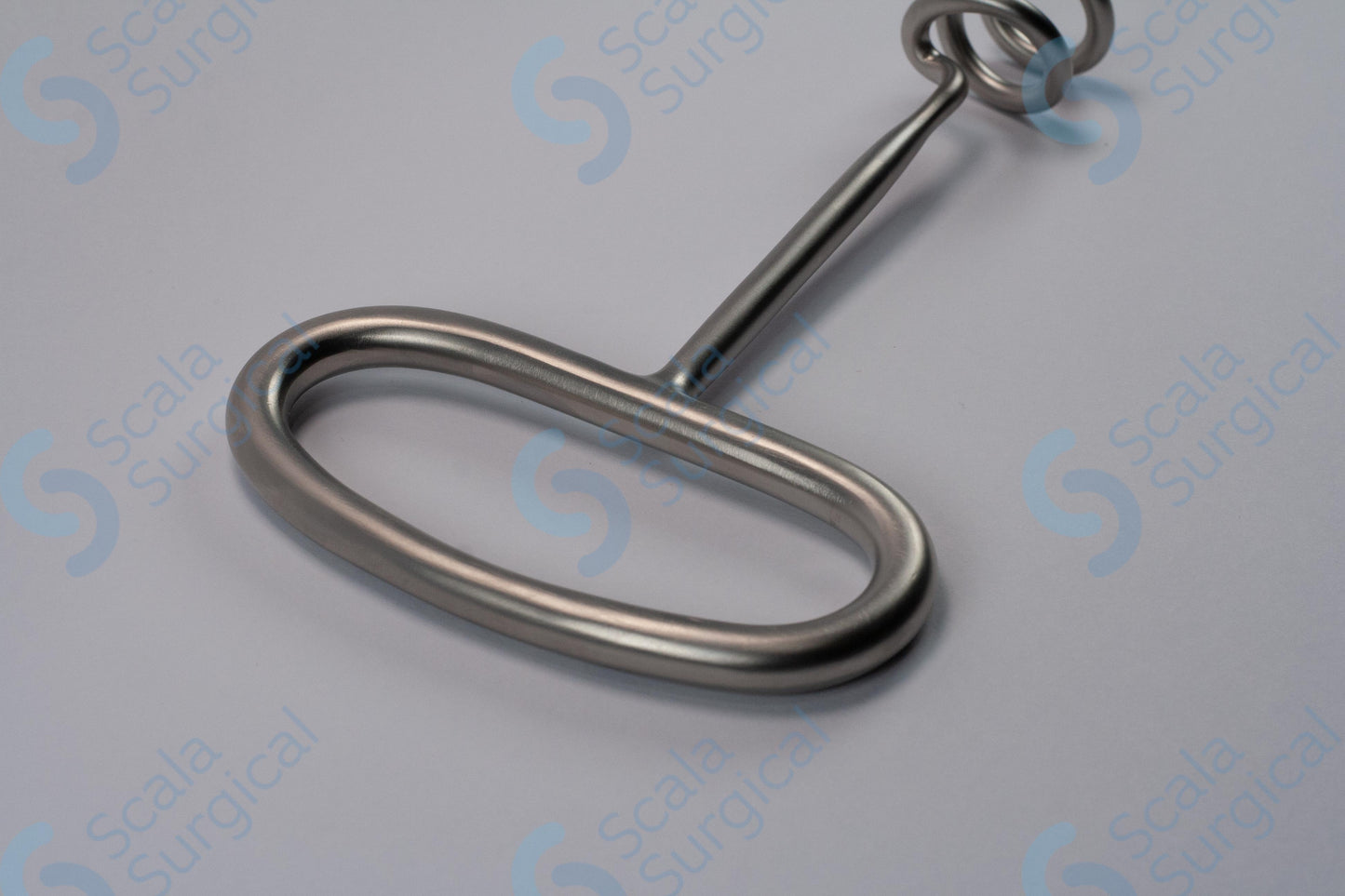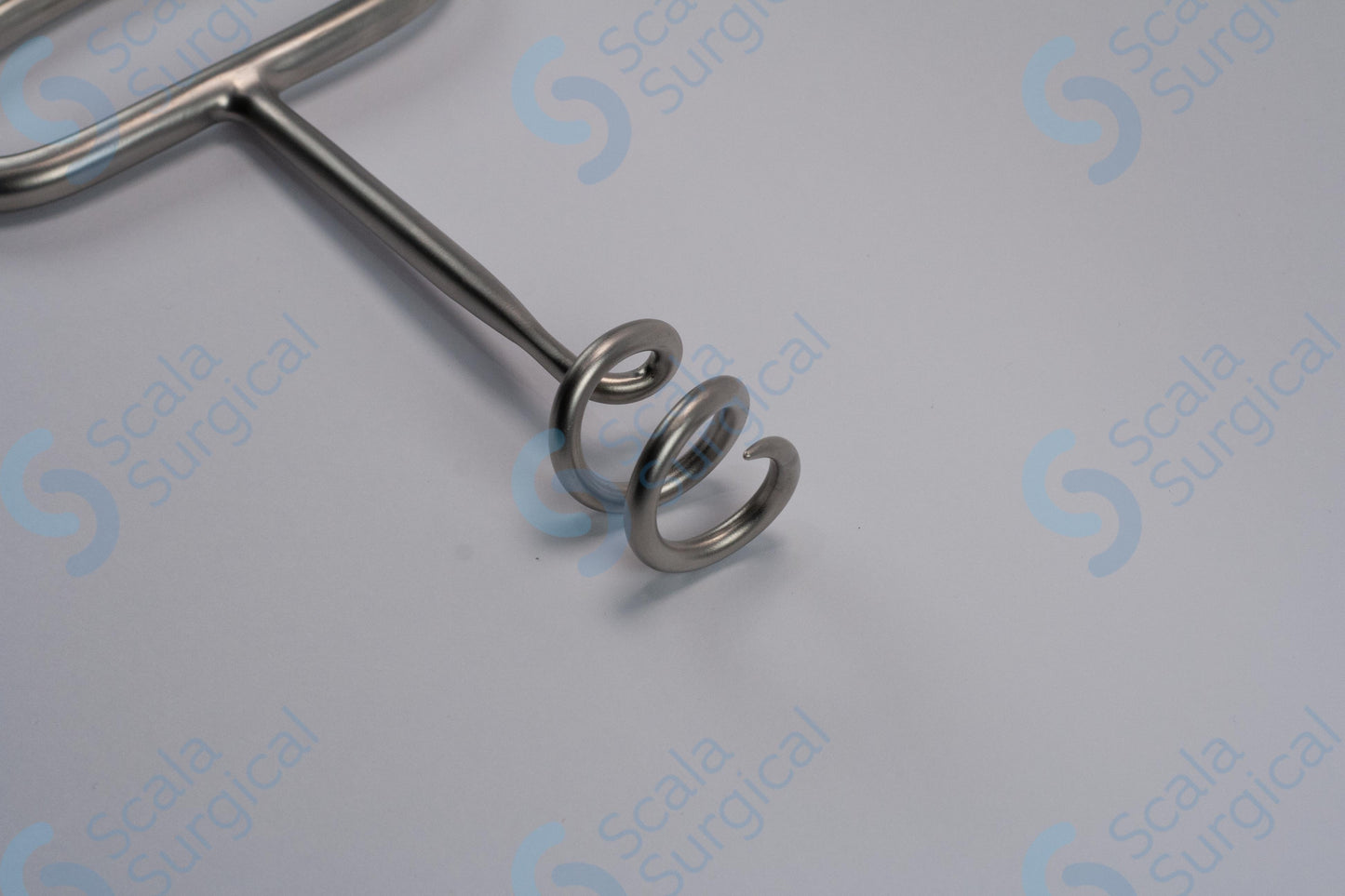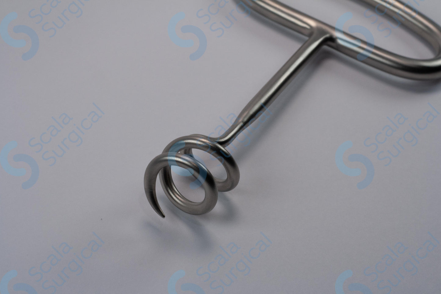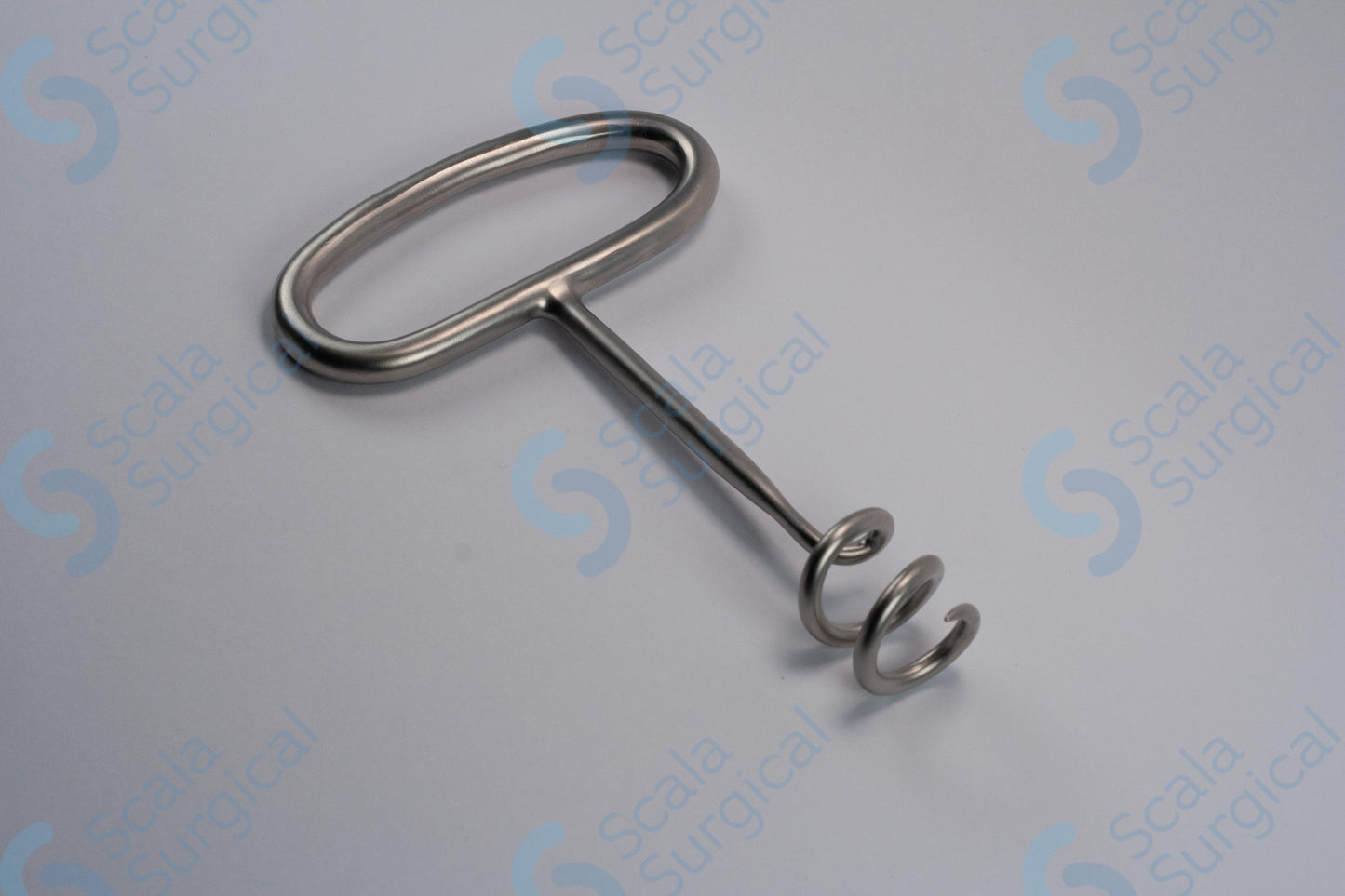 The Doyen Vaginal Screw Large Spiral is a surgical instrument used to reduce prolapse of the uterus. It is used to place a suture through the vaginal wall and cervix, which is then tightened to reduce the prolapse.