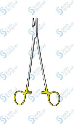 A Baumgartner Needle Holder Tungsten Carbide Jaws Box Joint (203.2mm) (8 inch) is a surgical instrument used for holding and manipulating sutures during suturing procedures. It is typically used for suturing delicate tissues such as the skin, mucosa, or vessels. The box joint design provides a secure grip on the suture and the tungsten carbide jaws provide a secure grip on the needle.