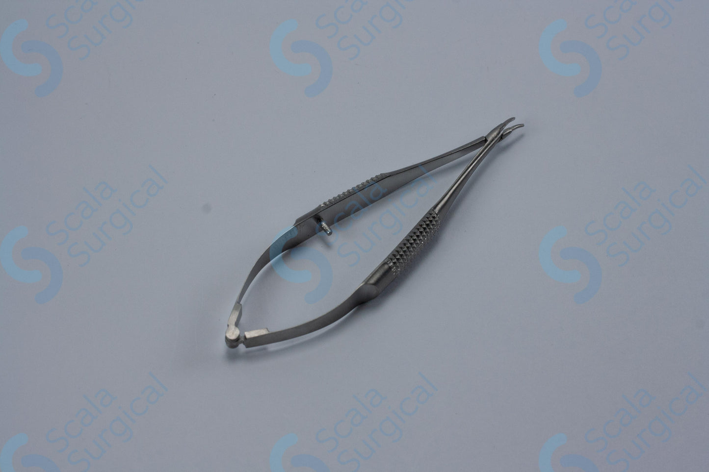 This Catford Micro Needle Holder is used to hold small needles during suturing procedures. It is 95mm in length and does not have a catch, which allows the surgeon to easily release the needle after use.