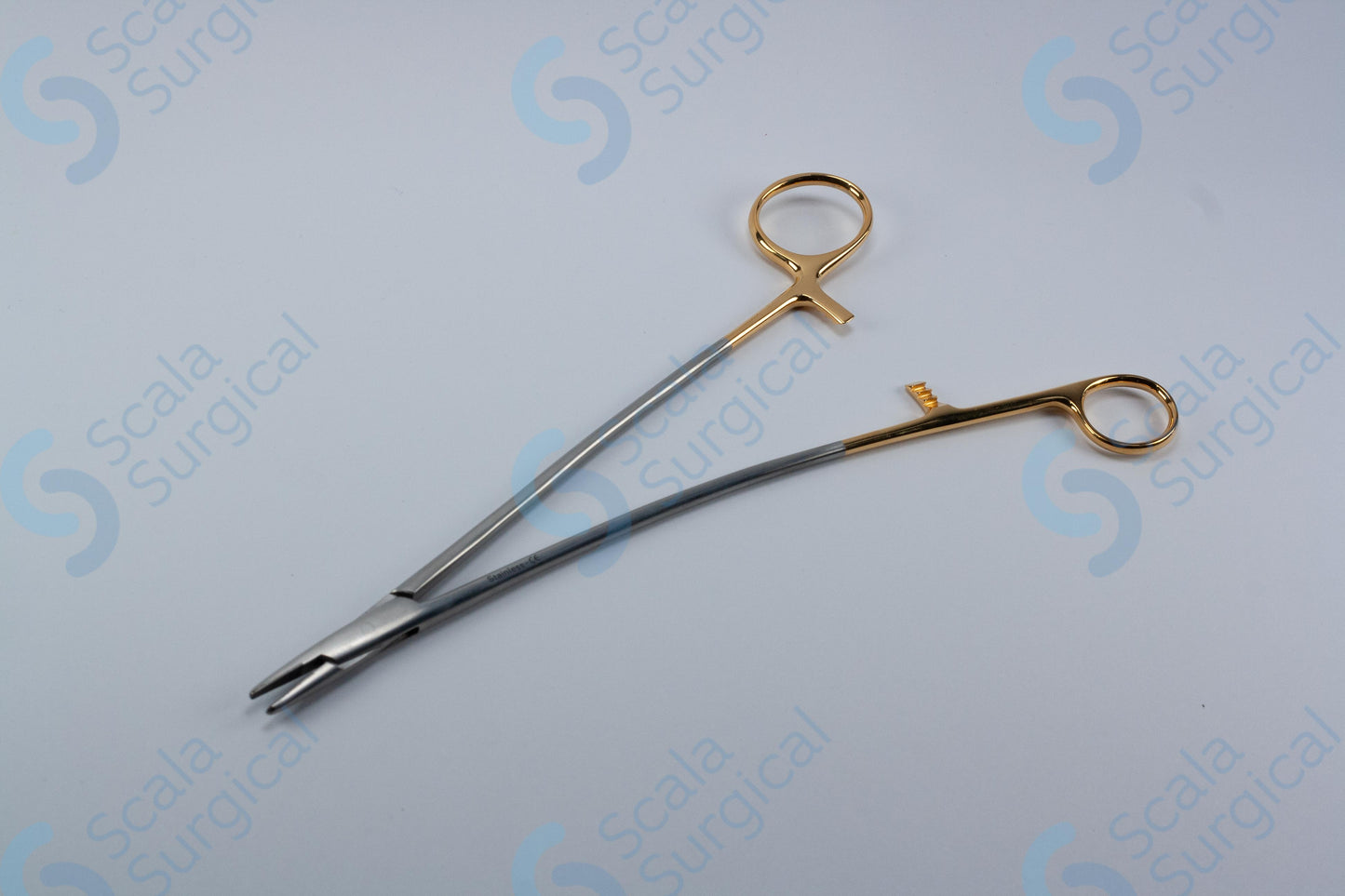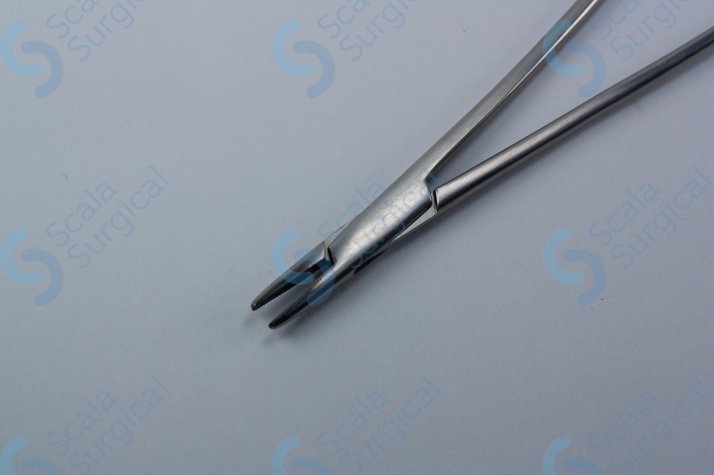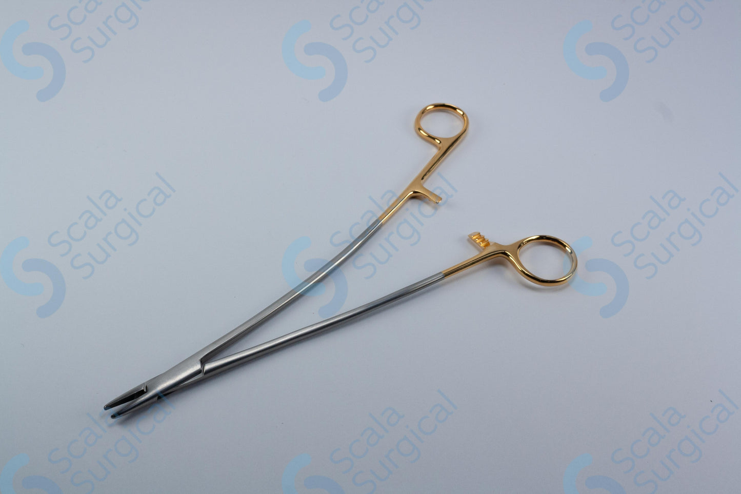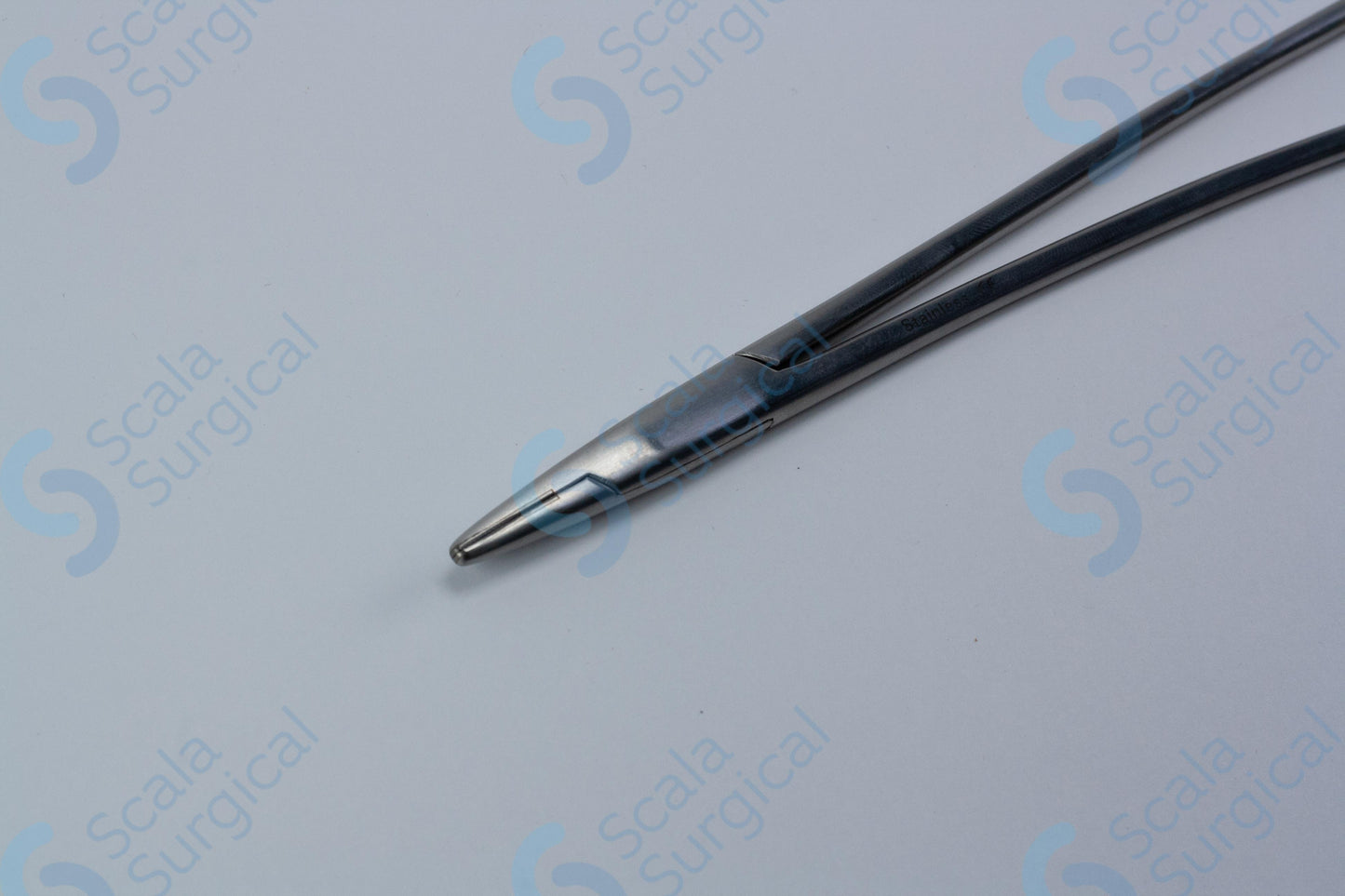 This instrument is used to hold a suture needle during suturing procedures. It has a box joint design that provides a secure grip, and the 247mm (9?inch) length allows for increased reach and maneuverability.