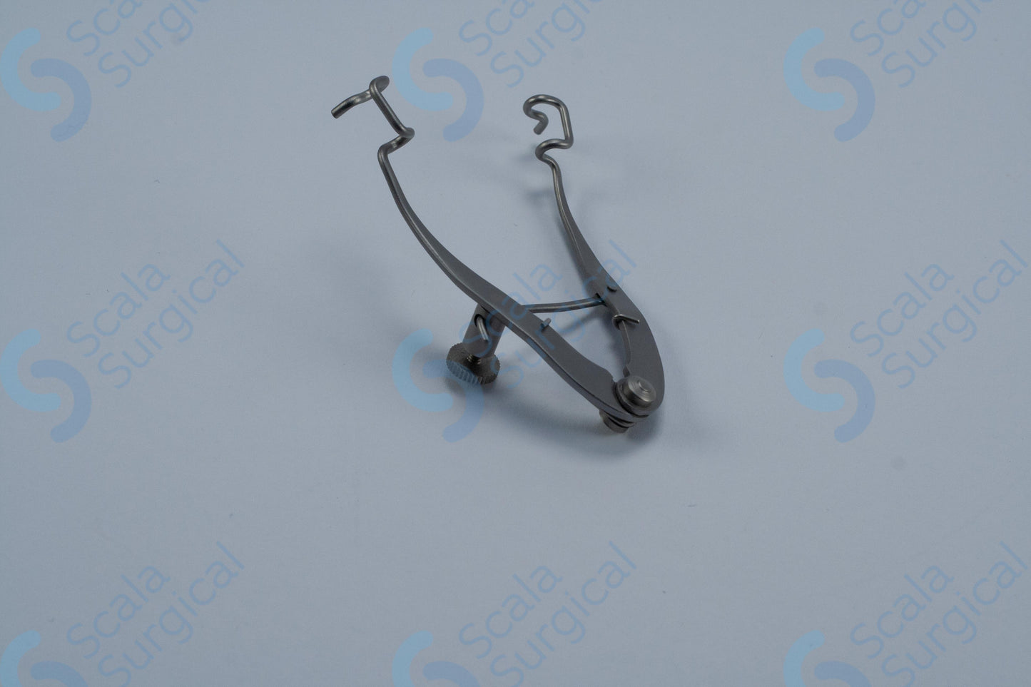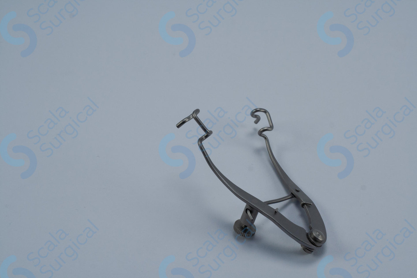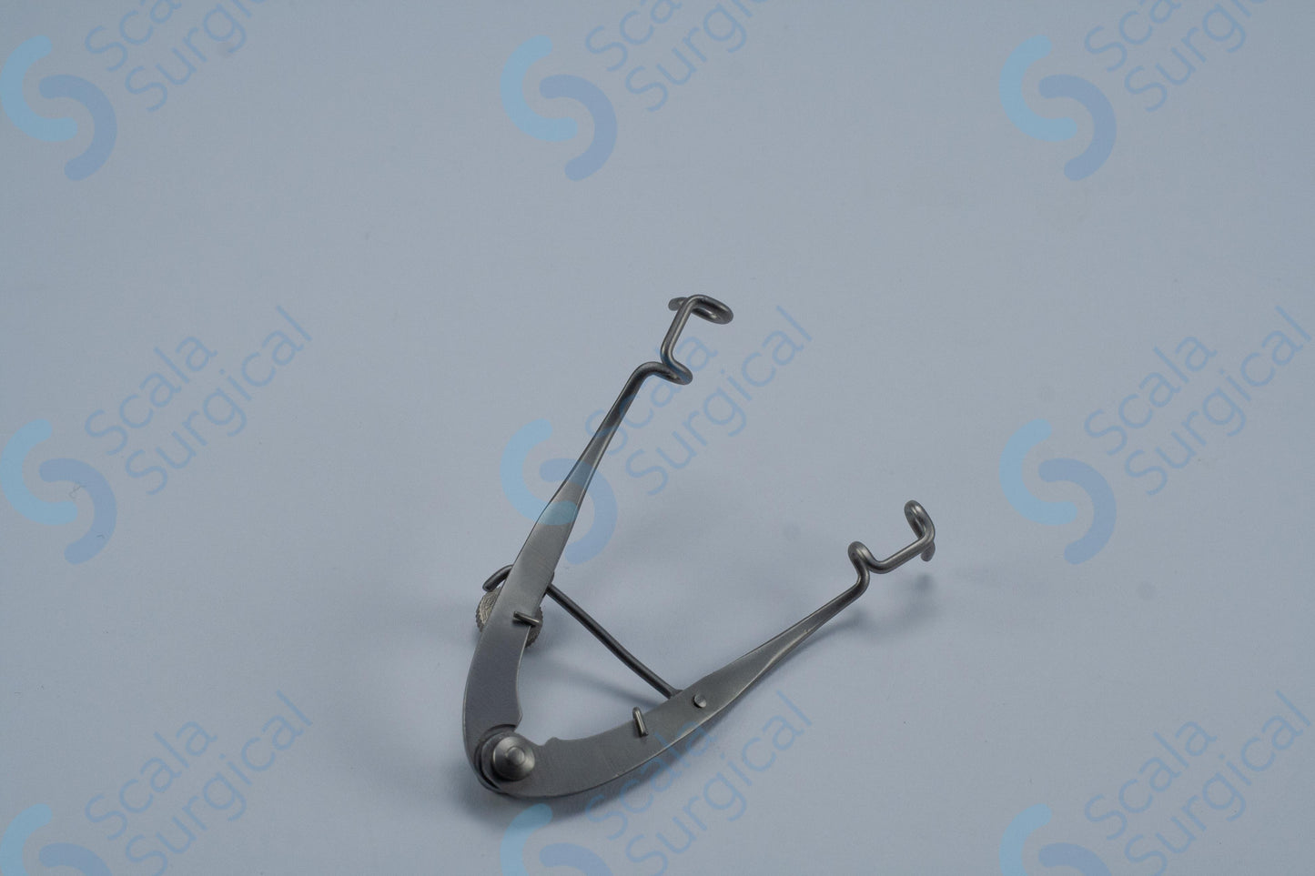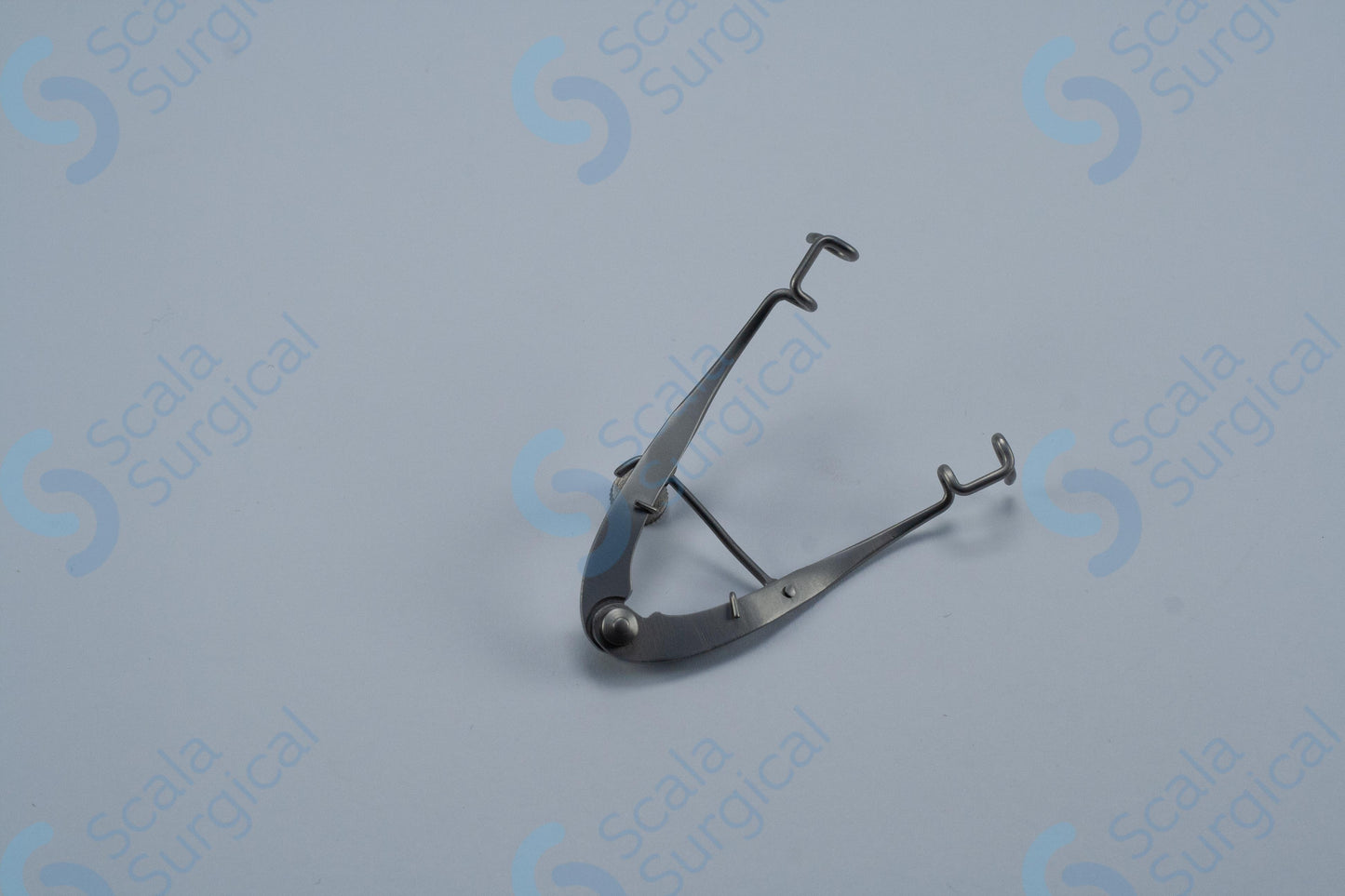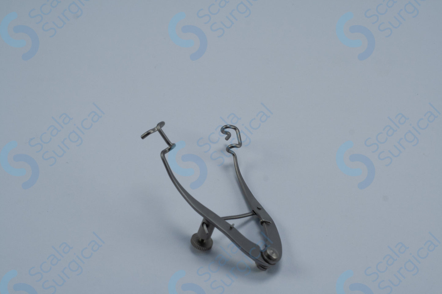 The Clark Eye Speculum Left Infant is a surgical instrument used to hold open the eyelids during ophthalmologic procedures. It is designed specifically for use in infants, and features a curved shape that fits the contours of the eye.