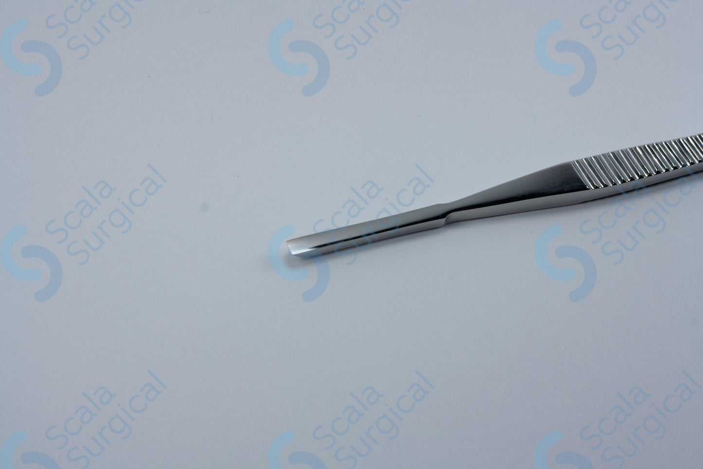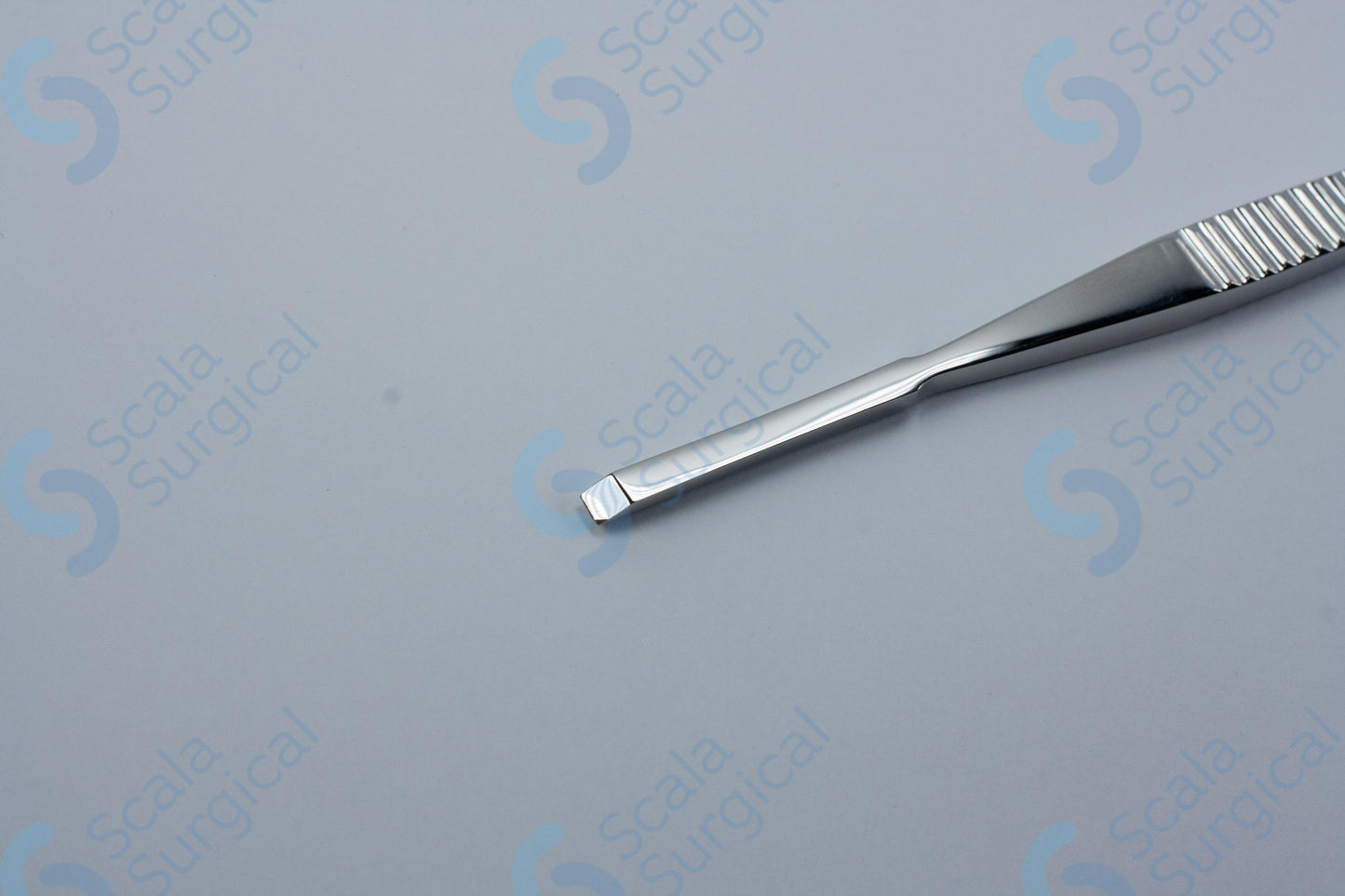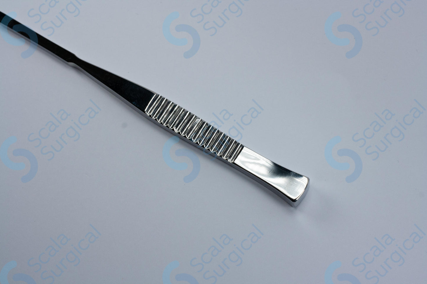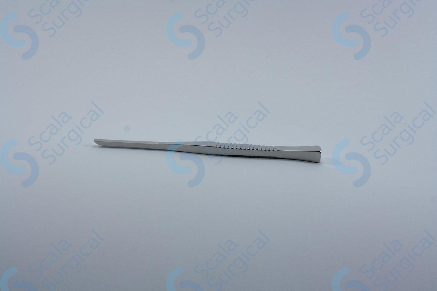 Bone chisels with a square grooved handle are used in the surgical field to cut through bone and other hard tissue. The chisel width of 4mm and the length of 139.7mm (5? inch) are important factors when selecting the right chisel for the job. They are often used in orthopedic and trauma surgeries to cut through bone and other hard tissue.