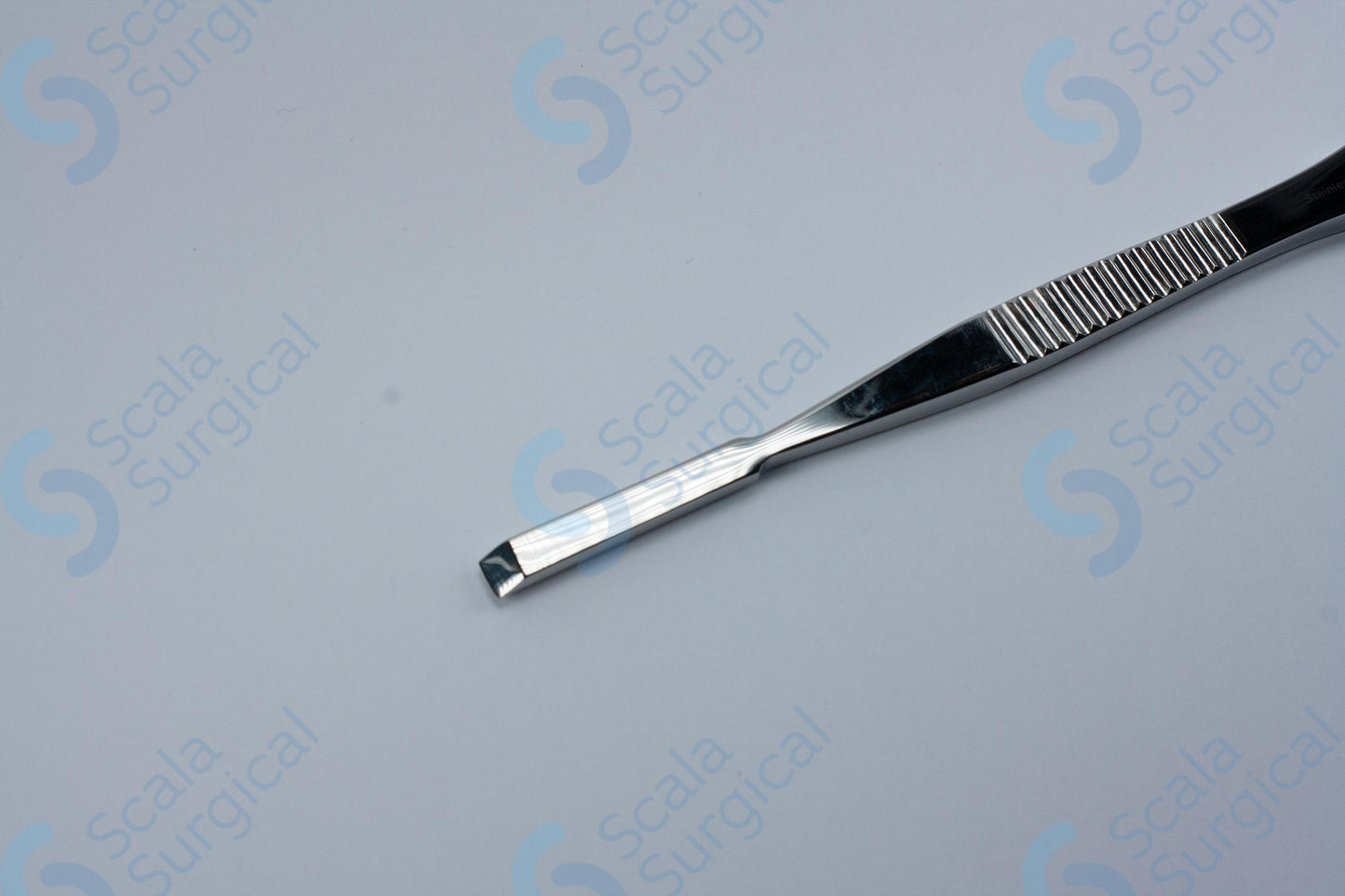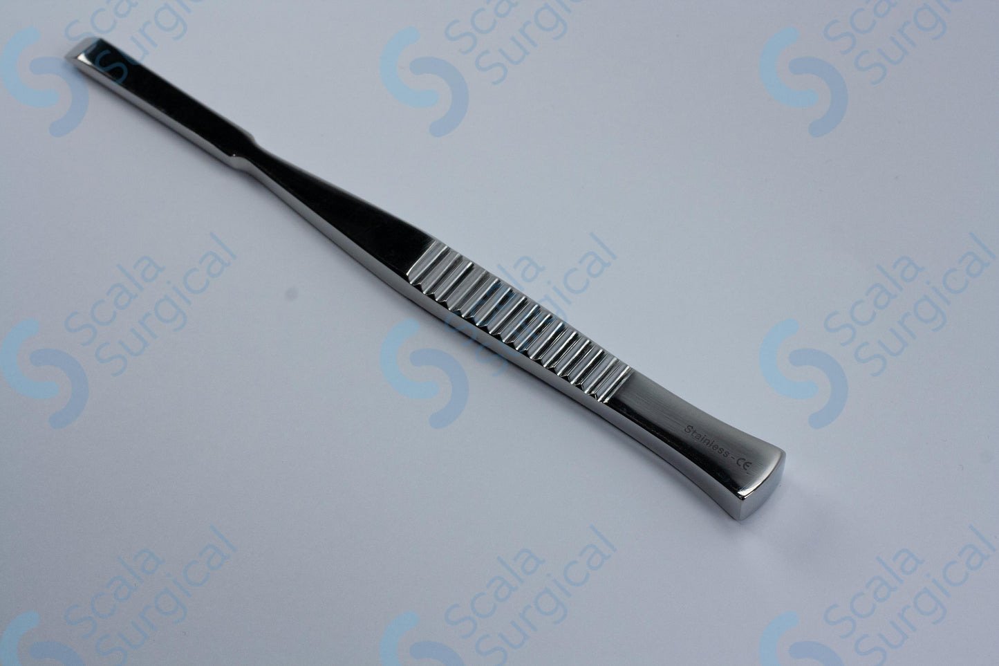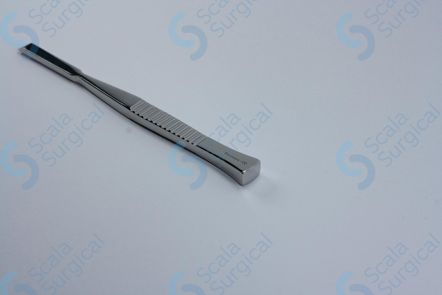 Bone chisels with a square grooved handle are used in orthopaedic surgery to cut, shape, and remove bone. They can be used to remove small amounts of bone, shape and smooth bones, and prepare surfaces for joint replacements. The size of the chisel (in this case 6mm) will determine the size of the cuts and the amount of bone that can be removed.