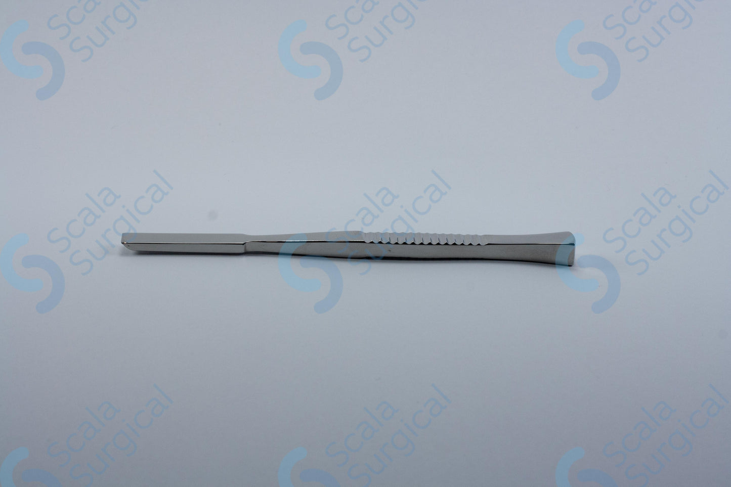 Bone chisels with a square grooved handle are used in the surgical field to cut or shape bone during surgery. The chisel width of 8mm (139.7mm or 5? inch) determines the size of the cuts the chisel can make.
