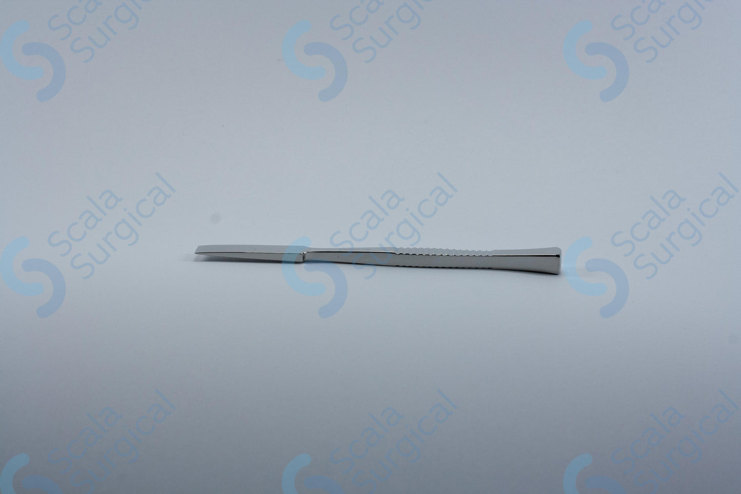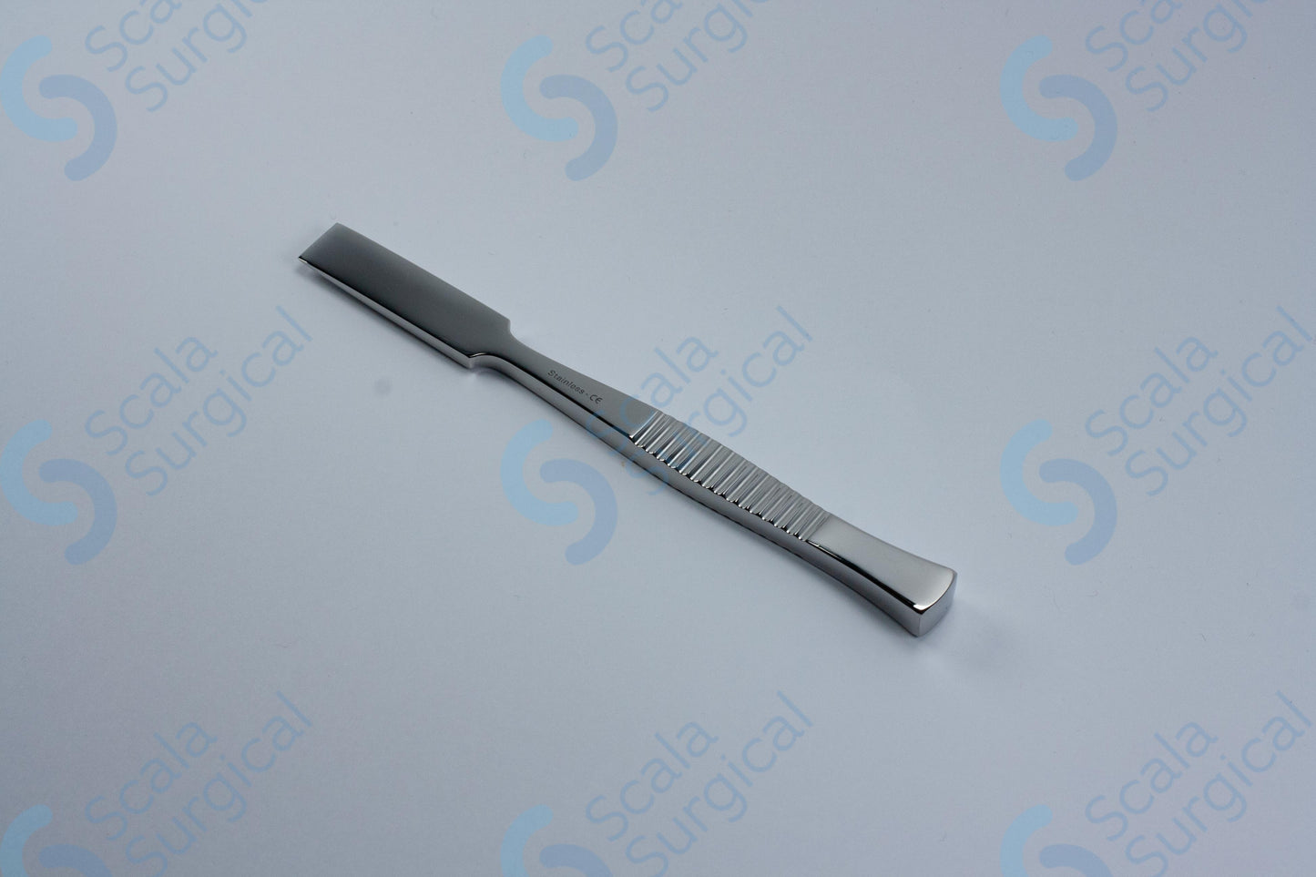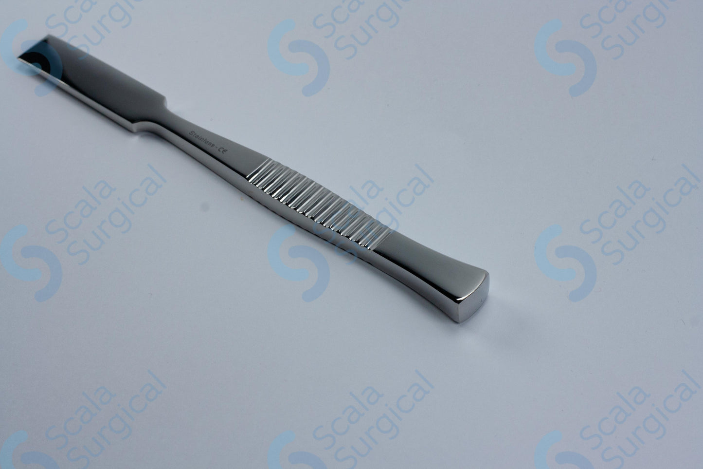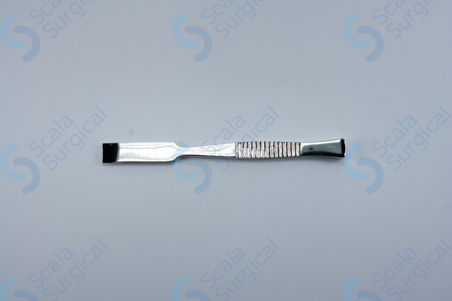 Bone chisels with a square grooved handle and a chisel width of 12mm (139.7mm or 5? inch) are used in the surgical field to cut, shape, and remove bone. They are typically used in orthopedic and trauma surgery, as well as in other procedures such as joint replacement, spinal surgery, and plastic surgery.