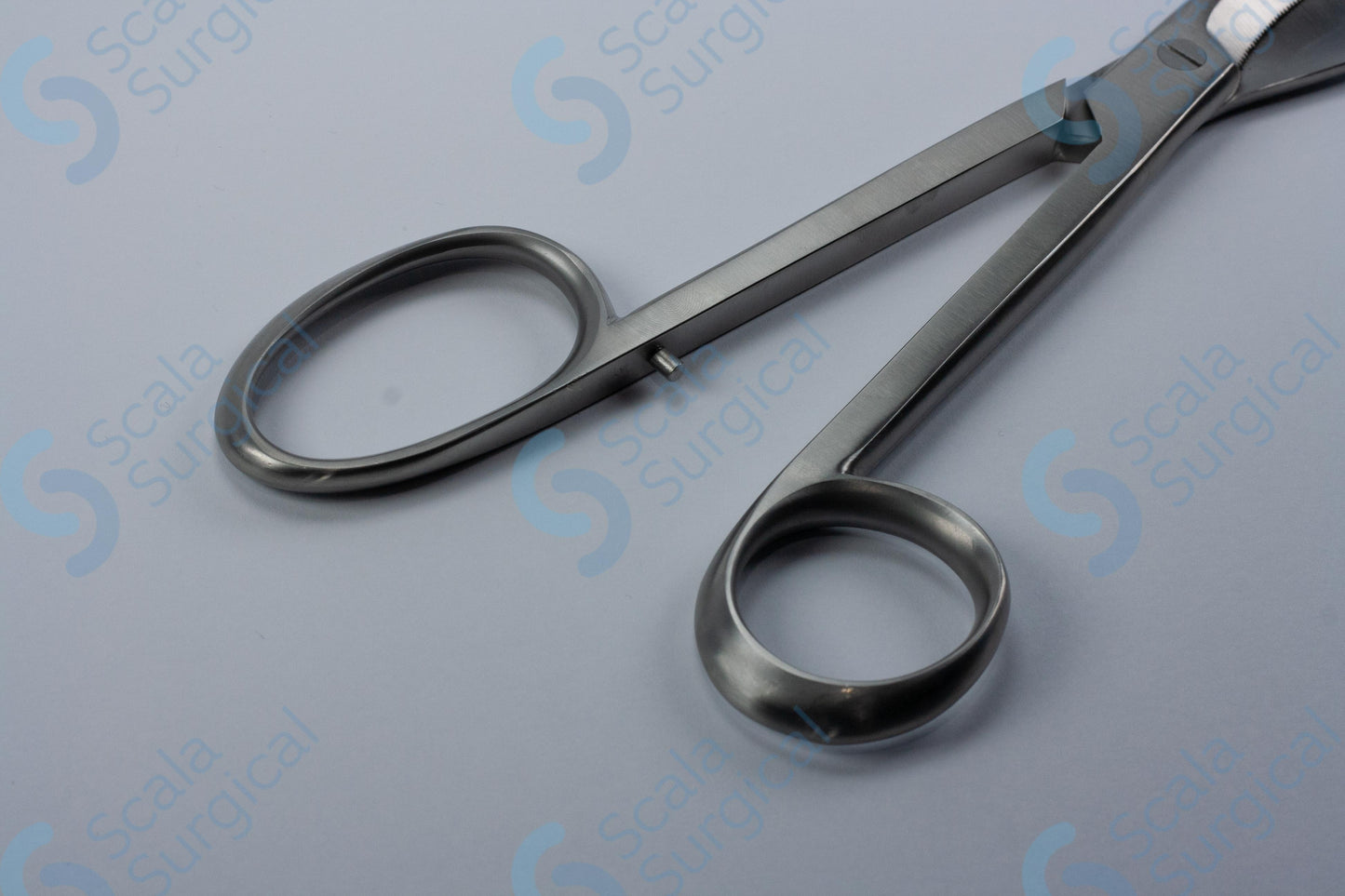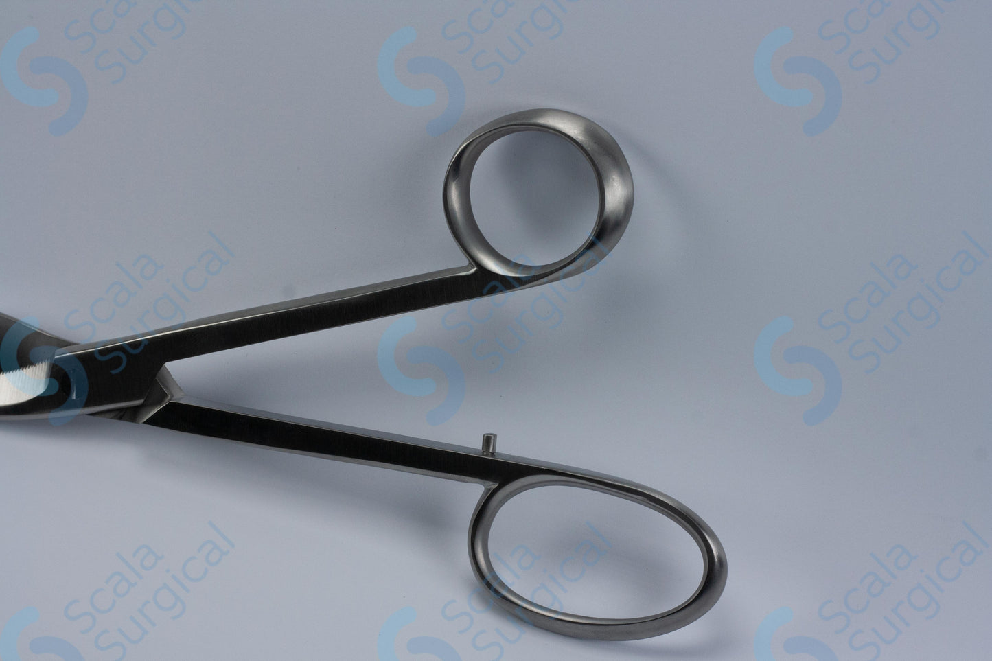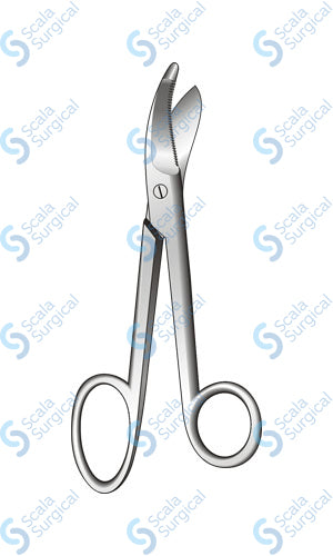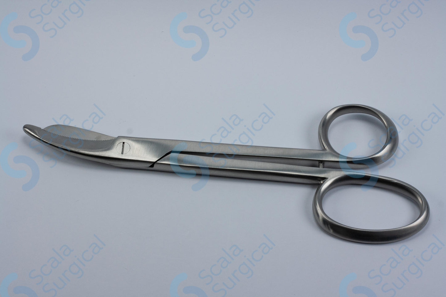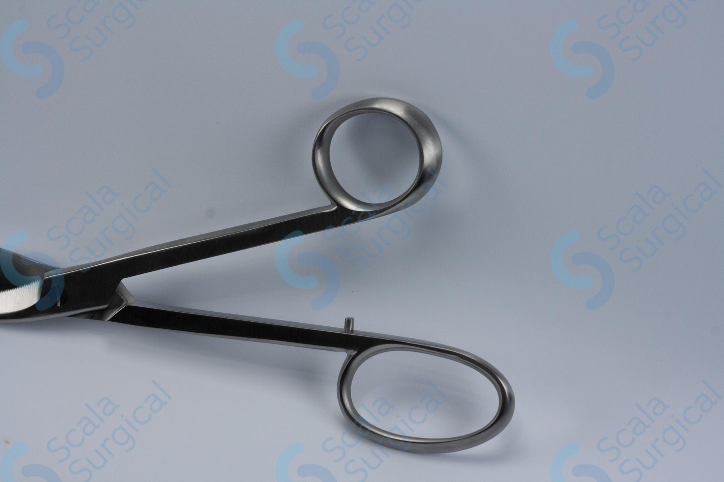 This item is used to cut plaster casts for medical purposes. The serrated lower blade is designed to be used with a handle to safely and efficiently cut through the plaster.