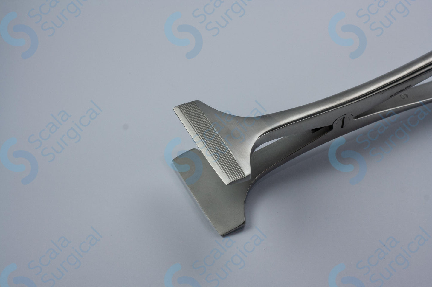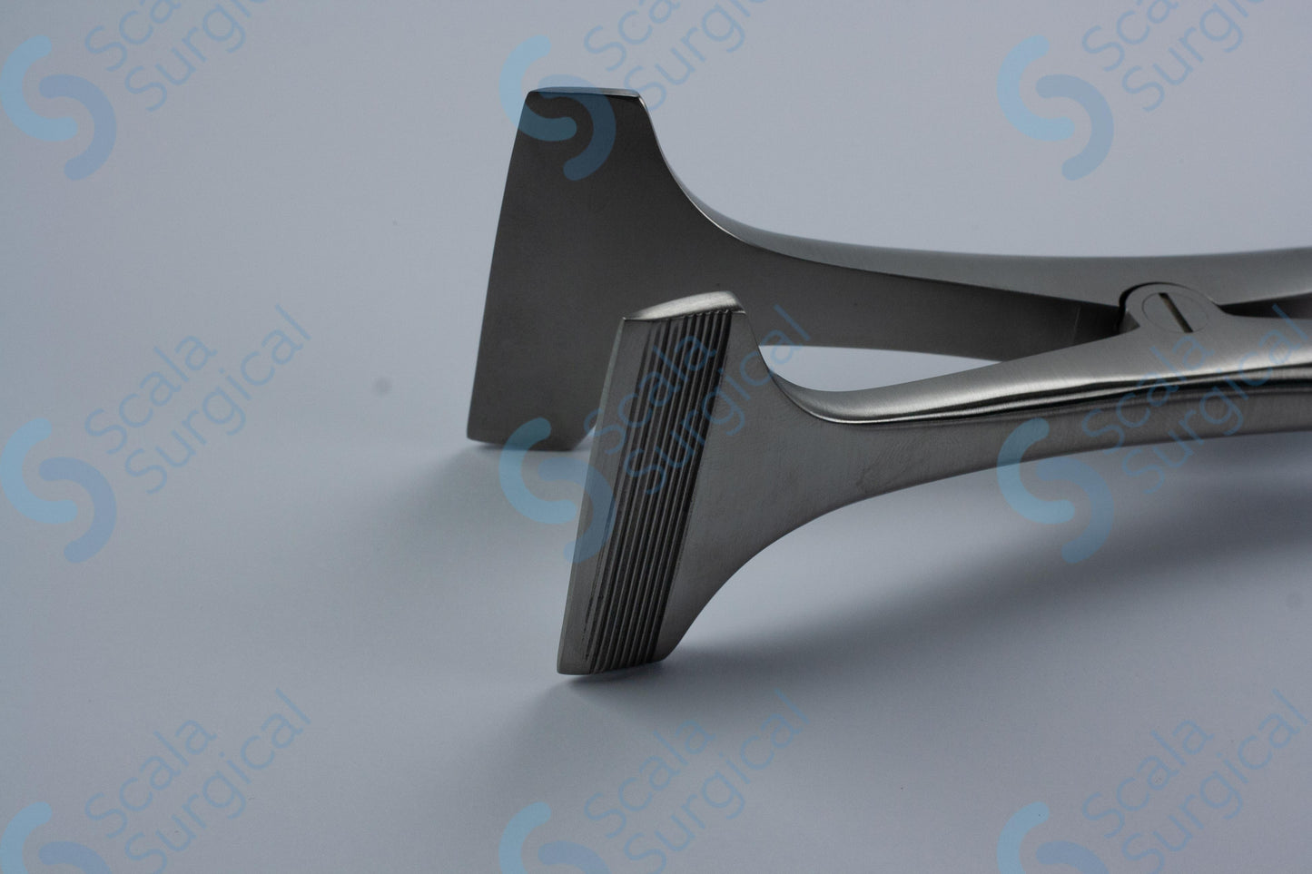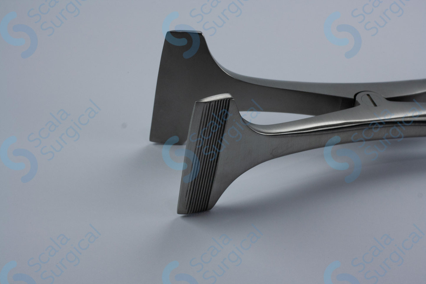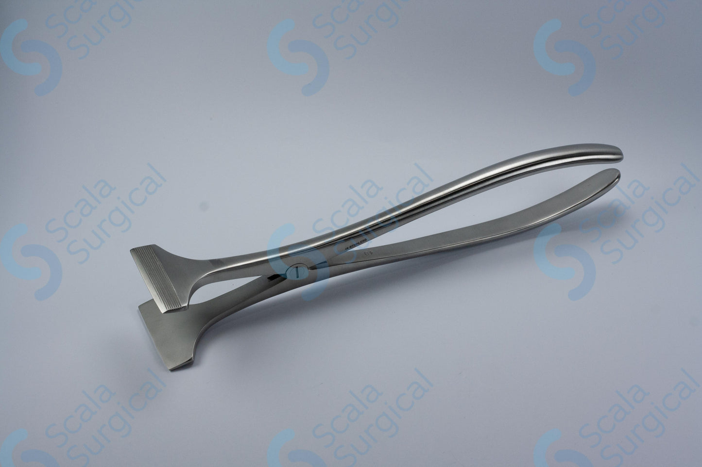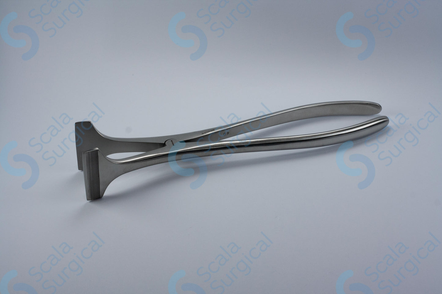 This item is used to spread apart and hold apart two bones so that a surgeon can place a plaster cast to immobilize the bones. It is a type of surgical instrument that has a screw joint that can be adjusted to the desired length.
