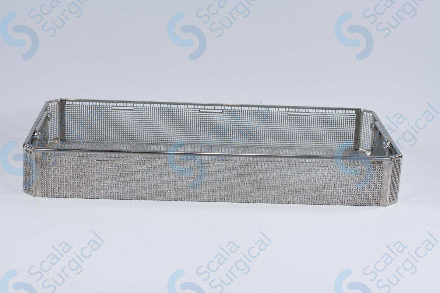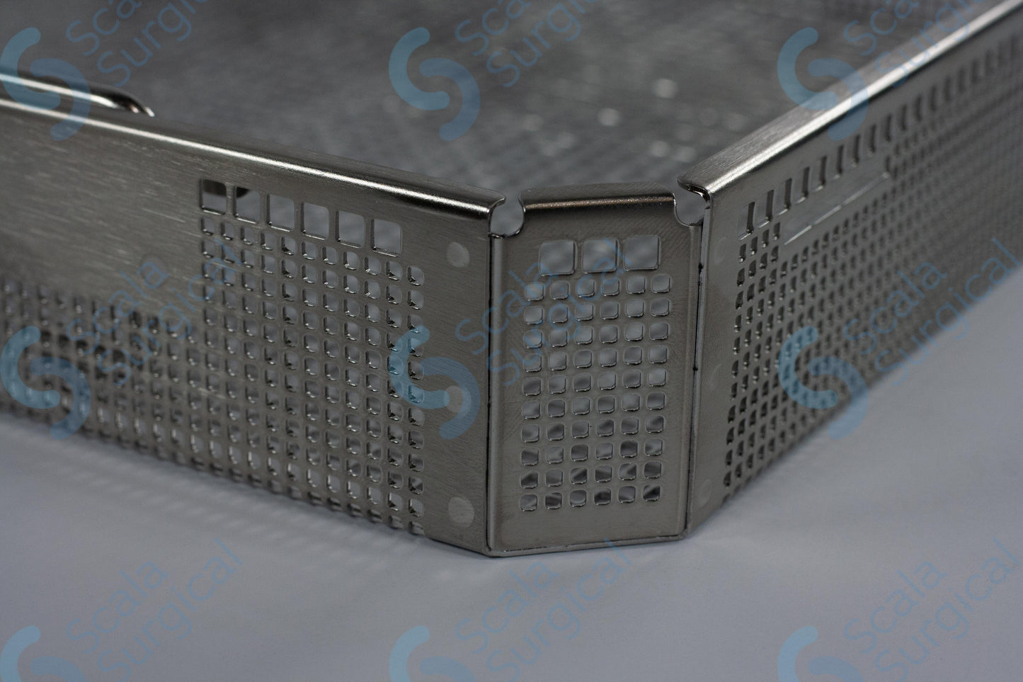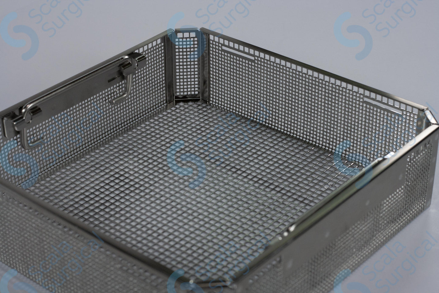 Our Pressed Metal Baskets are designed with precision and durability in mind, featuring an 8-sided design to reduce tearing of sterilisation wraps and drapes during handling.