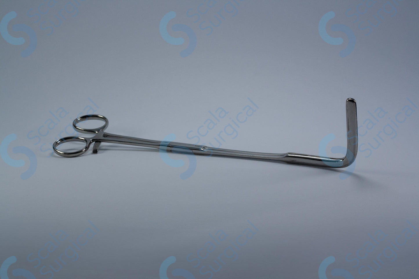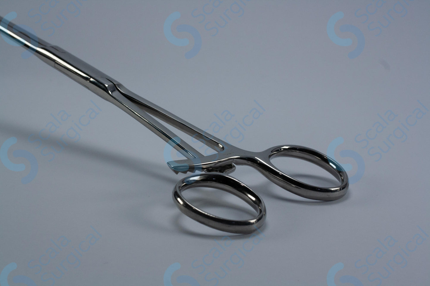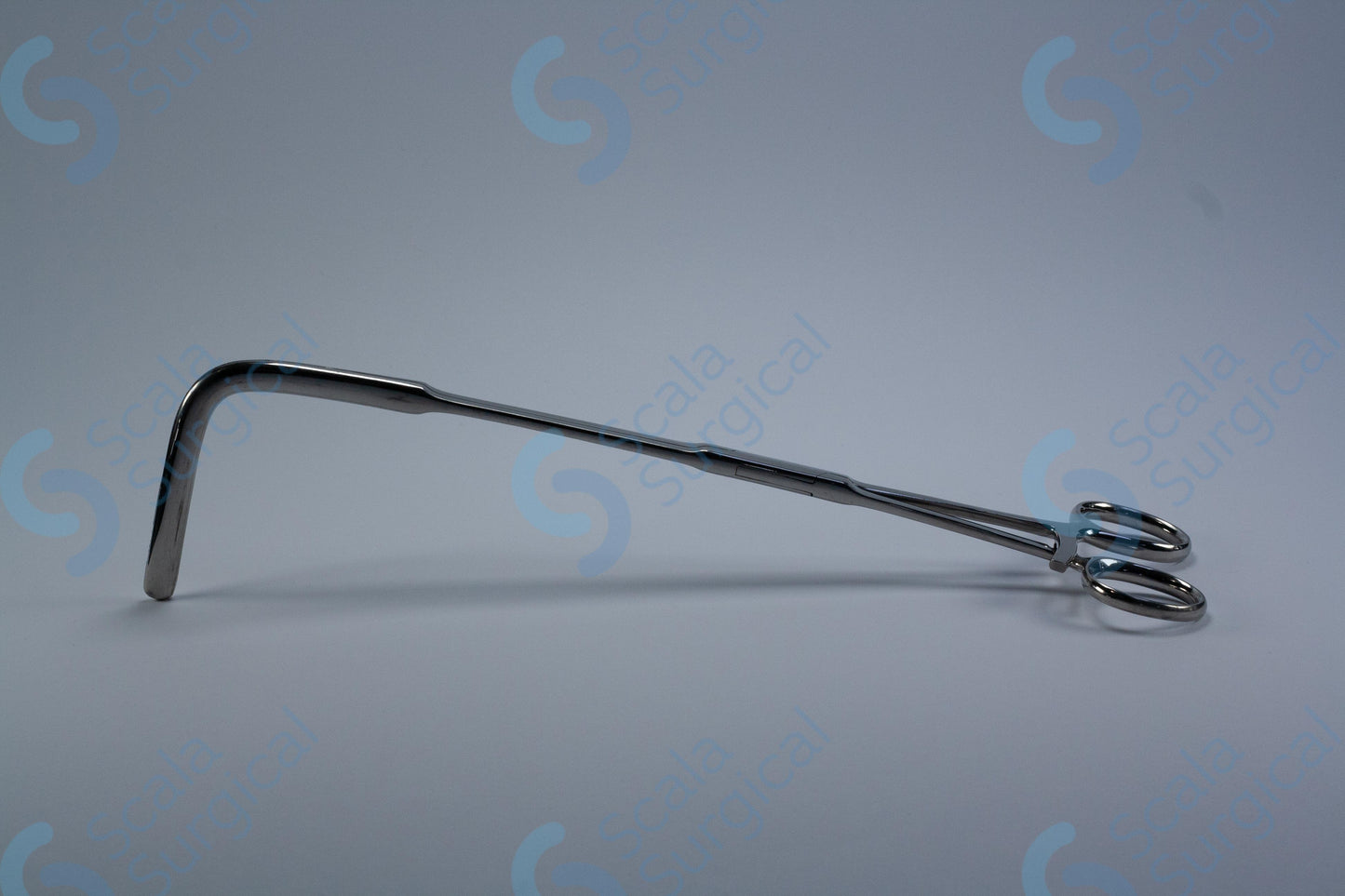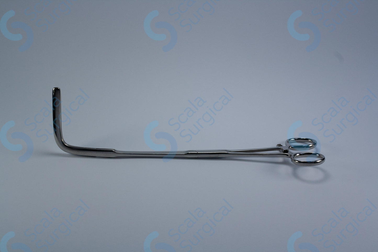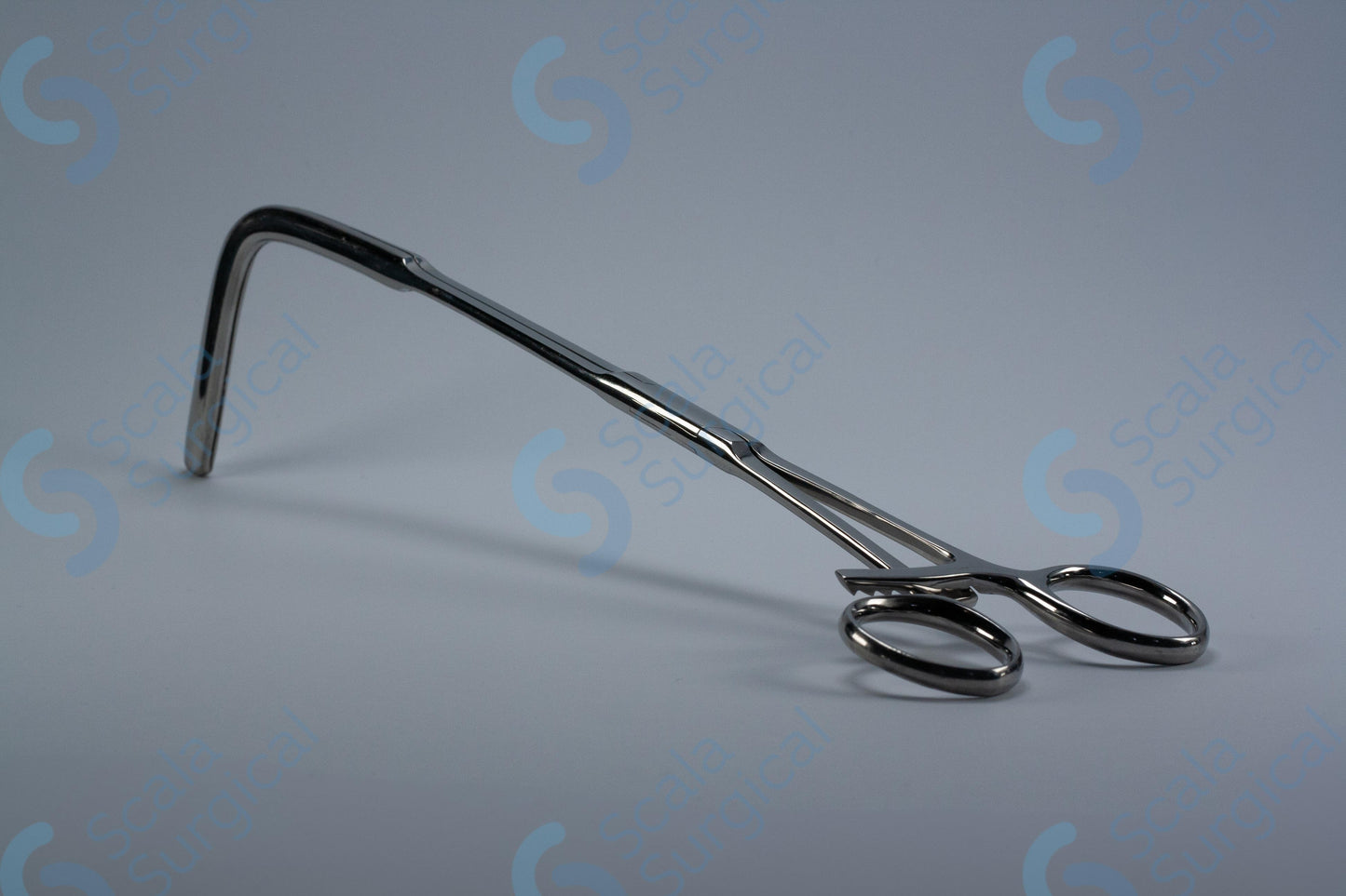 This device is used to hold tissue in place during a rectal excision procedure. The longitudinally serrated jaws provide a secure grip and the angled box joint allows for precise manipulation of the tissue.