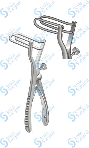 The Sims Rectal Speculum Wire Blades are used to perform rectal examinations during a surgical procedure. The blades are inserted into the rectum to widen the area, allowing the doctor to visually inspect the area and take biopsies if needed. The blades measure 60mm in length and 20mm in width, and the overall length of the speculum is 7? inches.