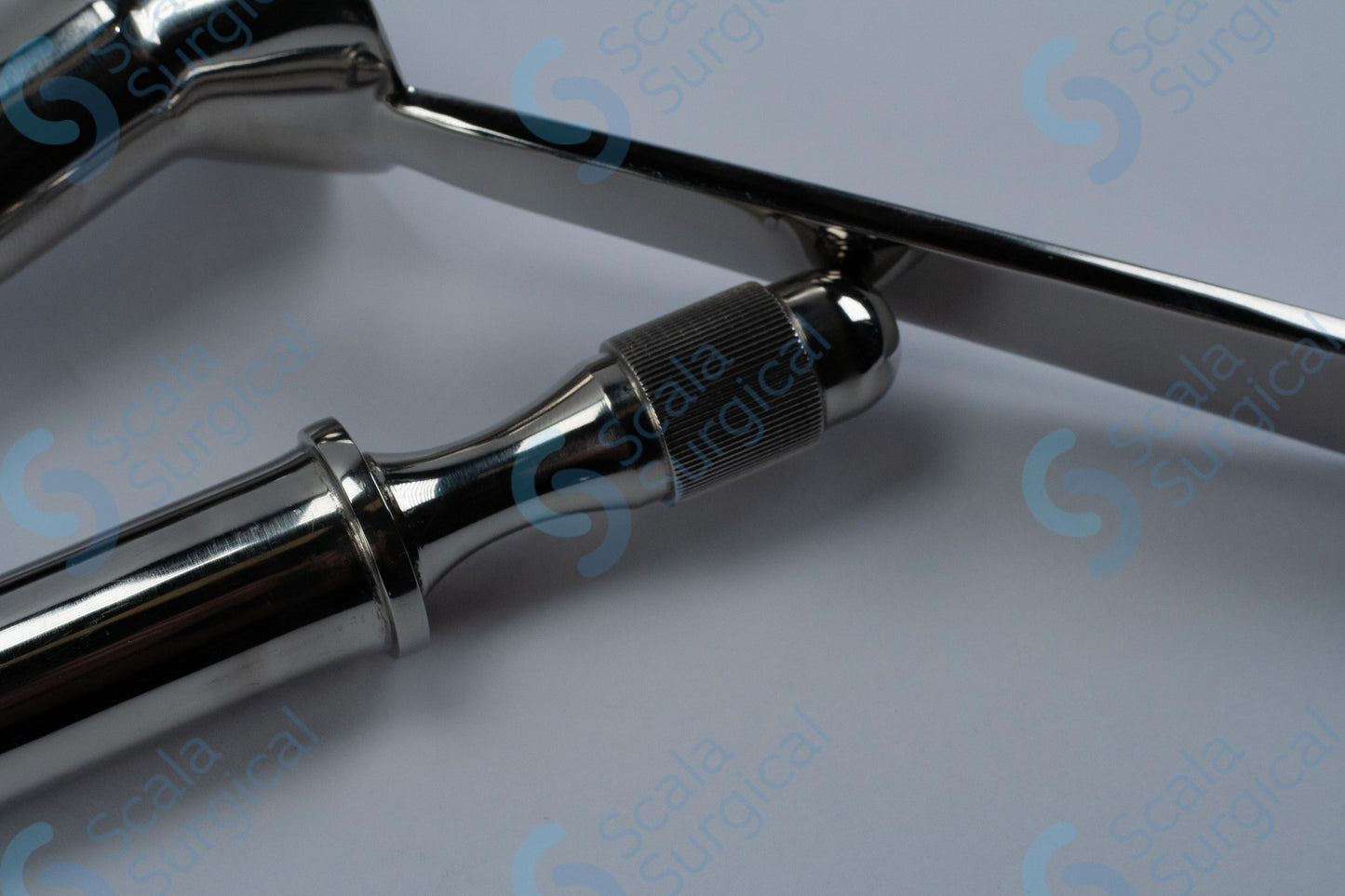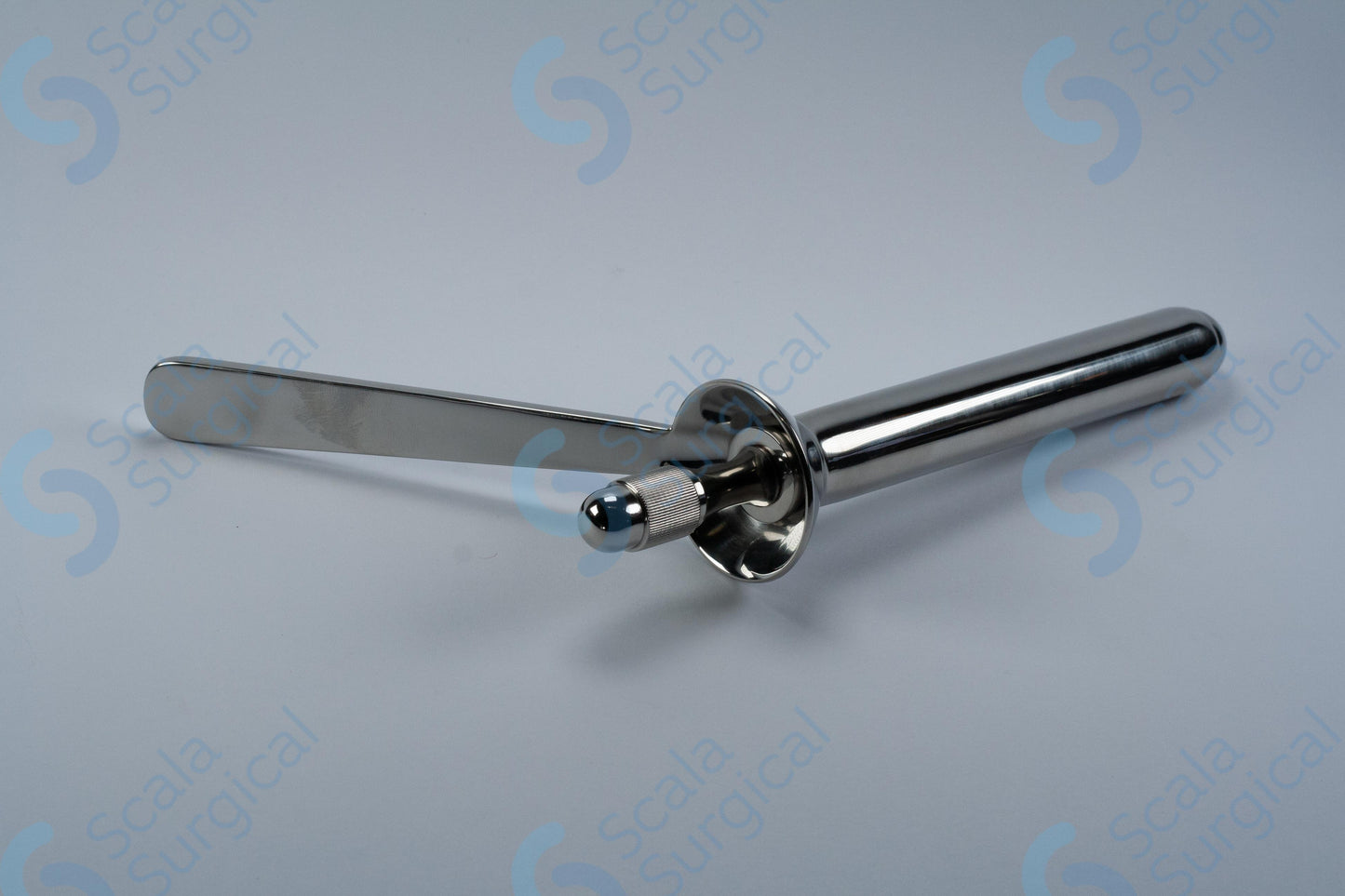 A Eisenhammer Rectal Speculum is a medical device used to inspect the rectum. It is inserted into the anus and then opened to allow the doctor to examine the interior of the rectum for any abnormalities. It may also be used to perform certain procedures, such as biopsies or polyp removal.