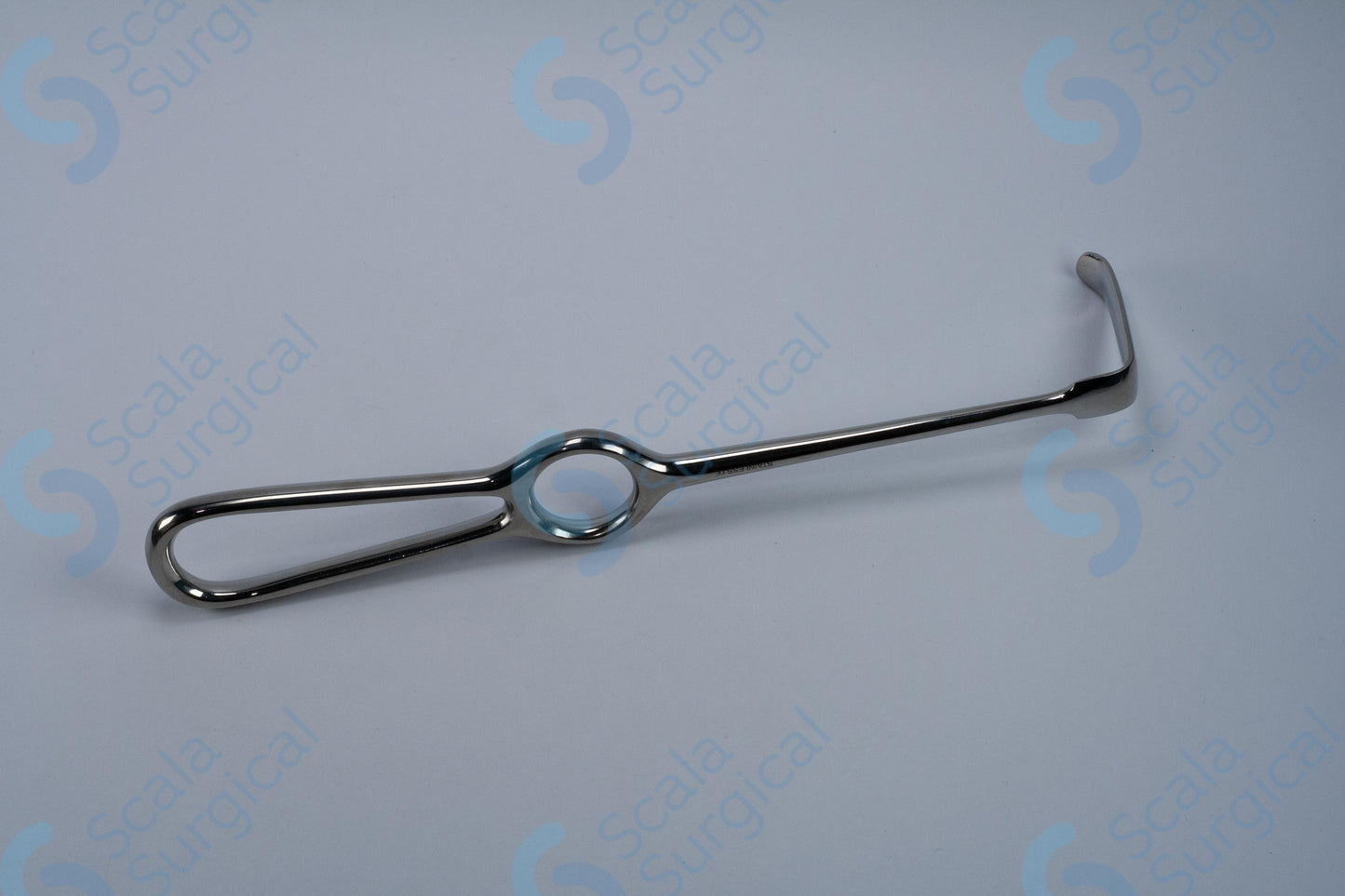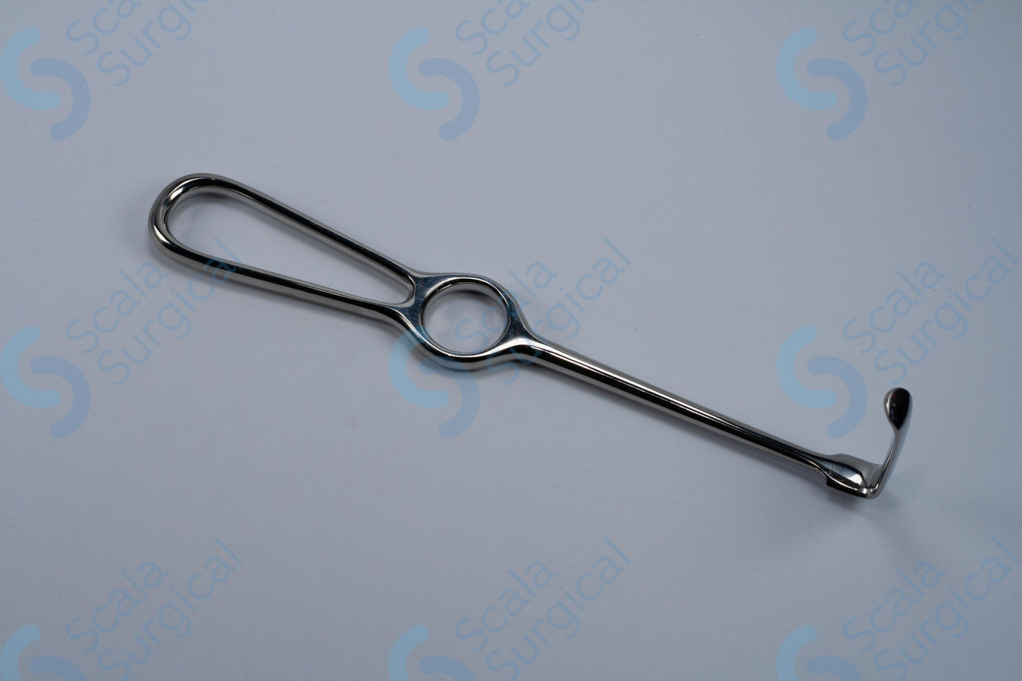 The Obwegeser Retractor Ring Handle Slightly Curved Up is a surgical instrument used to retract and hold back tissue during surgical procedures. It has a 42mm x 11mm blade and is 215mm in length. It is commonly used in orthopedic surgery, neurosurgery, and plastic surgery.