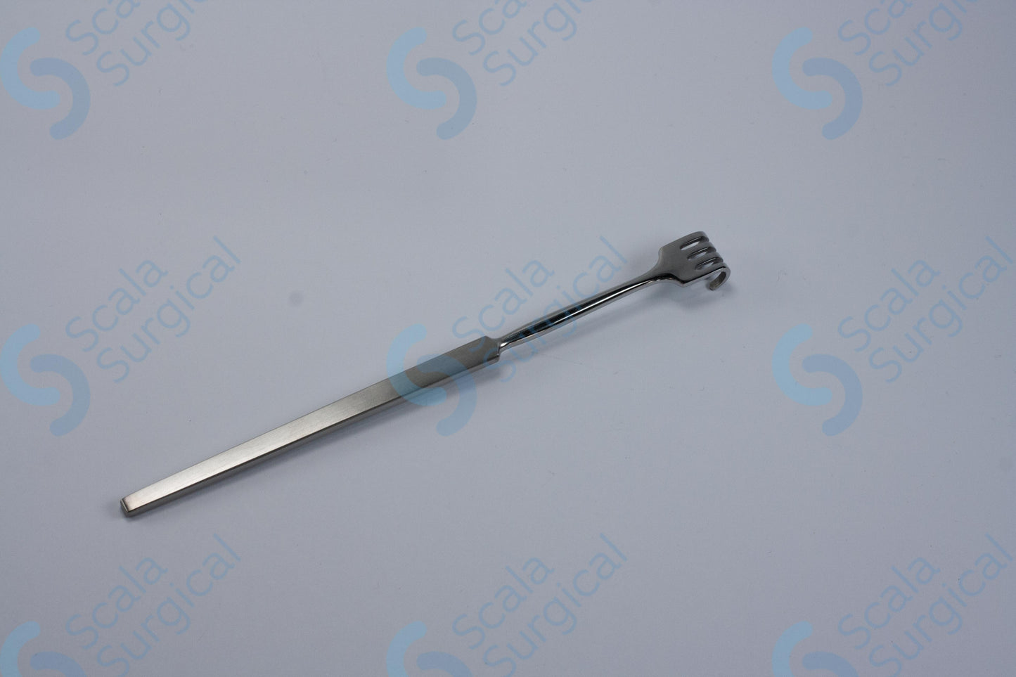 A hook retractor is a surgical instrument used to spread the edges of a wound or incision, providing the surgeon with a better view of the surgical area. This particular hook retractor has four blunt prongs that measure 158.75mm (6? inch).