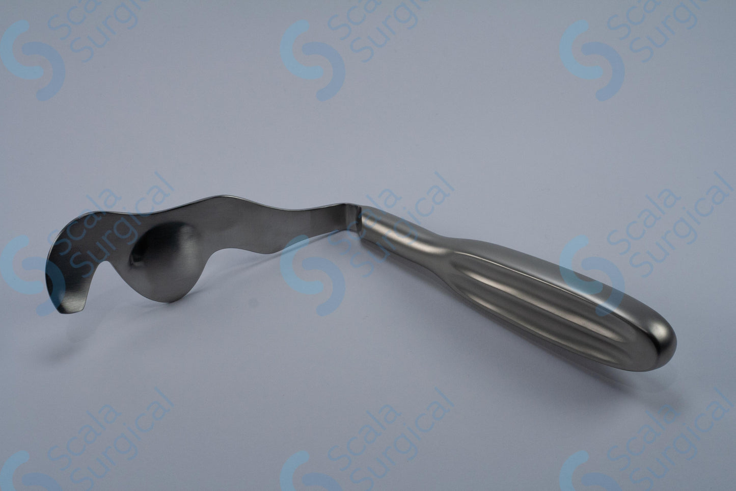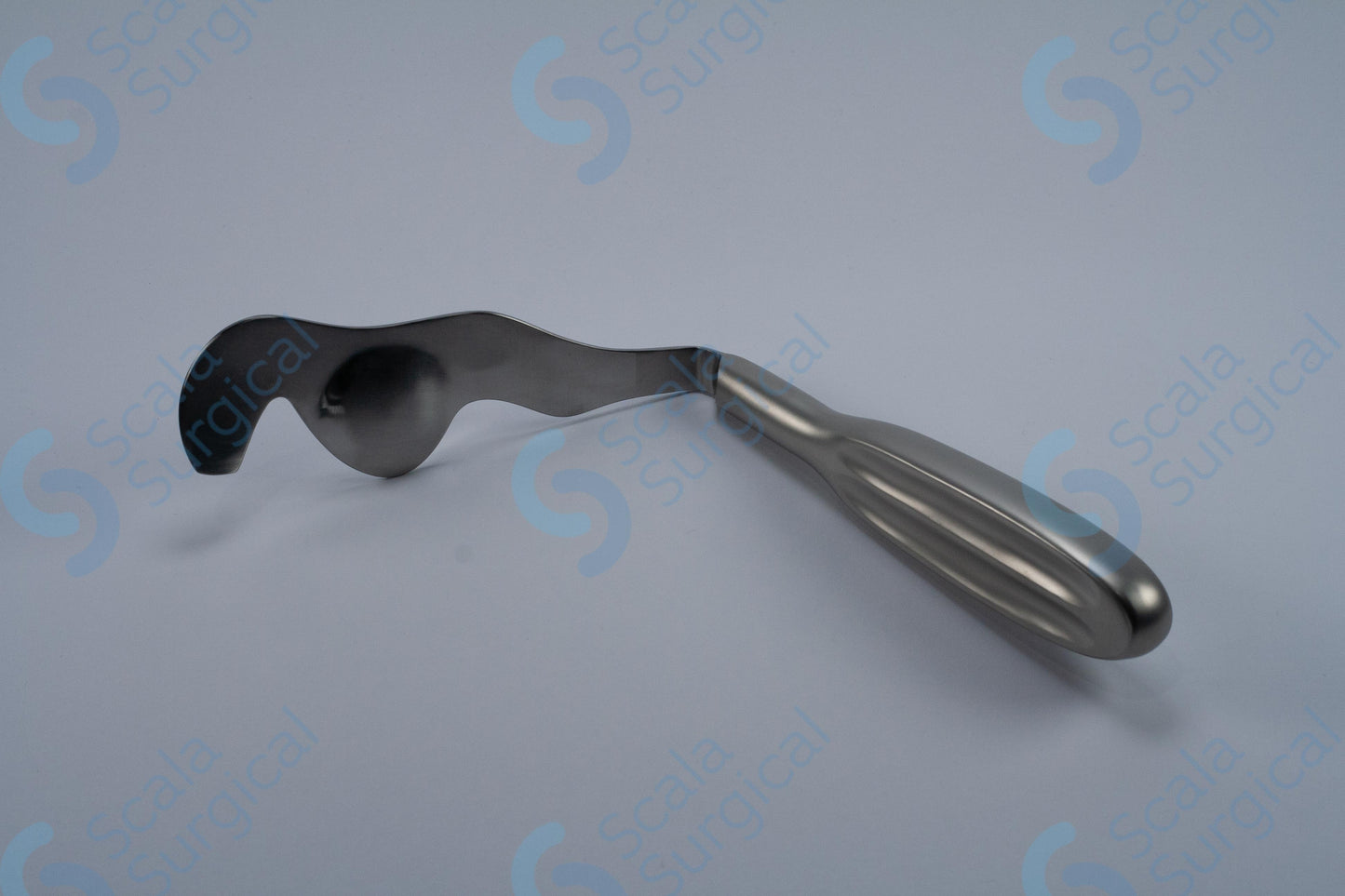 The Hovell Lingual Retractor is a surgical instrument used to hold back the tongue and other soft tissues of the mouth during oral surgery procedures. The hollow handle allows the surgeon to insert a blade or other tool into the handle and use it to manipulate the tongue. The curved shape of the retractor is designed to provide maximum access to the surgical site.