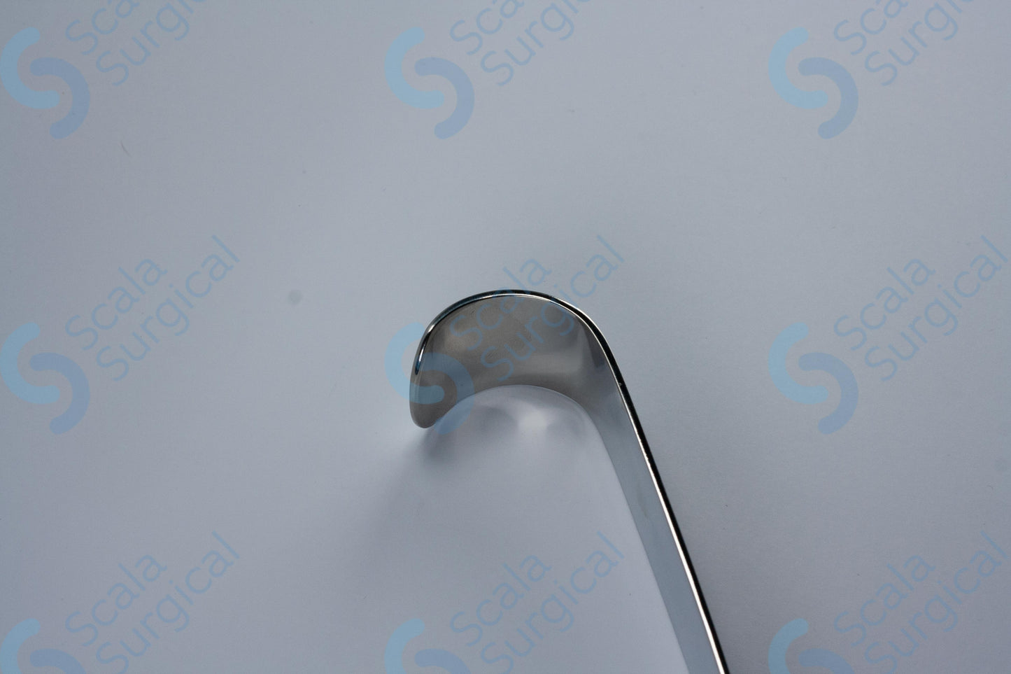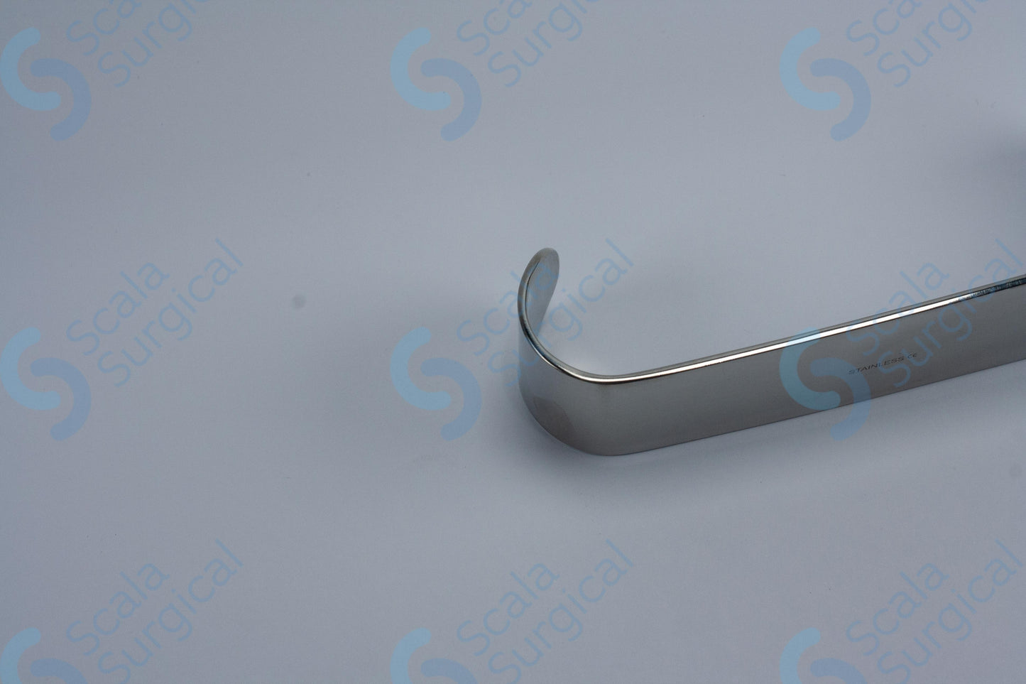 A Kilner Cheek Retractor is a surgical instrument used to separate the cheeks and lips of a patient during oral surgery. It is typically used to gain access to the oral cavity and to provide a clear view of the operating area. The retractor is inserted into the mouth and then gently spread apart to create a gap between the cheeks and lips. The size of the retractor is determined by the width of the gap that needs to be created. The Kilner Cheek Retractor Large has a retractor width tapering from 28 to 30mm, which is suitable for larger gaps.