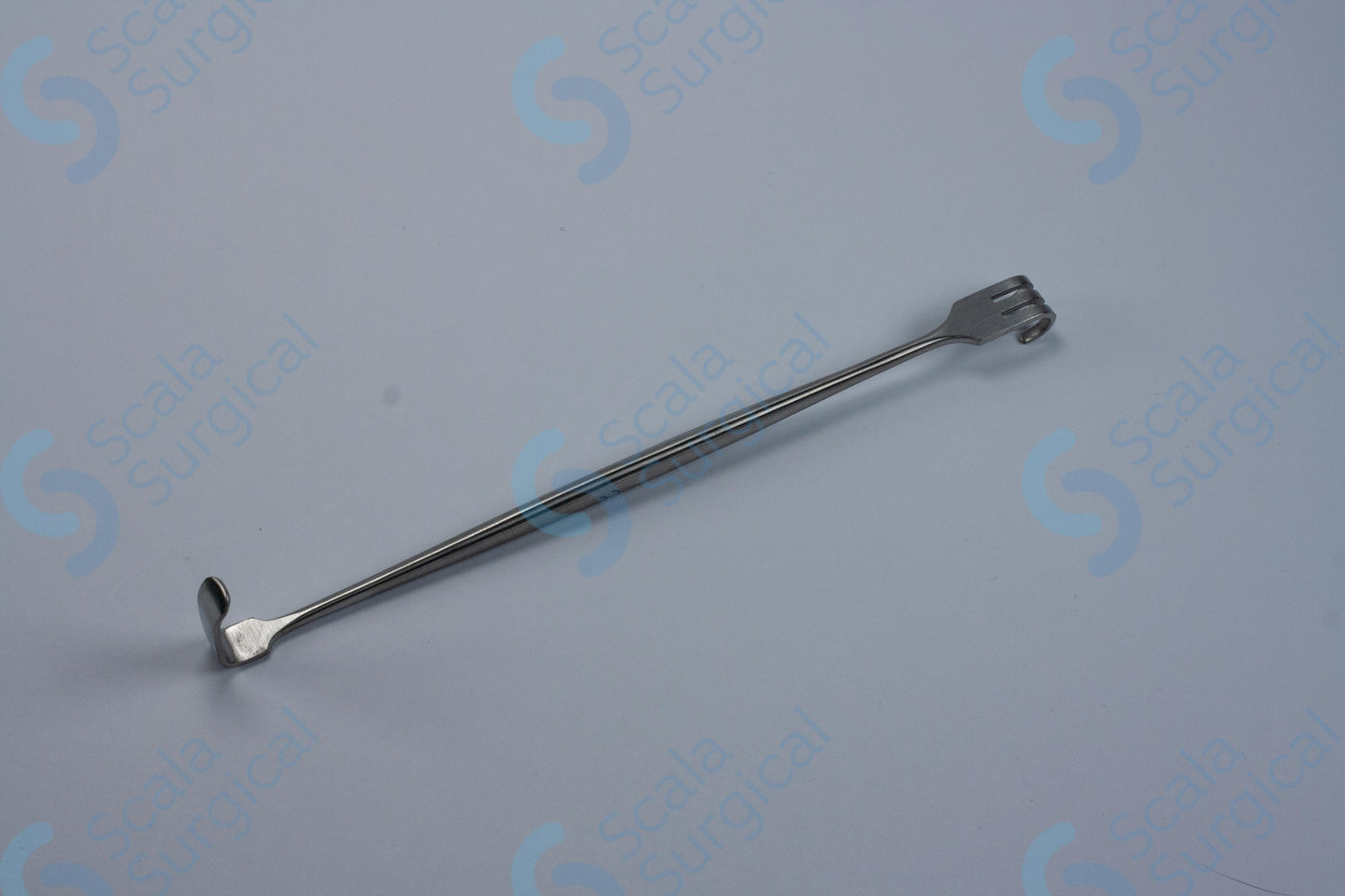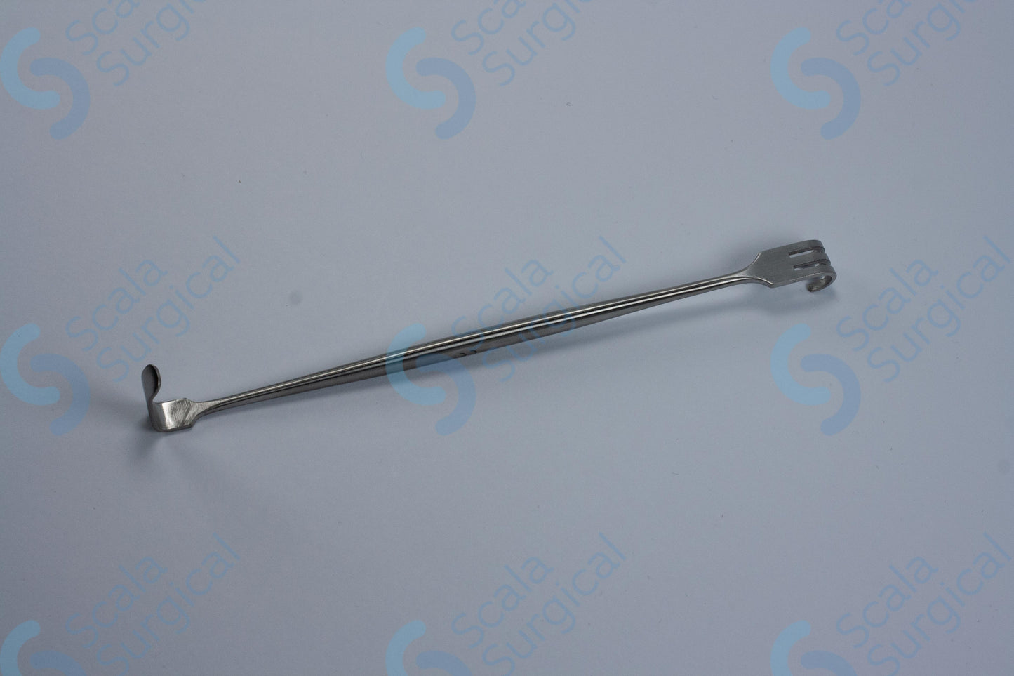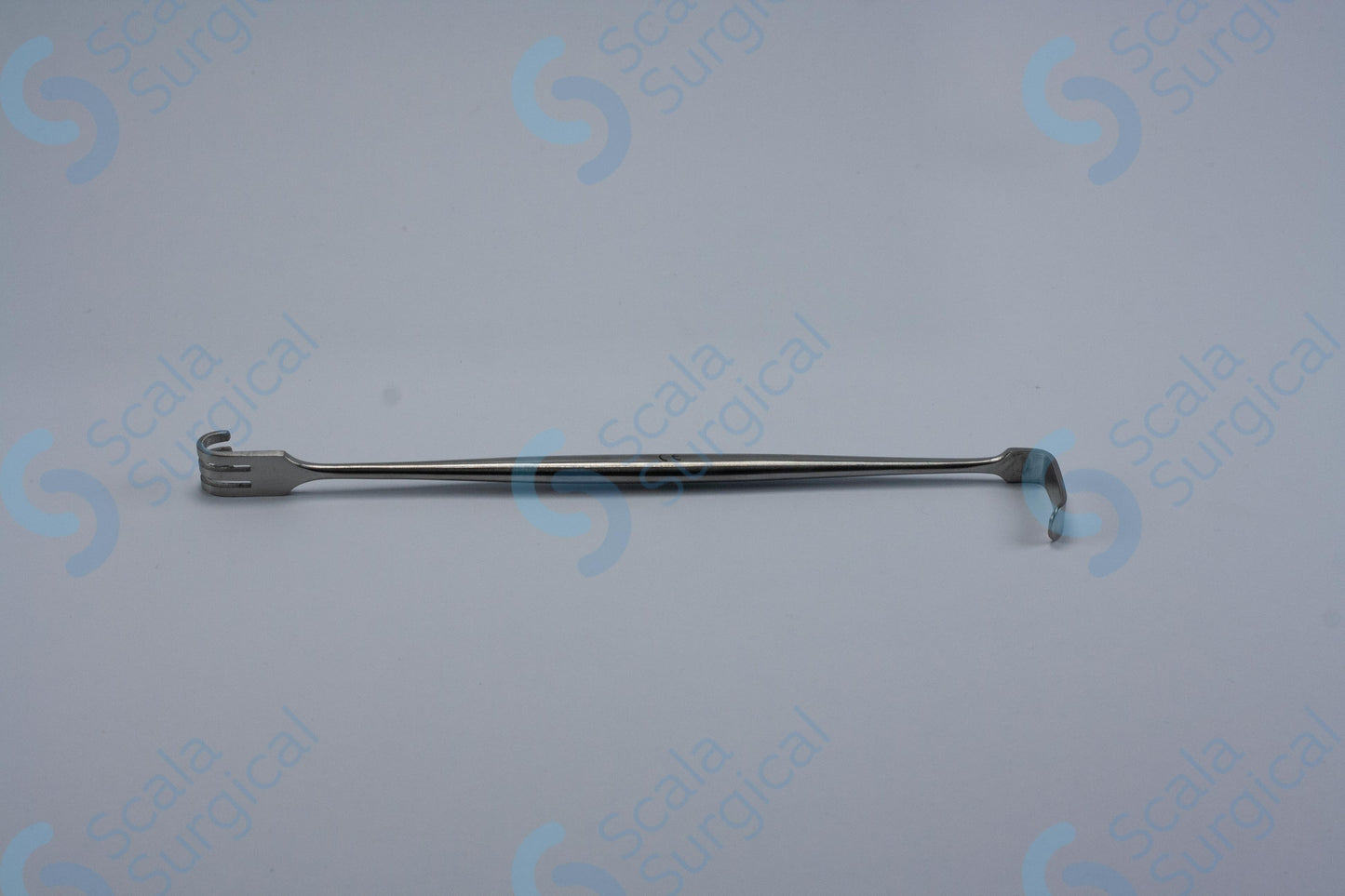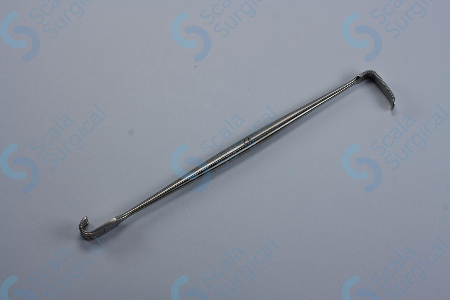 This item is used to retract skin during surgery. It has two blunt ends that are designed to hold back the skin and tissue to allow the surgeon to access the surgical site.