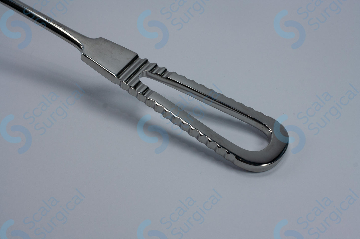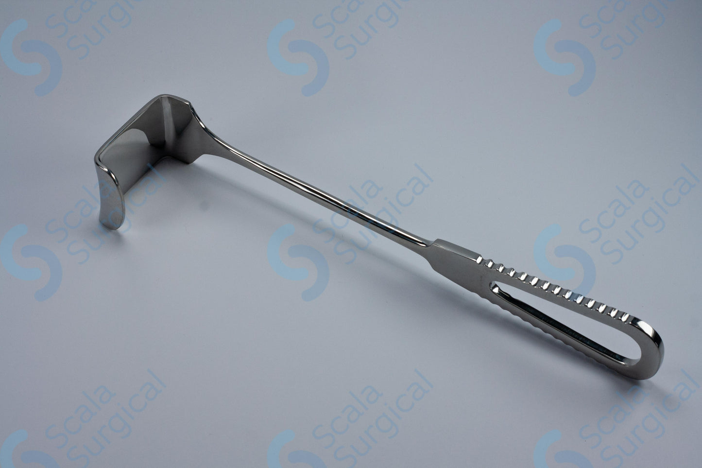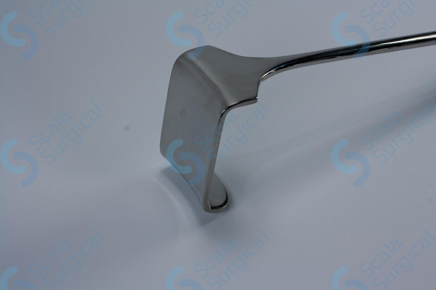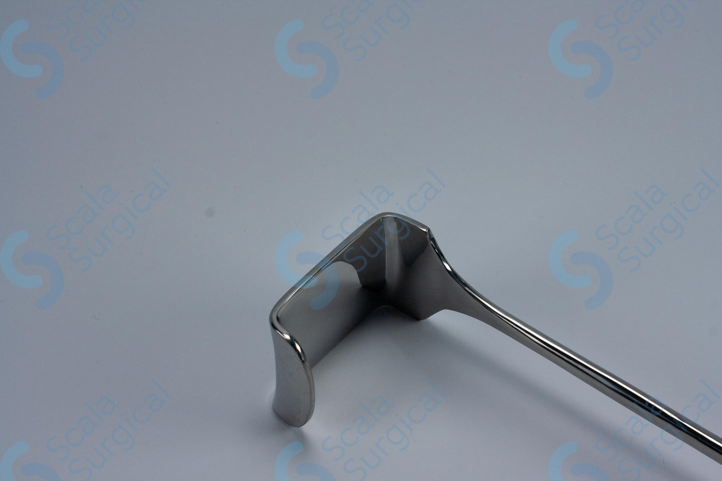 A Morris Retractor is a surgical instrument used to hold back tissue, organs, or other structures during a surgical procedure. The single-ended version has one blade with a width of 38mm and a depth of 52mm.