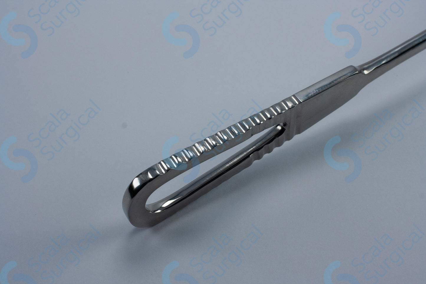 A Morris Retractor is a surgical instrument used to hold tissue back during a surgical procedure. The blade width and depth of the instrument will determine the size of the incision it can create and hold open.